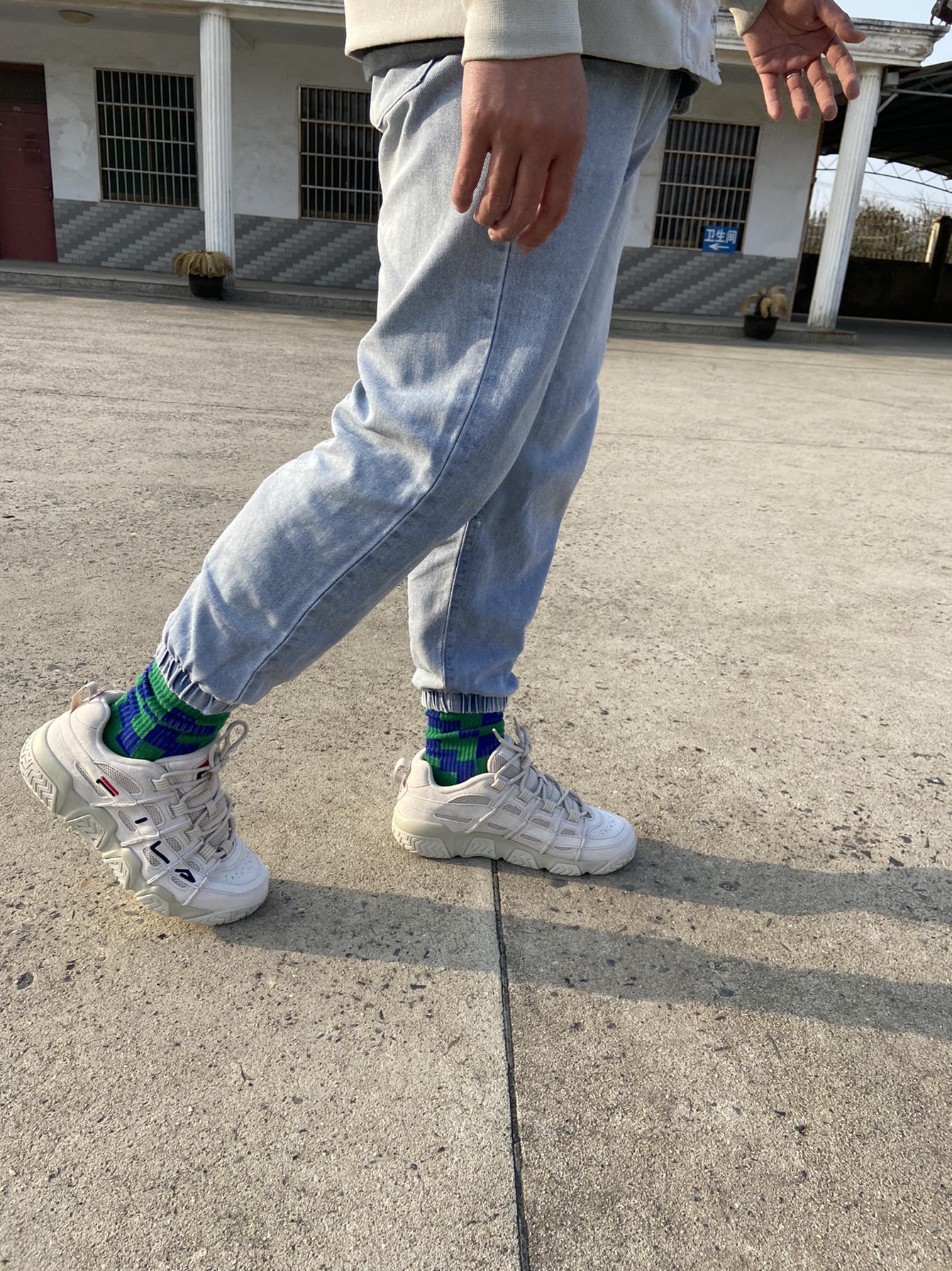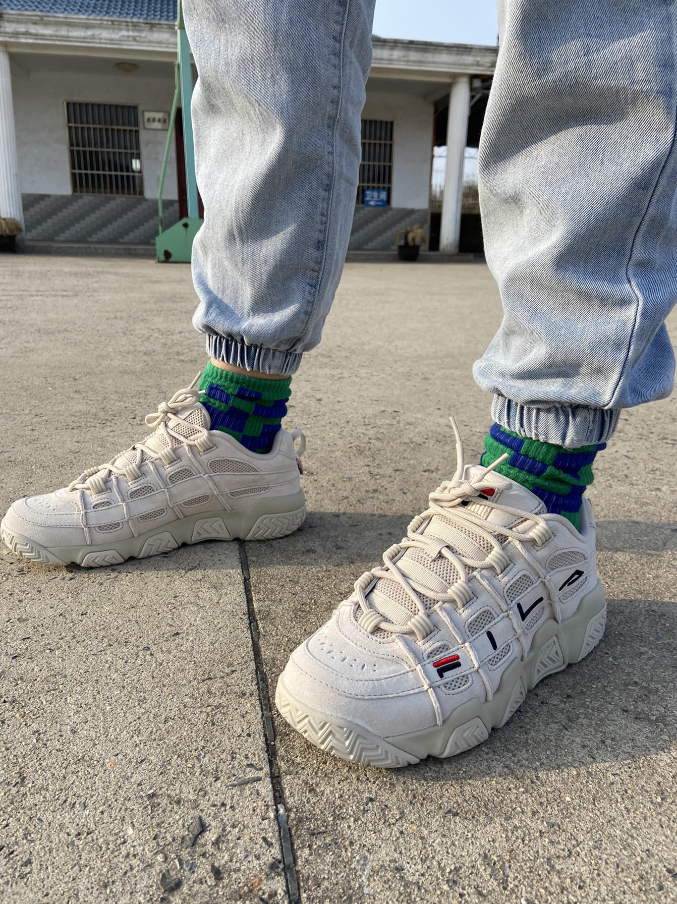 身高|体重:170,72公斤 🧍♂️ 穿搭风格:休闲,运动风 👔 上衣:耐克上海限定卫衣 👖 下装:小脚牛仔裤 👟 鞋子:FILA老爹鞋,复古篮球鞋 📌是否偏码【偏大/不偏码/偏小】:尺码正常,略微有点偏大 ⛹️性能打分(每项满分均为10):实战5分,时尚9分,不建议打球,日常通勤,户外穿搭可以!