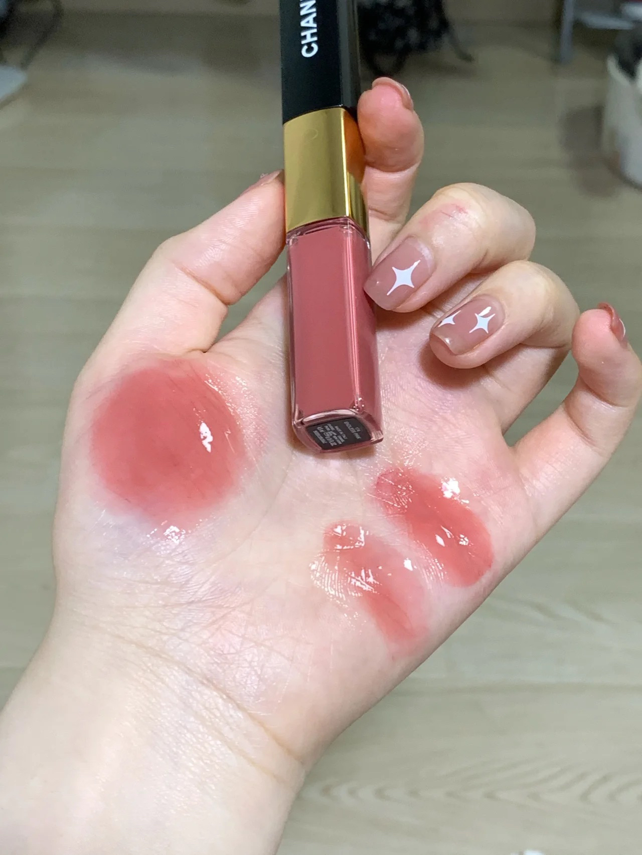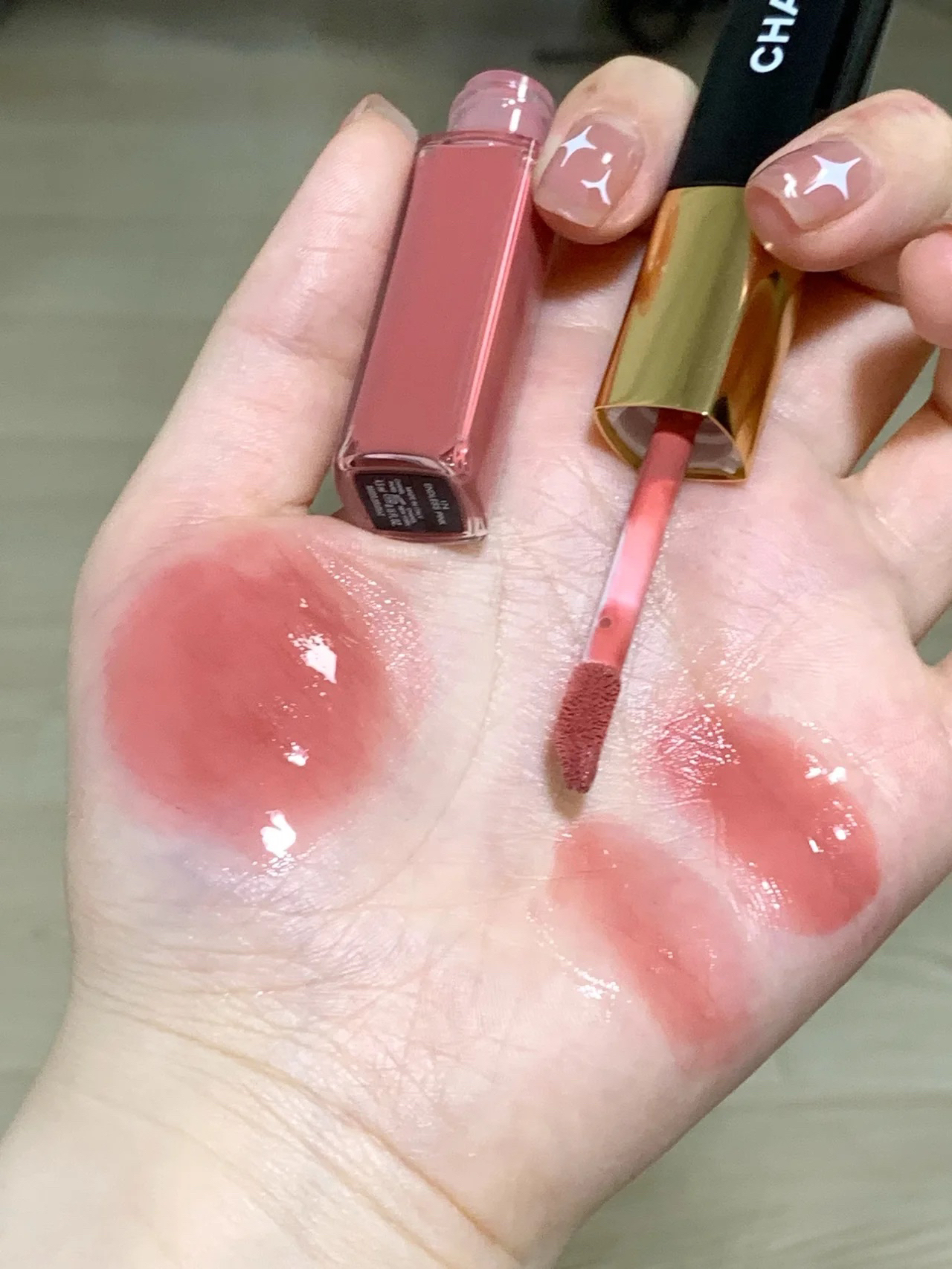 香奈儿双头唇釉174。。。我等了2个月 这只嫩的呀!!真的是传说中的级别! 嘴巴立刻有一种baby的感觉!小小婴儿! 香奈儿174🌸任何人没有它我都会伤心的ok?! 这么火不是没道理的! 哑光头很好晕染,质地也是很轻薄的 覆盖力好,无需打底 单涂哑光干了会黏 叠涂透明头感觉眼前一亮 上嘴就一个字。嫩! 介于粉调和玫调之间的白桃蜜粉 一点不荧光,很提肤色 吃东西不掉色真的很赞👍! ✨嫩死了!必须封神...