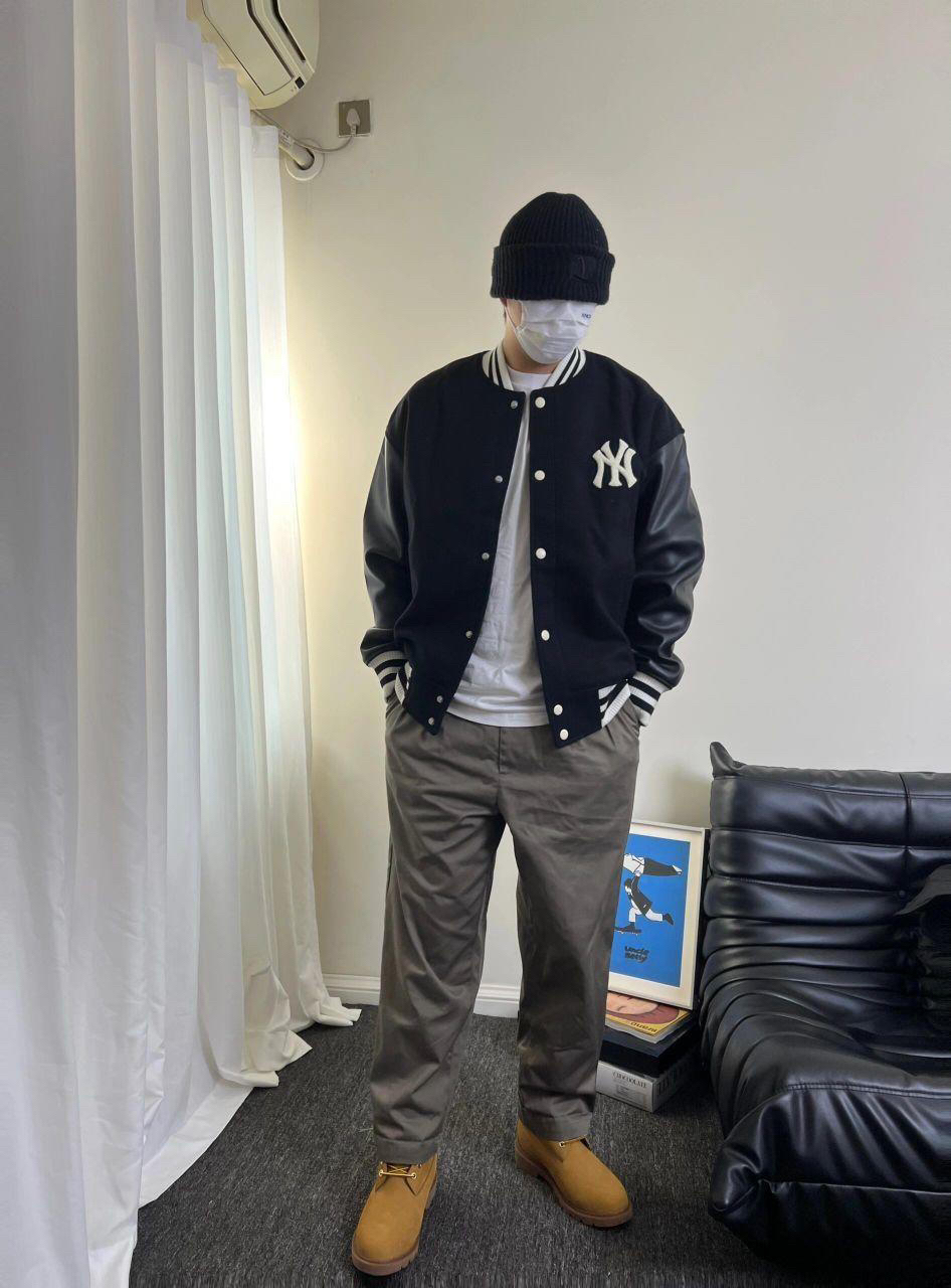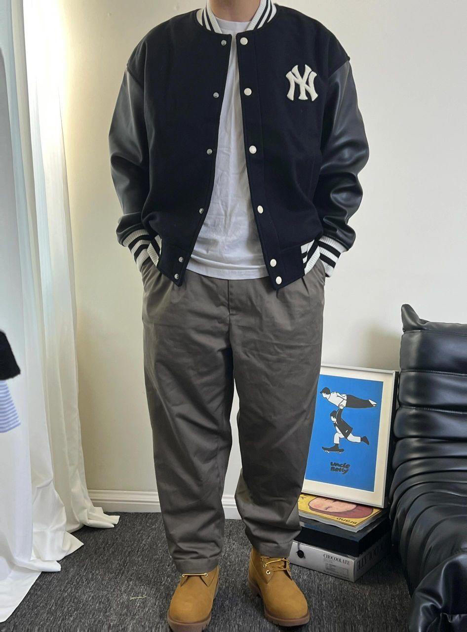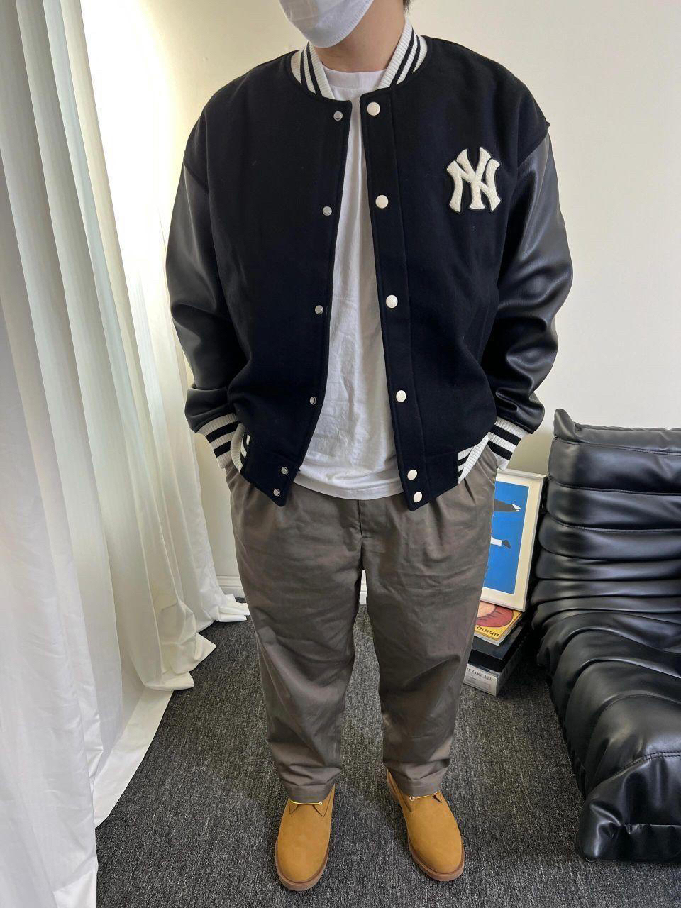 穿搭尺寸可参考: 🤵🏻176cm | 72kg 👔棒球服| MLB|XL码 👖裤子|CAMPSEASON|XL码 👟球鞋|timberland大黄靴 💡率性利落的mlb拼接棒球服外套,简约而又有设计感✌🏻袖子黑色皮革拼接与大身的黑色毛呢整体相呼应,背后绿色字母logo是吸睛的小细节!面料摸起来手感很好,是厚实的!南方冬天穿也ok 💡campseason的褐灰色西裤,可以说是最近使用率最高的裤子了!...