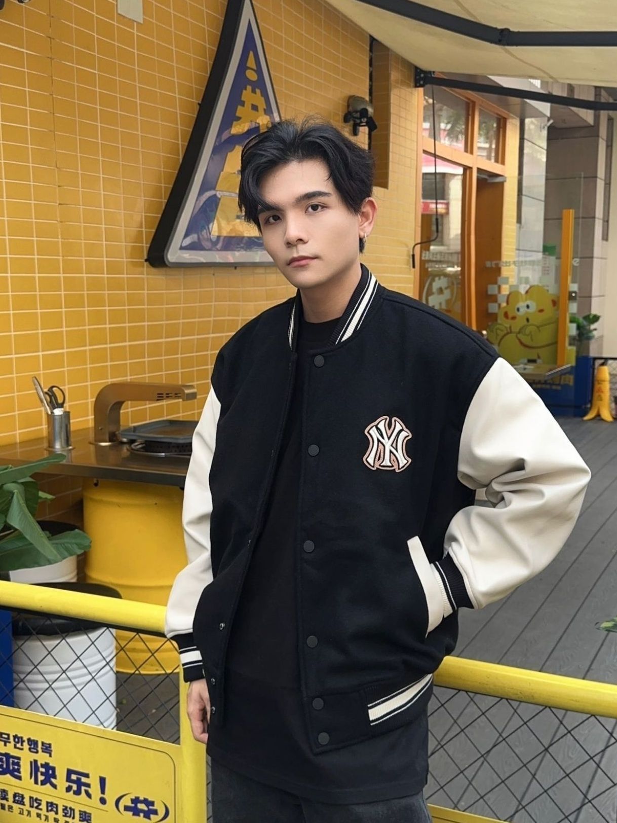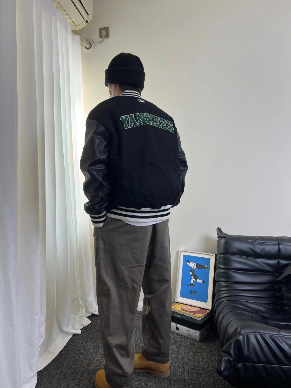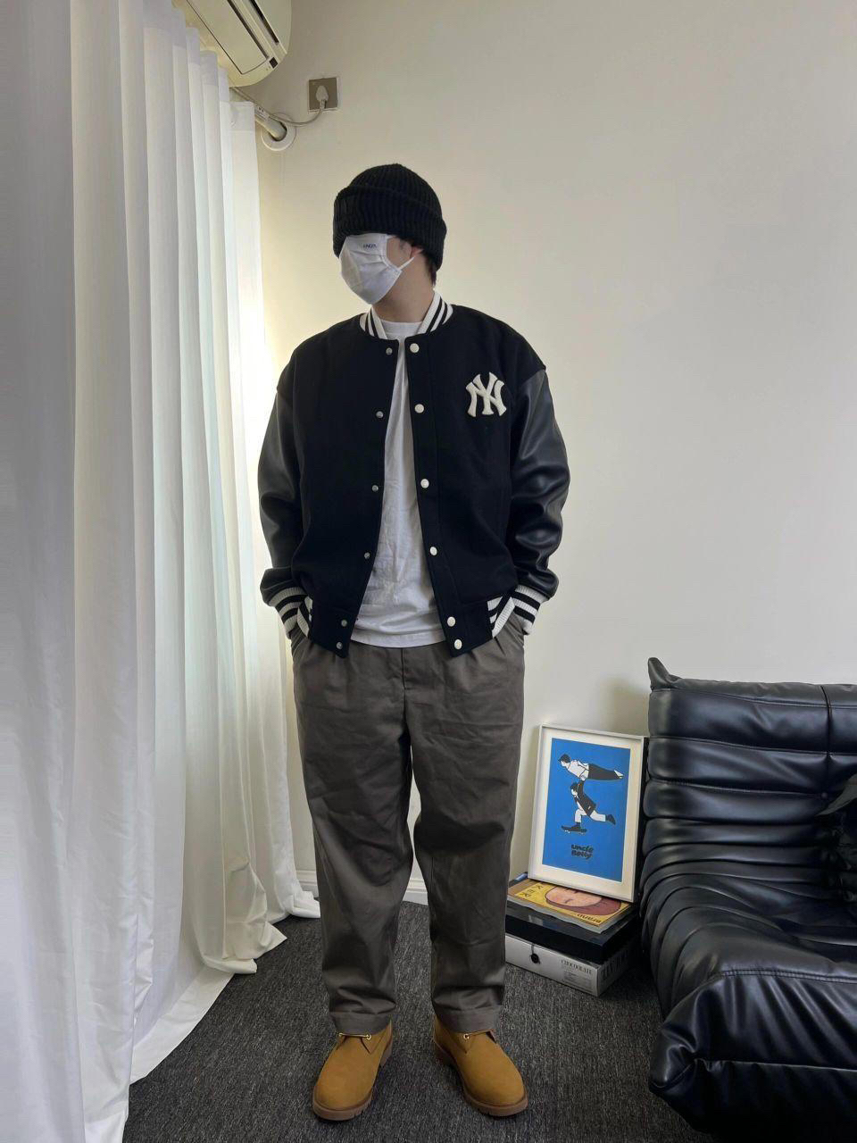 穿搭尺寸可参考: 🤵🏻176cm | 72kg 👔棒球服| MLB|XL码 👖裤子|CAMPSEASON|XL码 👟球鞋|timberland大黄靴 💡率性利落的mlb拼接棒球服外套,简约而又有设计感✌🏻袖子黑色皮革拼接与大身的黑色毛呢整体相呼应,背后绿色字母logo是吸睛的小细节!面料摸起来手感很好,是厚实的!南方冬天穿也ok 💡campseason的褐灰色西裤,可以说是最近使用率最高的裤子了!...