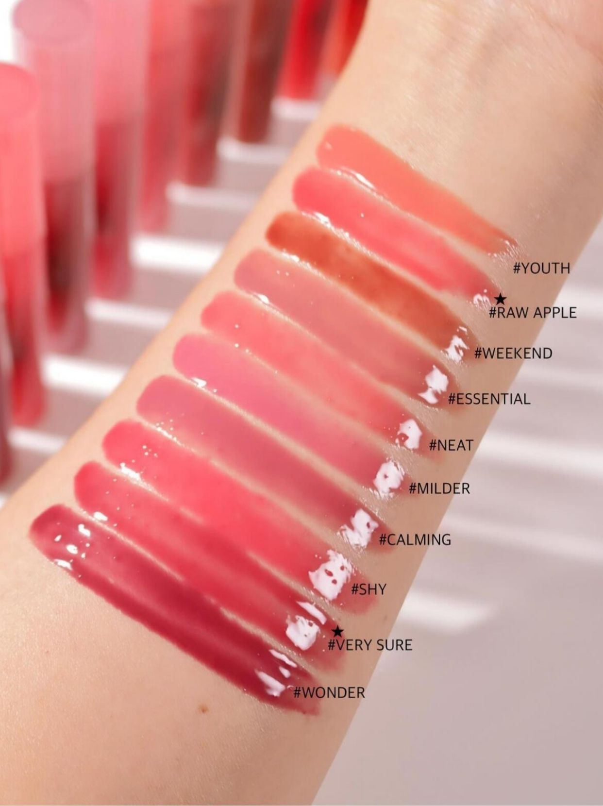 💨来自ins博主b l o g g e r nanal分享的『3CE 春季新品DROP GLOW GEL唇釉试色🎀 💨弹力油感凝胶配方好就好像在唇部凝结成水滴一般 轻盈又紧紧包裹双唇 拥有水润饱满的光泽感 颜色展现度很棒也不会黏腻 勺型硅胶刷头涂起来也很顺滑💜 💨请大数据把3CE新品水光唇釉推给喜欢饱满嘟嘟唇的姐妹! 超全试色分享心动上线,全员活力色系 清爽果汁感爆棚,夏日清甜必备,谁涂谁是...