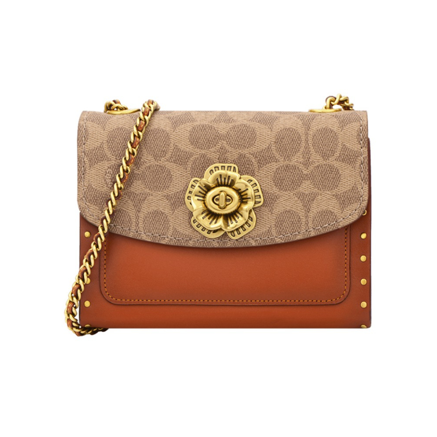 本篇笔记关联了Coach Parker 18 迷你 牛皮铆钉山茶花帆布配皮专柜款链条翻盖单肩斜挎包 棕色等商品,为用户提供真实的使用体验和购买参考。