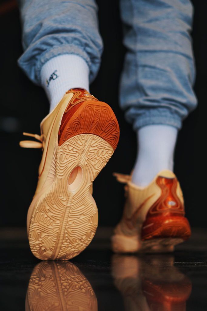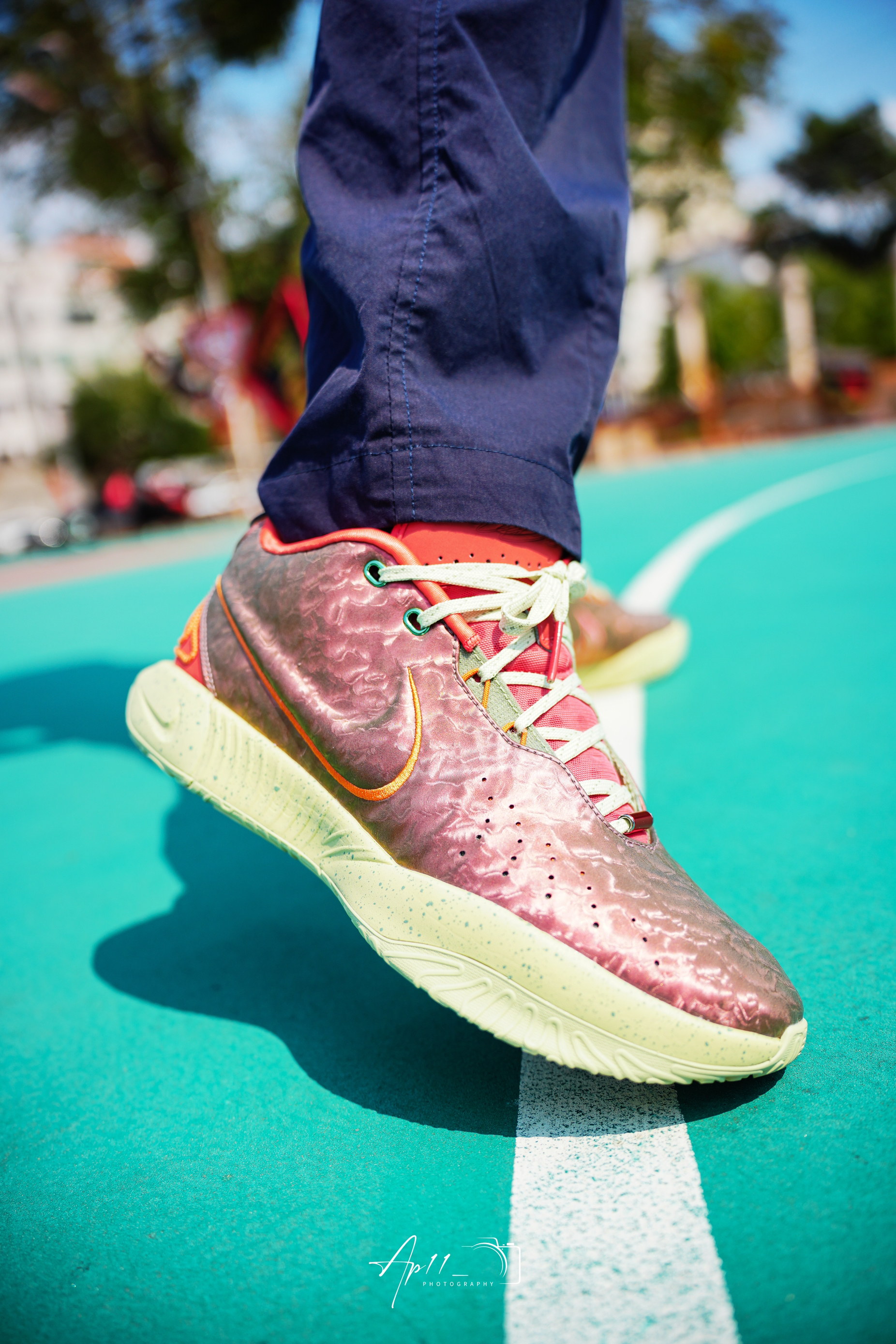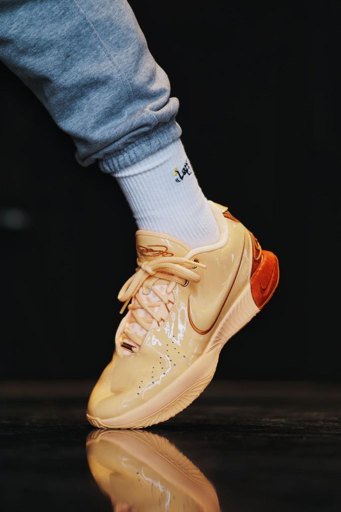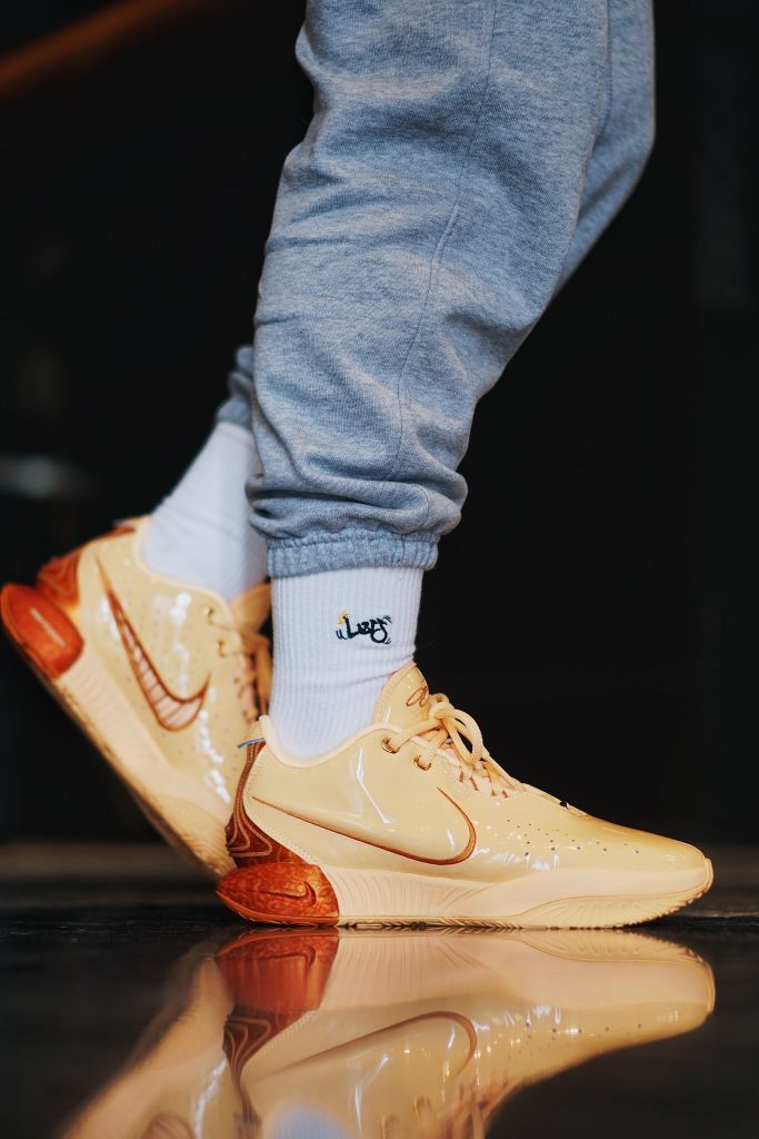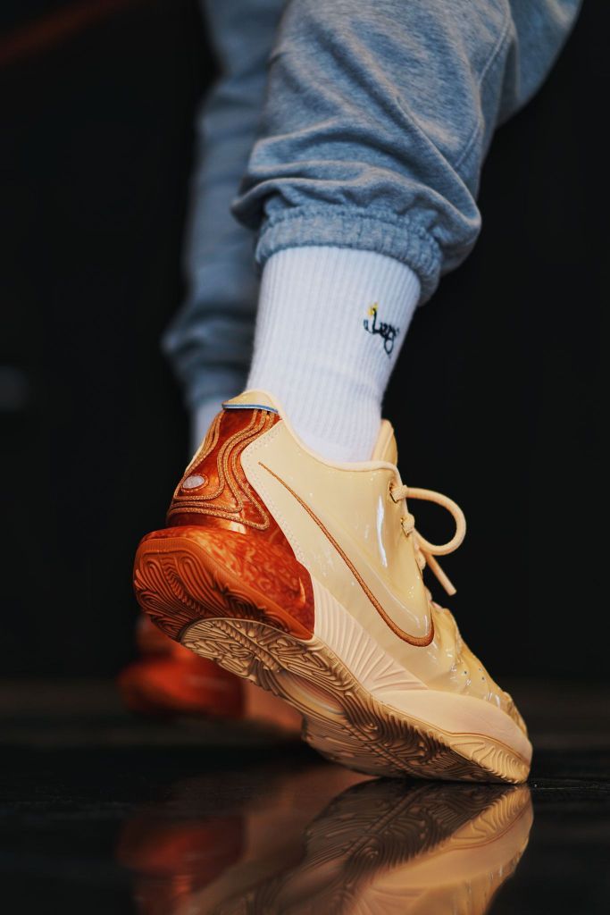 灵感来自于珍珠的LBJ 21又迎来了“美乐珠”配色,鞋面采用一整块橙色漆皮,十分华丽。内部的360°飞线环绕若隐若现,仿佛蚌壳保护珍珠一样保护双脚。