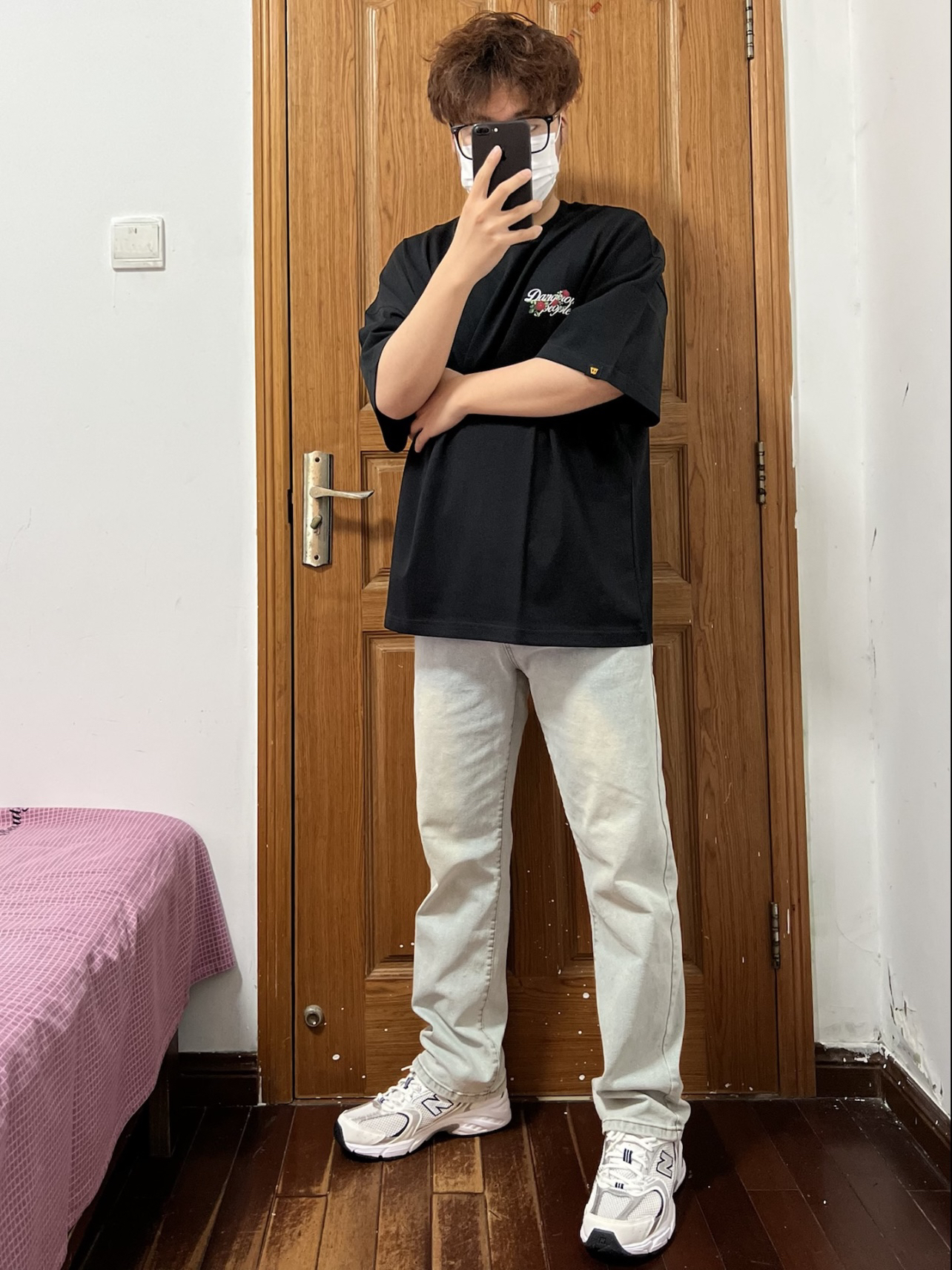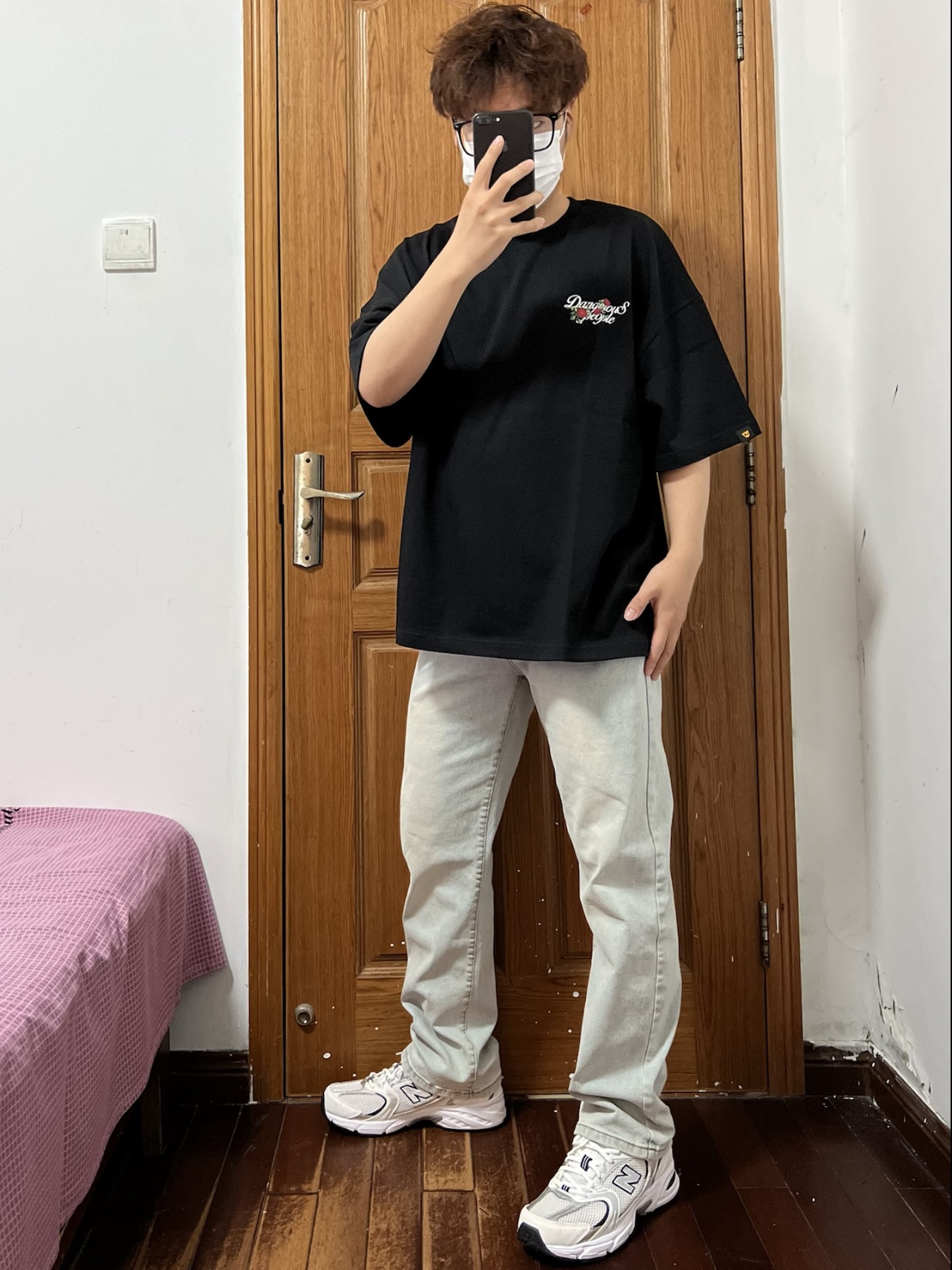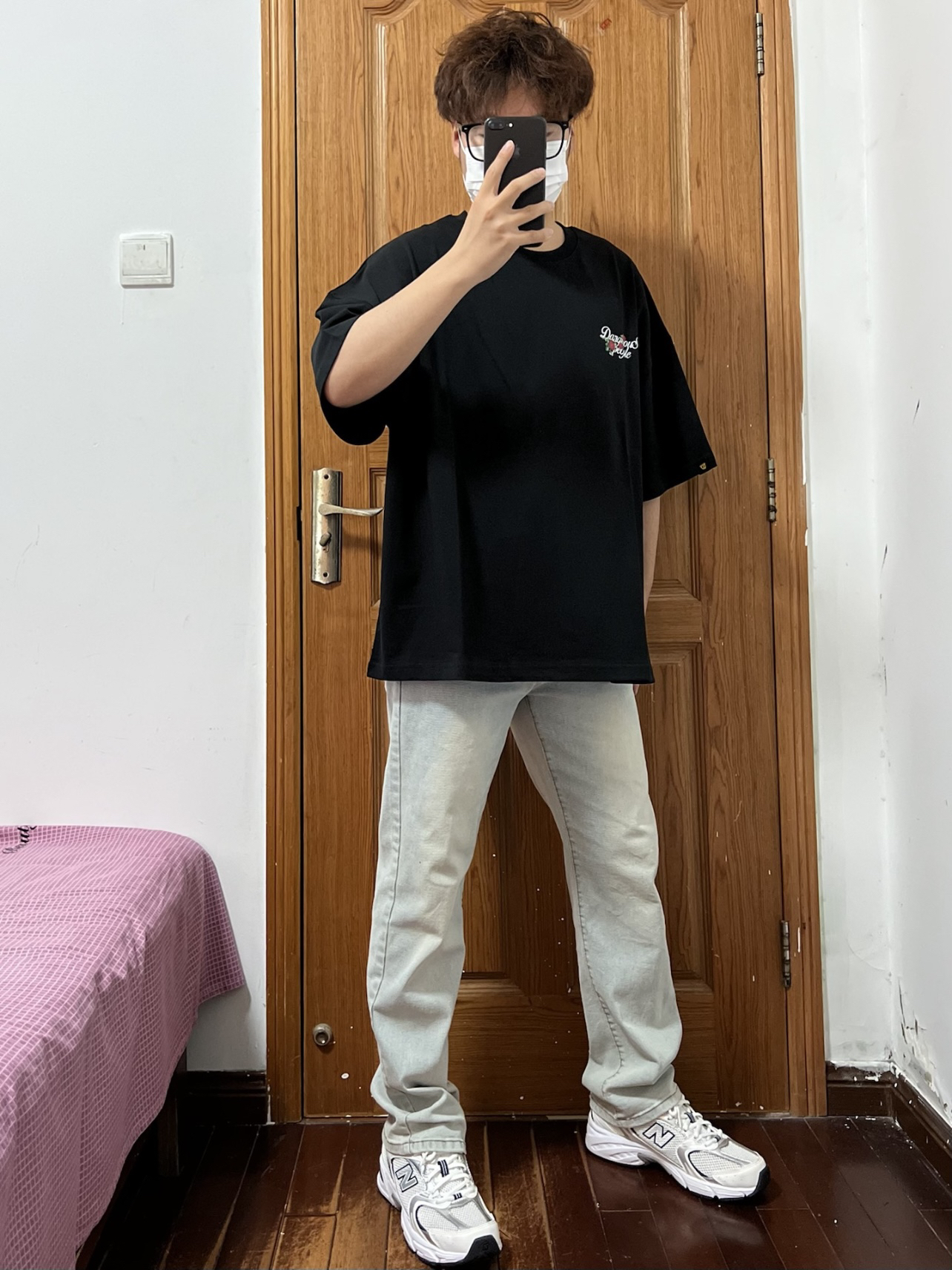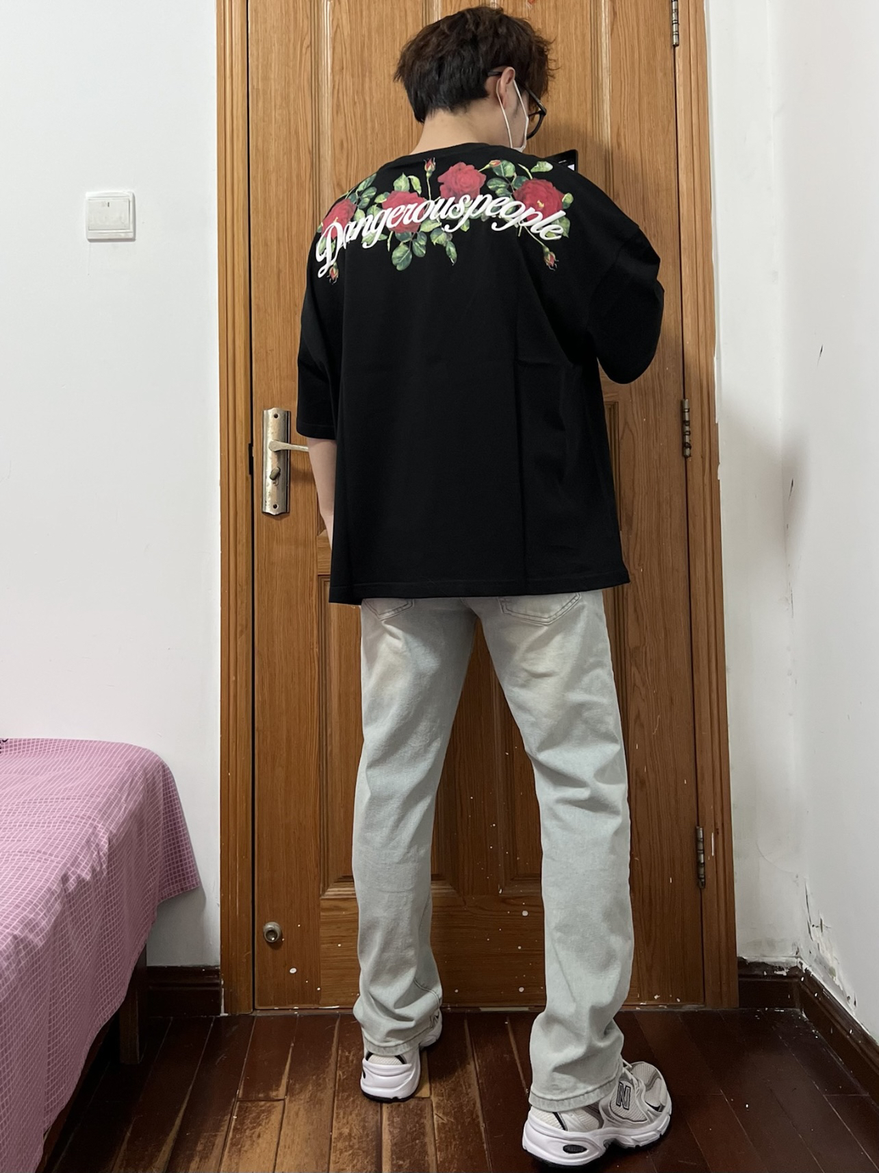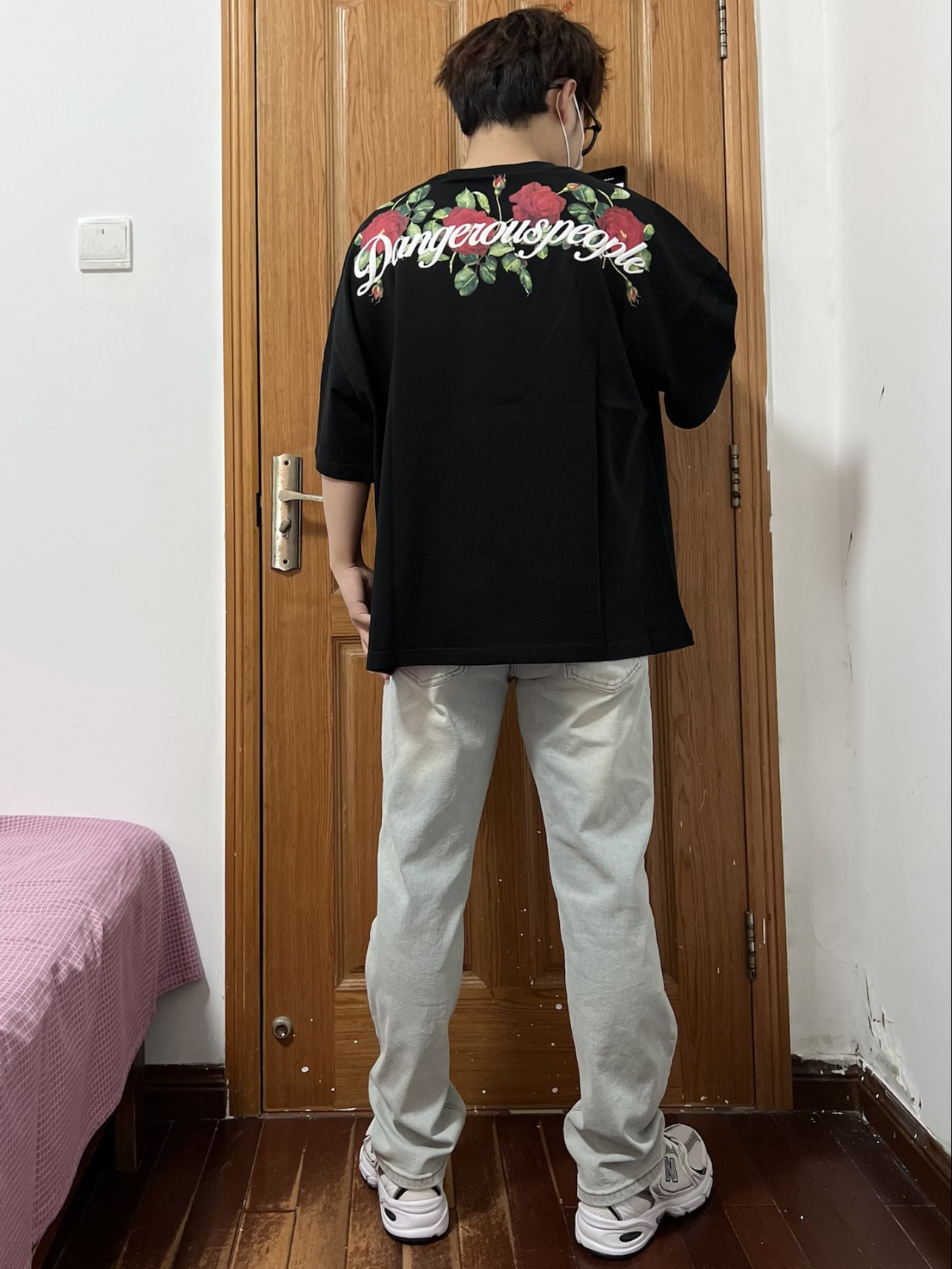 今日份穿搭分享🎉 DANGEROUSPEOPLE玫瑰印花短袖 黑色短袖谁都不缺吧!这么好看的🉑️不多 胸口是简单的dsp和玫瑰🌹的组合 美式风格也让人喜欢怜爱哦 如果说这个夏天只有一件黑色短袖就选它啦 显瘦显白的短袖我超爱好不好 搭配一条浅蓝色牛仔裤和白色运动鞋 👔 DANGEROUSPEOPLEA 👖 浅蓝色牛仔裤 👟 NB530 🙋♂️ 170/120斤 L 持续带来最真实的穿搭体验和球...