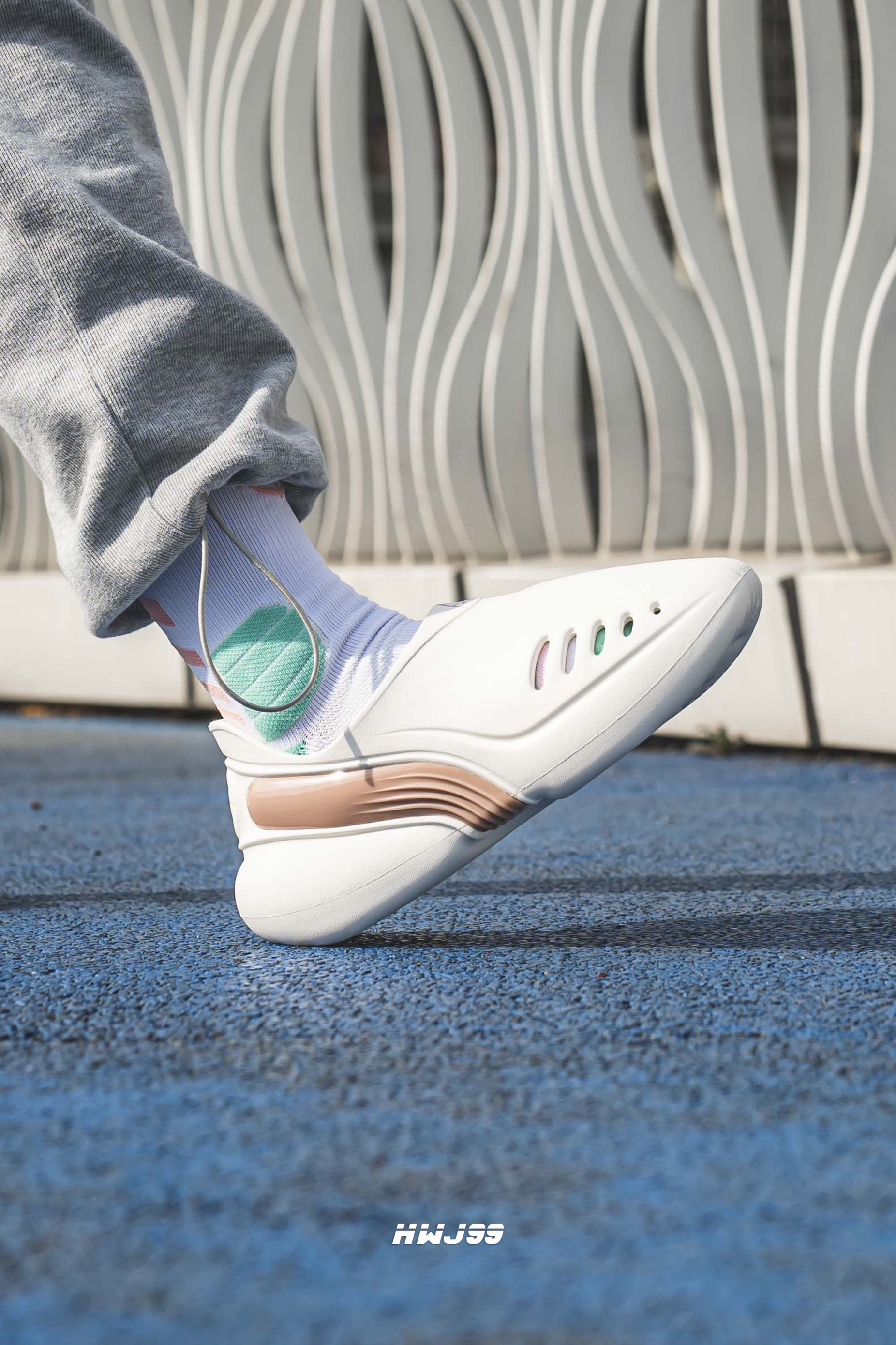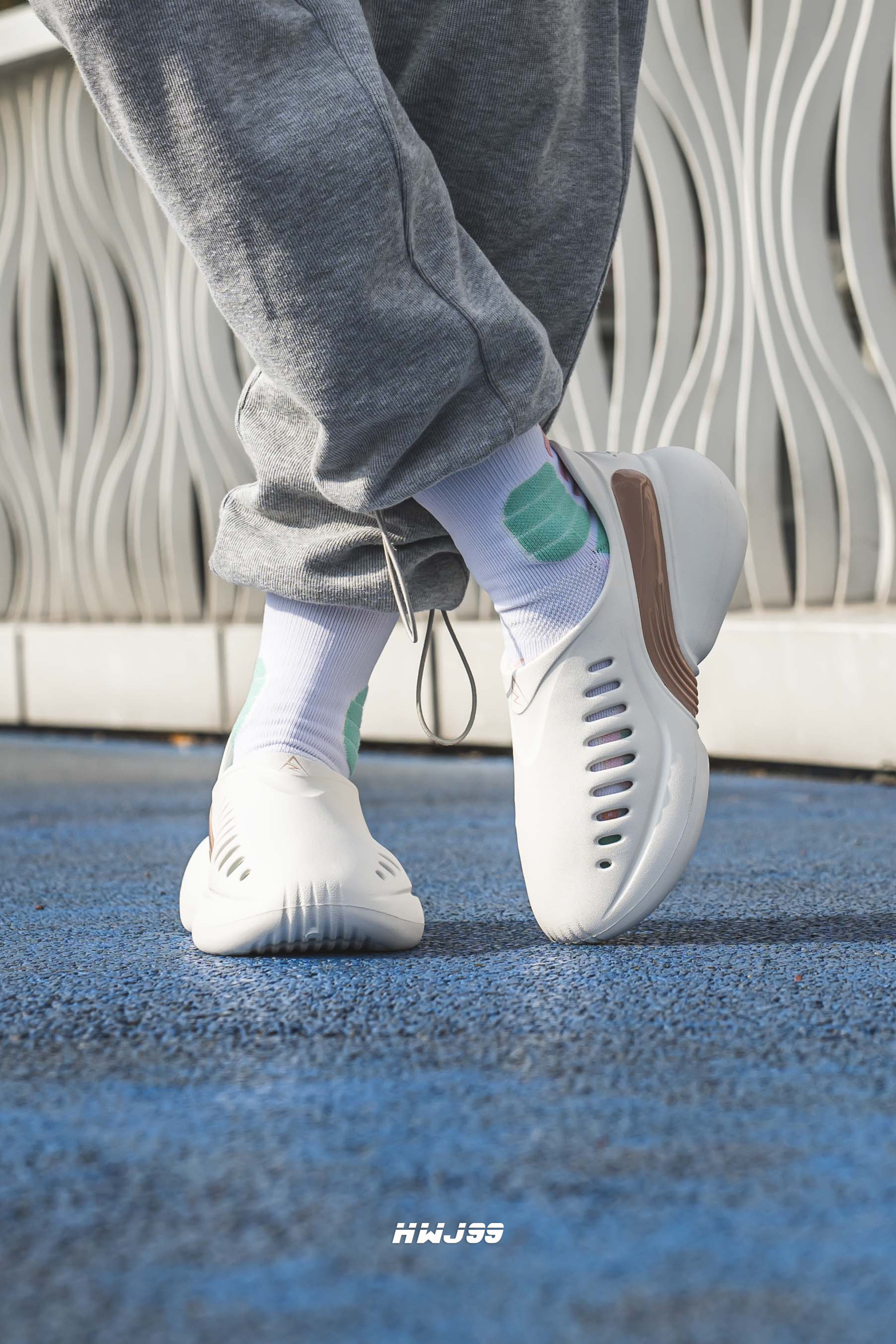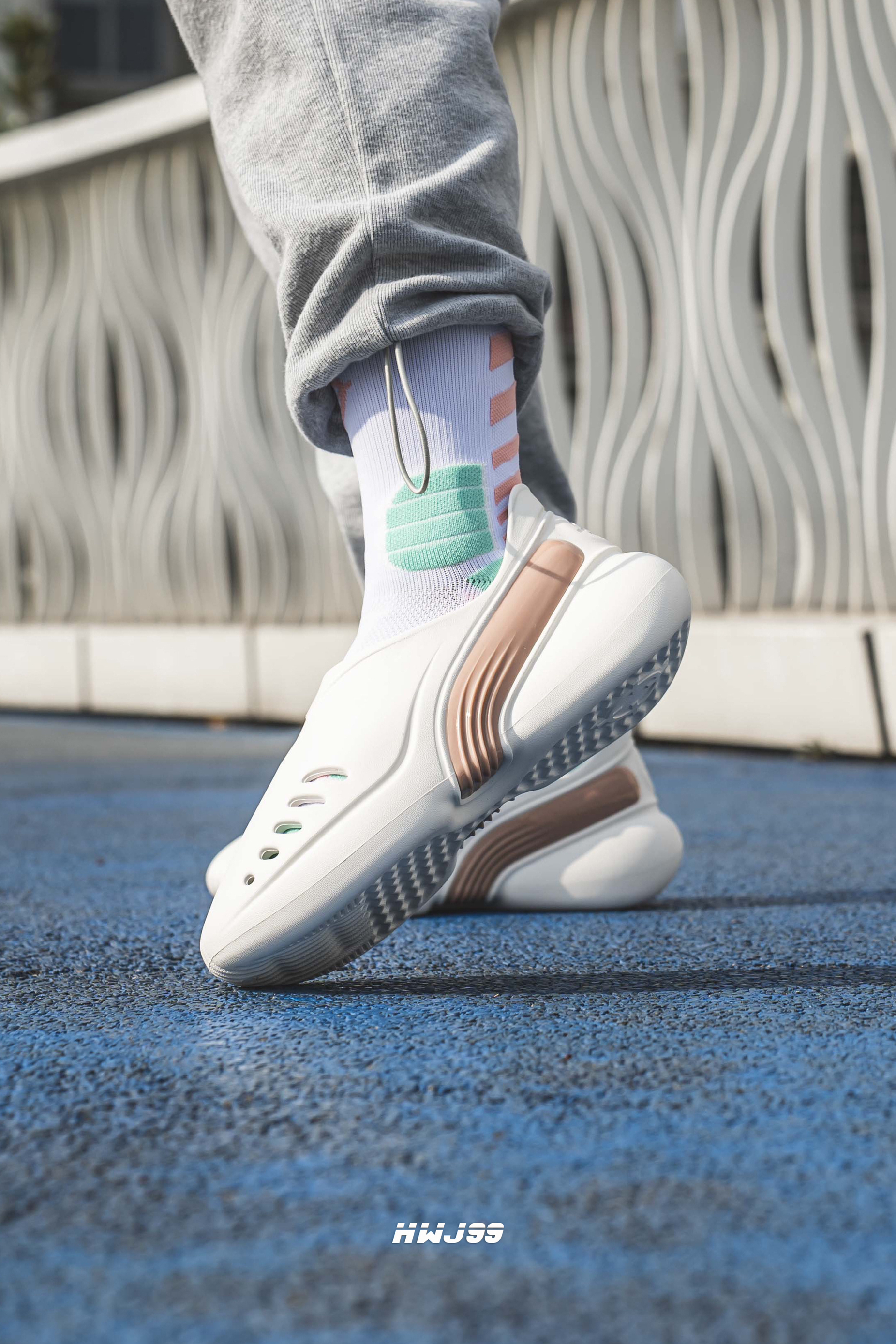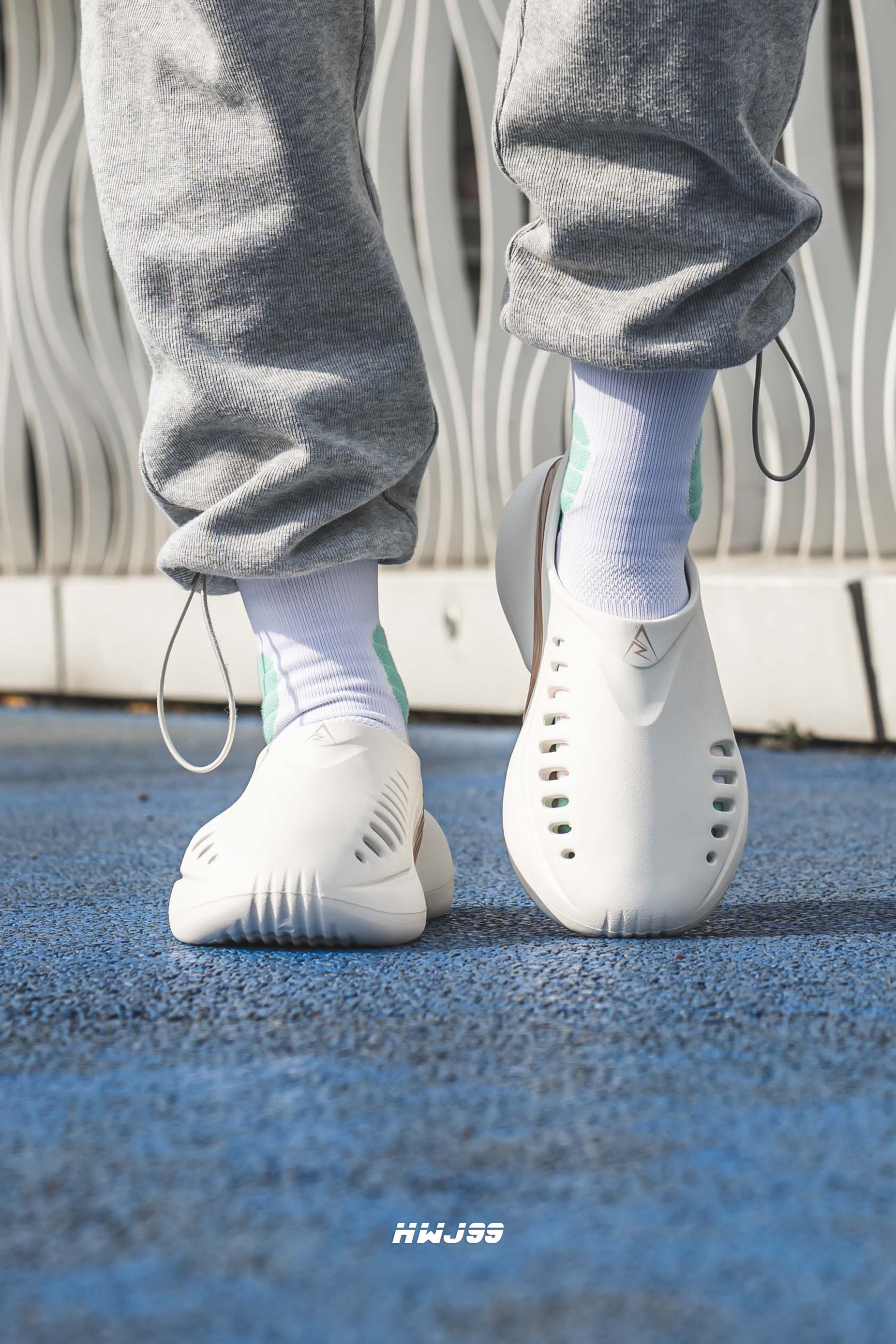 兄弟们前几天分享了一款黑色的里夫斯洞洞鞋,这不白色的也来了,确实很上镜哈~ 首先这款白色可以说更好的可以看清鞋子的外形设计,这款洞洞鞋我觉得有两点是我很喜欢的,第一就是这头两侧霸气的透气孔,很帅!第二就是从足弓延伸到后跟的抗扭TPU,很有辨识度。不知道兄弟们你们觉得这款哪点更吸引你们,欢迎留言讨论哈~
