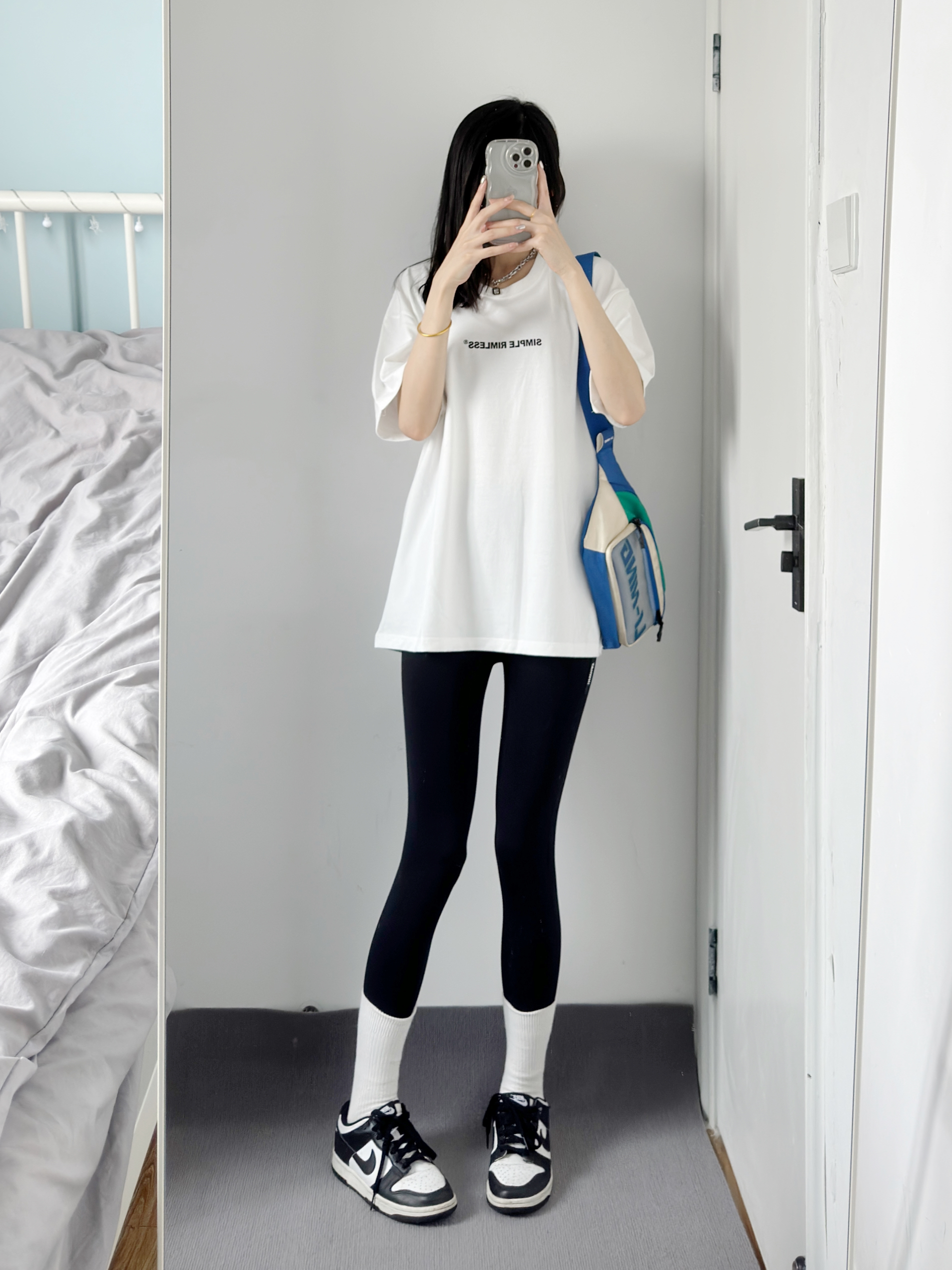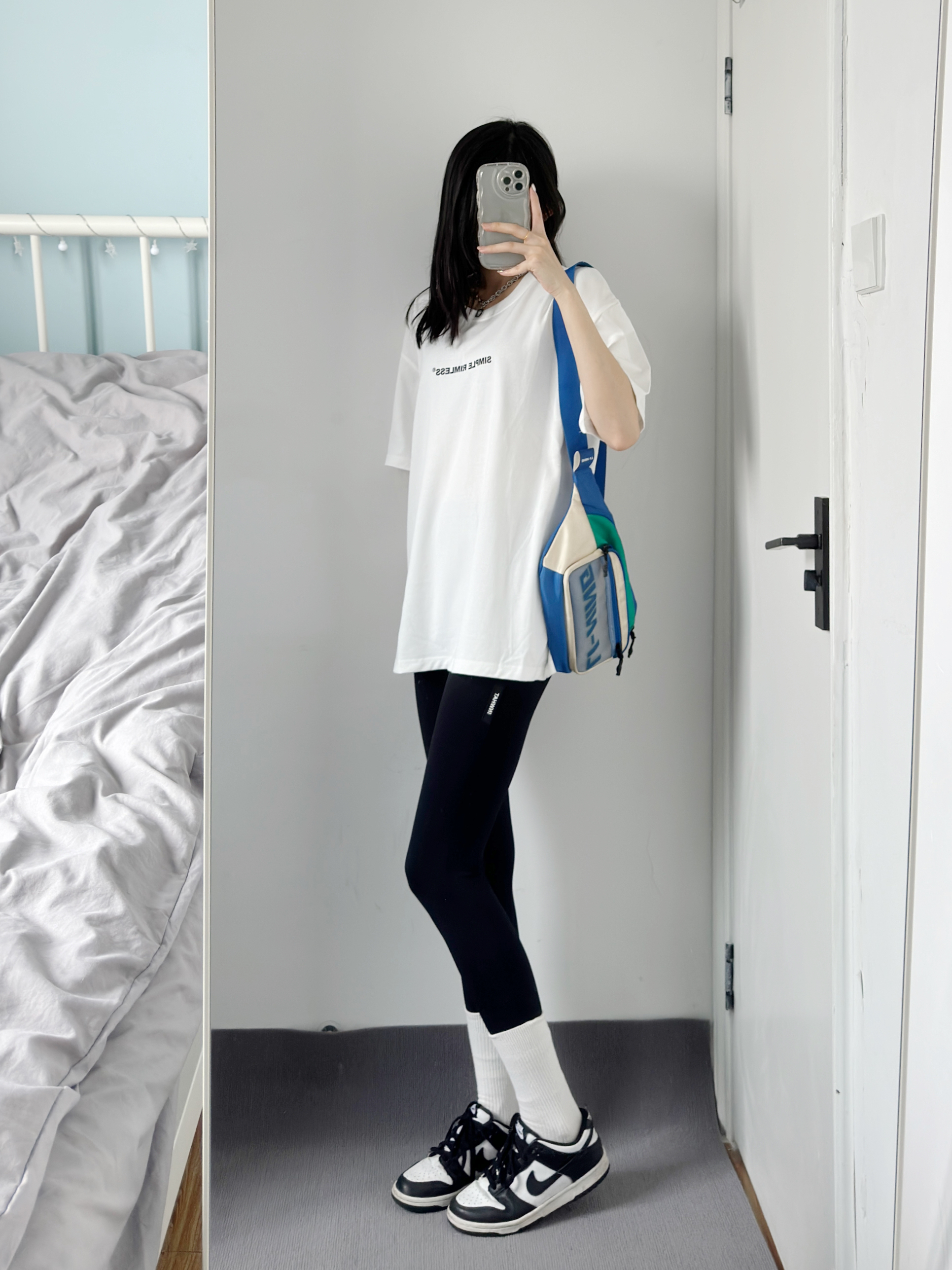 宽松短袖搭配鲨鱼裤 一套也太显瘦了吧!! 夏天真的好爱这样穿 因为真的好舒服好休闲呀 穿去运动也很合适!!