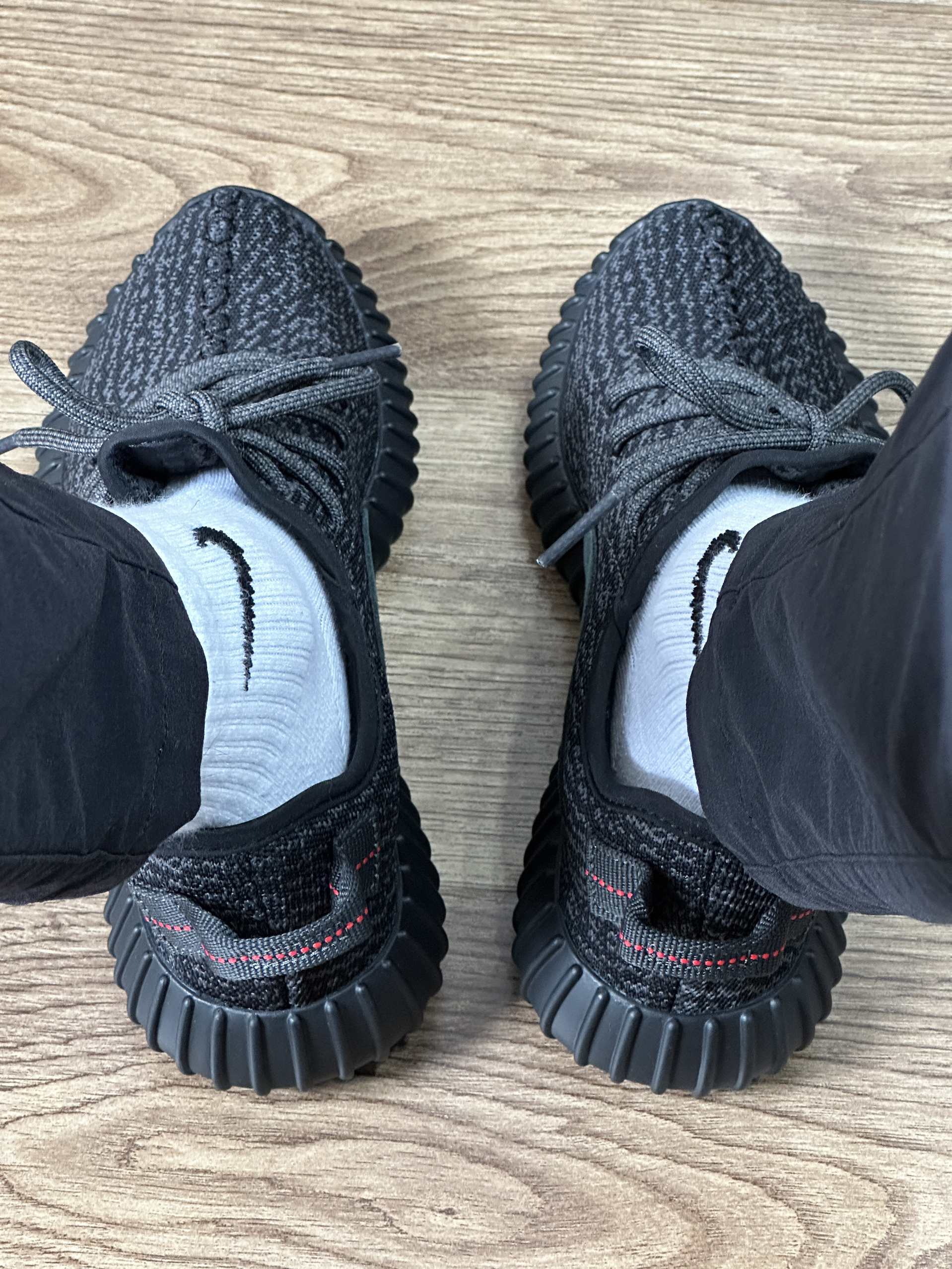 ▶现在这双Yezzy350初代完全可以成为打工人的通勤鞋了,有相对合理的价格、舒适的脚感和不错的颜值! ▶初代Yezzy350上脚没有显得脚很大,黑武士配色日常搭配也简单 我很喜欢的是外底弧度更大,没有压前脚趾的烦恼 鞋身的真的面料较厚,耐用性没的说 中底依旧是阚家技术Boost,实际表现踩上去有软弹而不失支撑性 ▶这双鞋尺码偏小需要买大半码