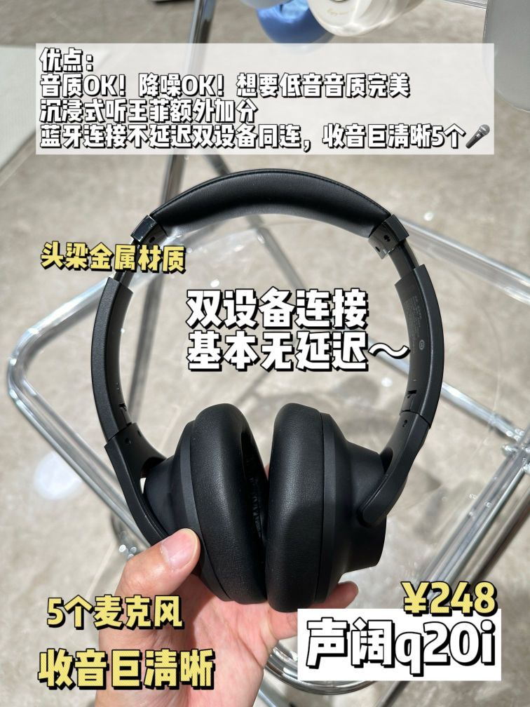 千万别跟风😡头戴式耳机真实反馈 鉴于周边太多姐妹问平价降噪头戴式耳机的功课,我熬夜查了3天资料,终于研究出一篇📚攻略,关于漫步者w820nb、声阔q20i、倍思h1i、唐麦h5、IKFKingpro这几款戴过,说一下我的感受吧(纯个人观点哈) 🎧声阔 优点: 音质OK!降噪OK!想要低音音质完美沉浸式听王菲额外加分, 头梁金属🉑折叠🉑调节,不压头侧面看很好看👀 蓝牙连接不延迟双设备同连,收音巨...