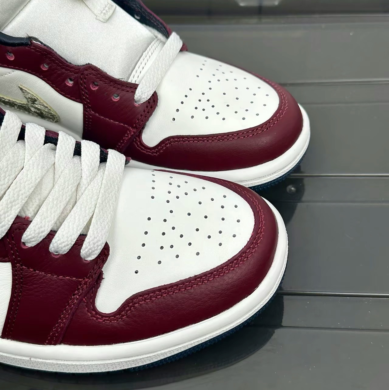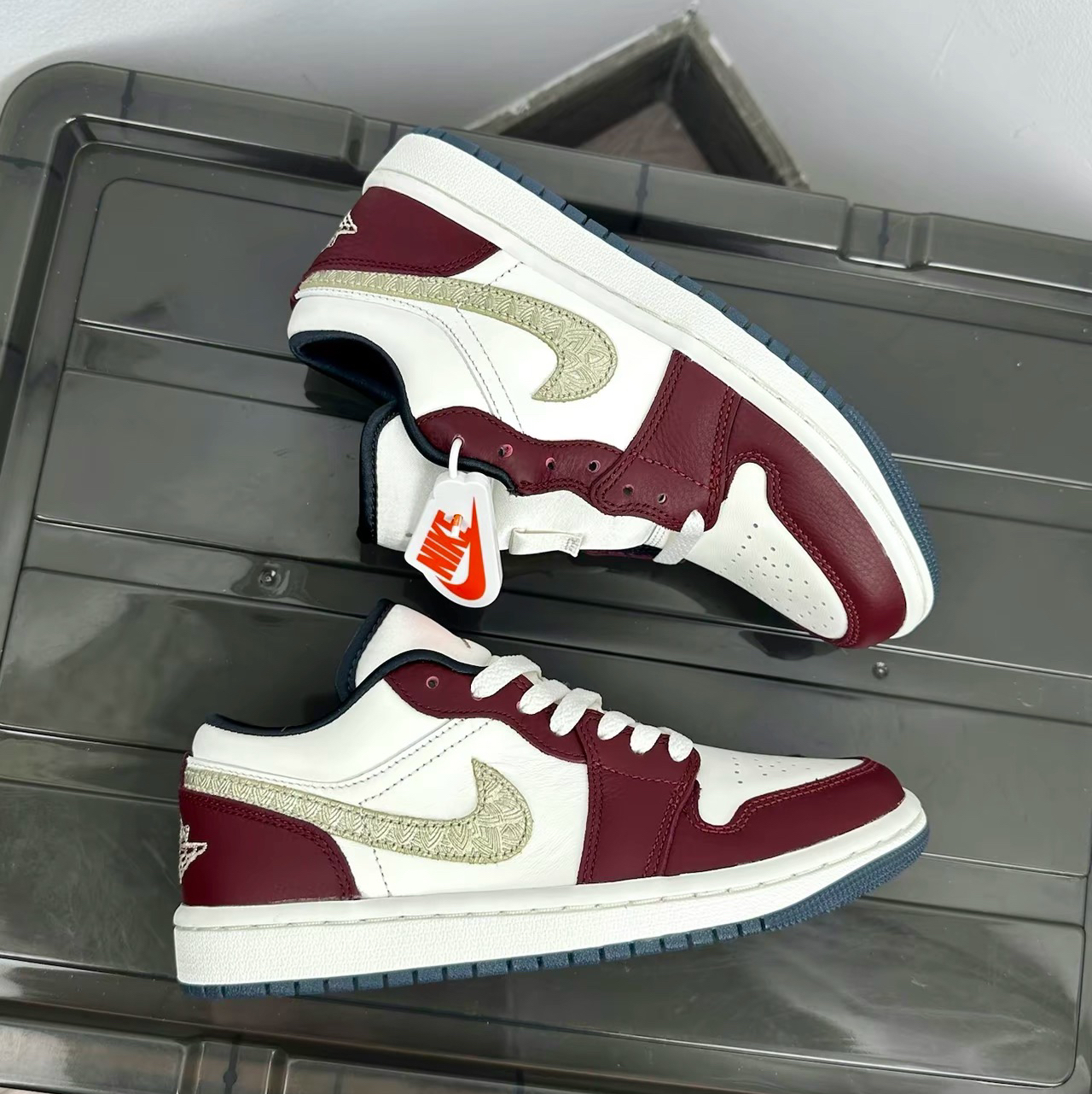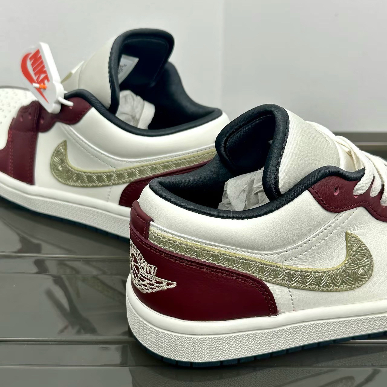 最近发售不久的龙年限定款鞋子以米白加酒红为主 就很高级的感觉~还有金色logo点缀 更加增添富贵和限定的质感!