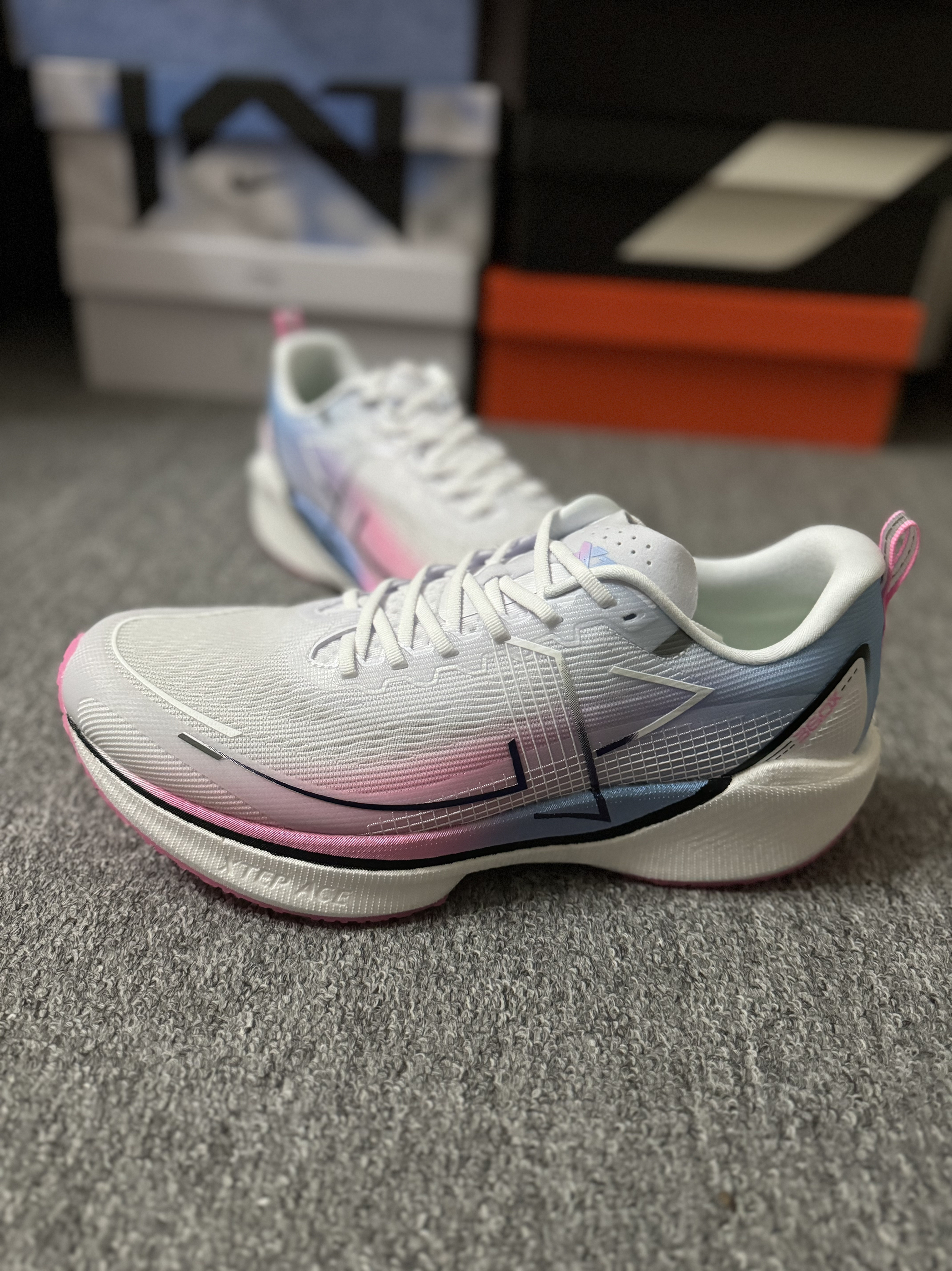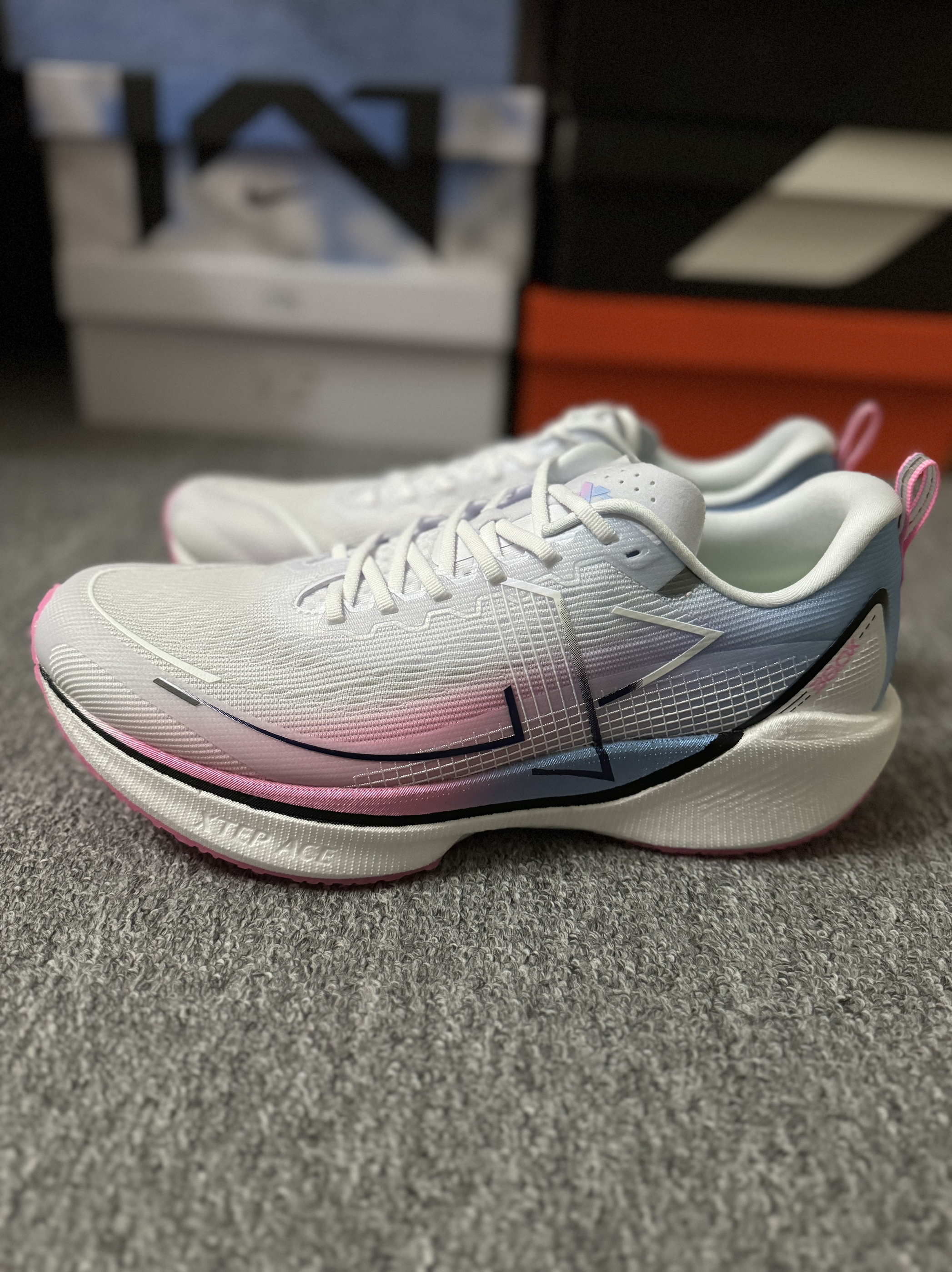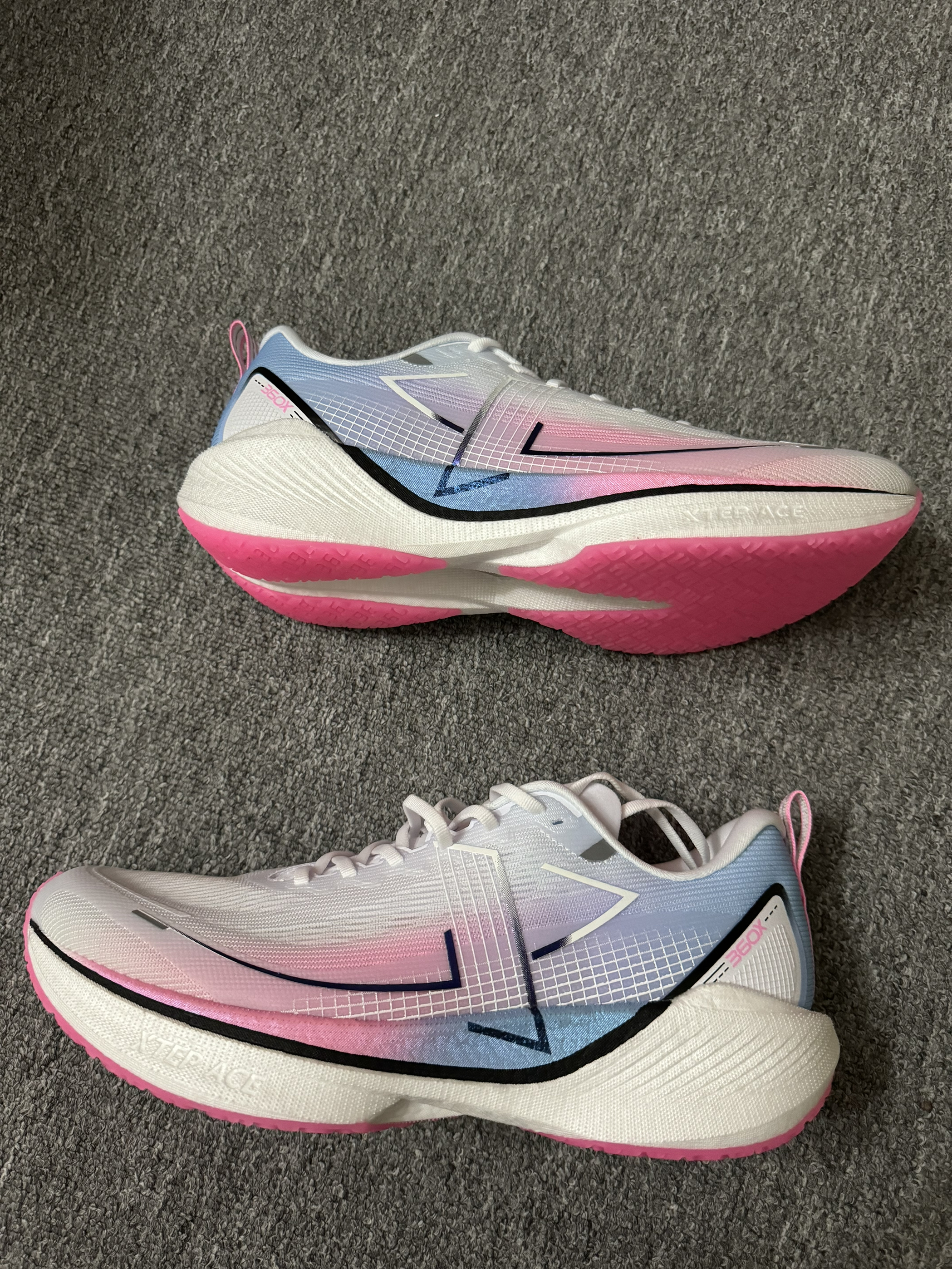 特步 360X 白蓝粉 开箱体验还是不错的,性能需要实战后才知道! 还有就是新鞋异味太大了!