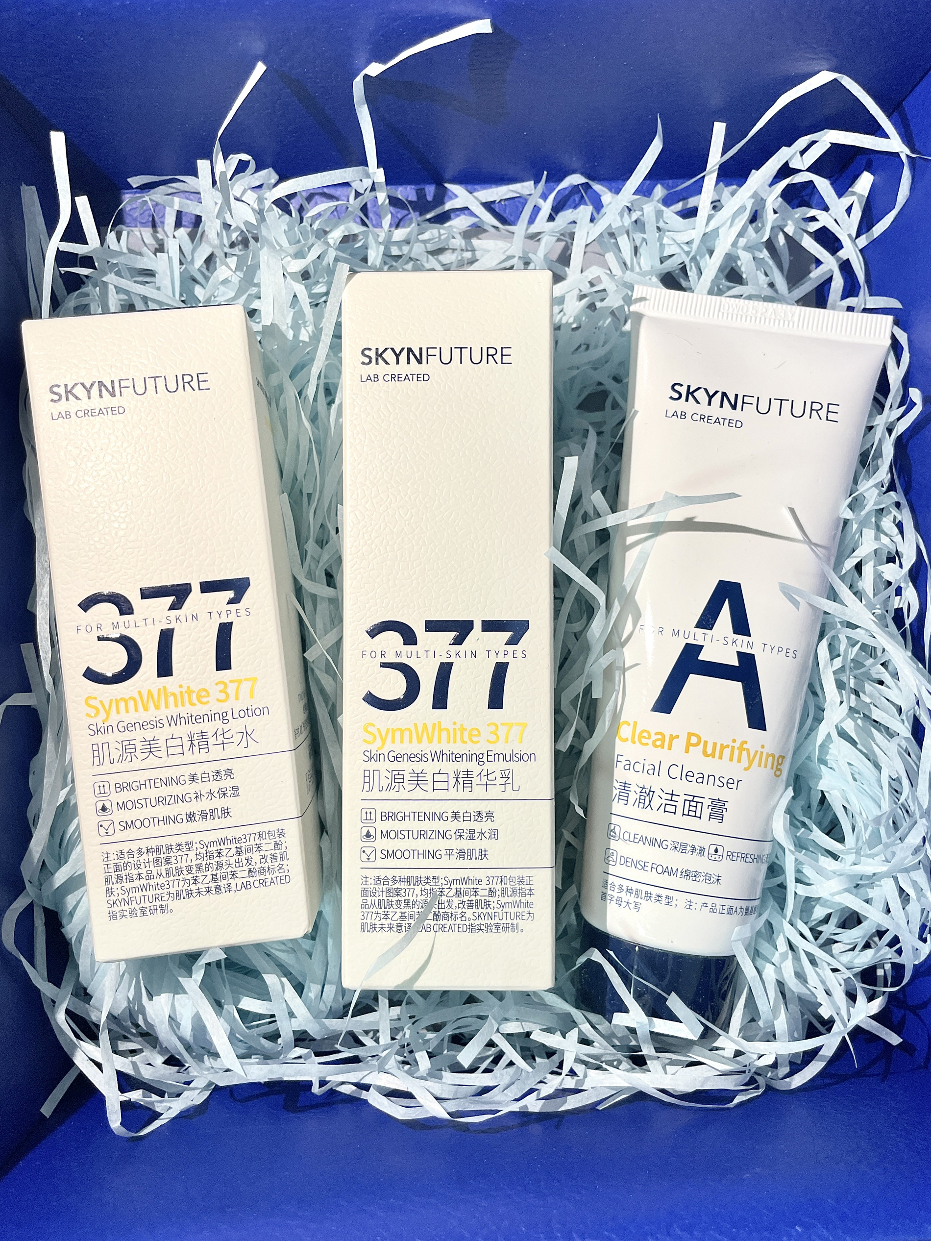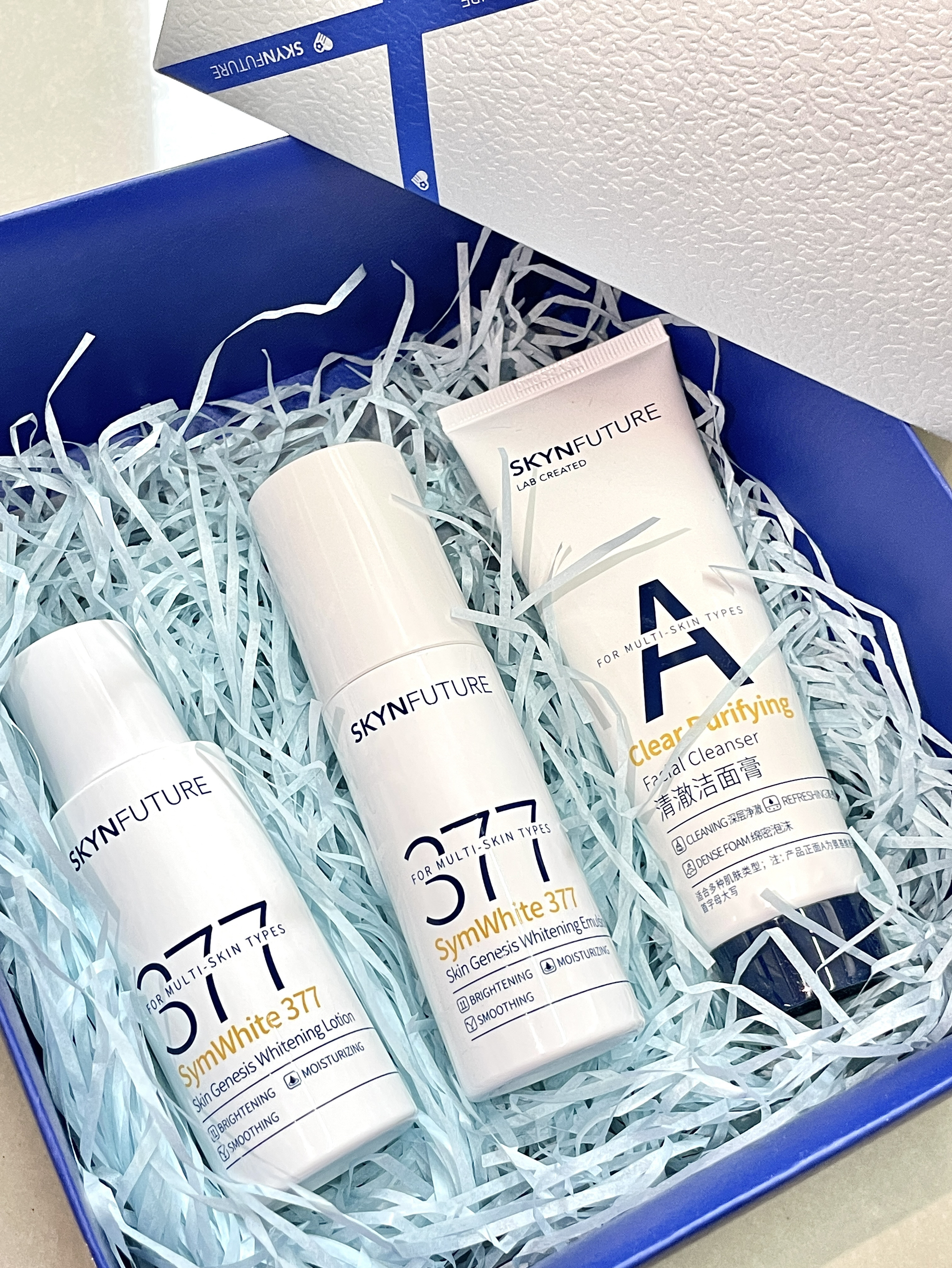 开学忙着各种学习任务 熬夜是在所难免的 皮肤也随之暗沉了很多 自从购入了肌肤未来377护肤套装 皮肤提亮了不少 套装里包含了 水,乳,洗面奶 简单的护肤流程一套搞定 上脸是很清爽的感觉 吸收也很快 现在素颜出门 再也不怕没有好气色啦