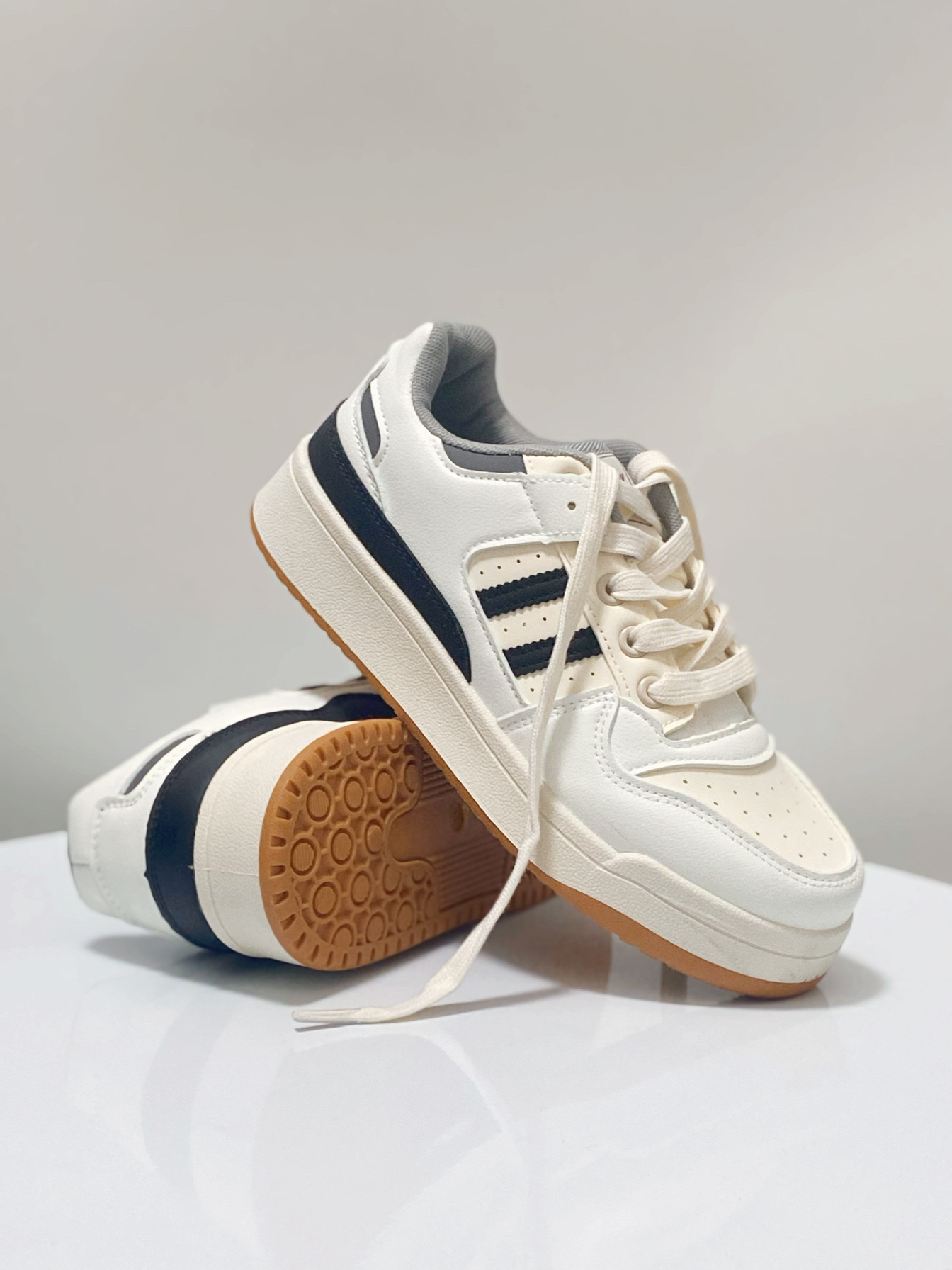 👟( @MISTERY) - 自带复古味的板鞋谁不爱啊 😉 米白搭配黑色 简约又百搭 日常牛仔 👖、运动裤都可驾驭 - 上脚轻便舒适 久穿 🚶也不累 才两位数 💰 平价好穿 ~ 正常尺码不偏 按平常的来即可 !✅ 是男女同款的,情侣款安排 ❗
