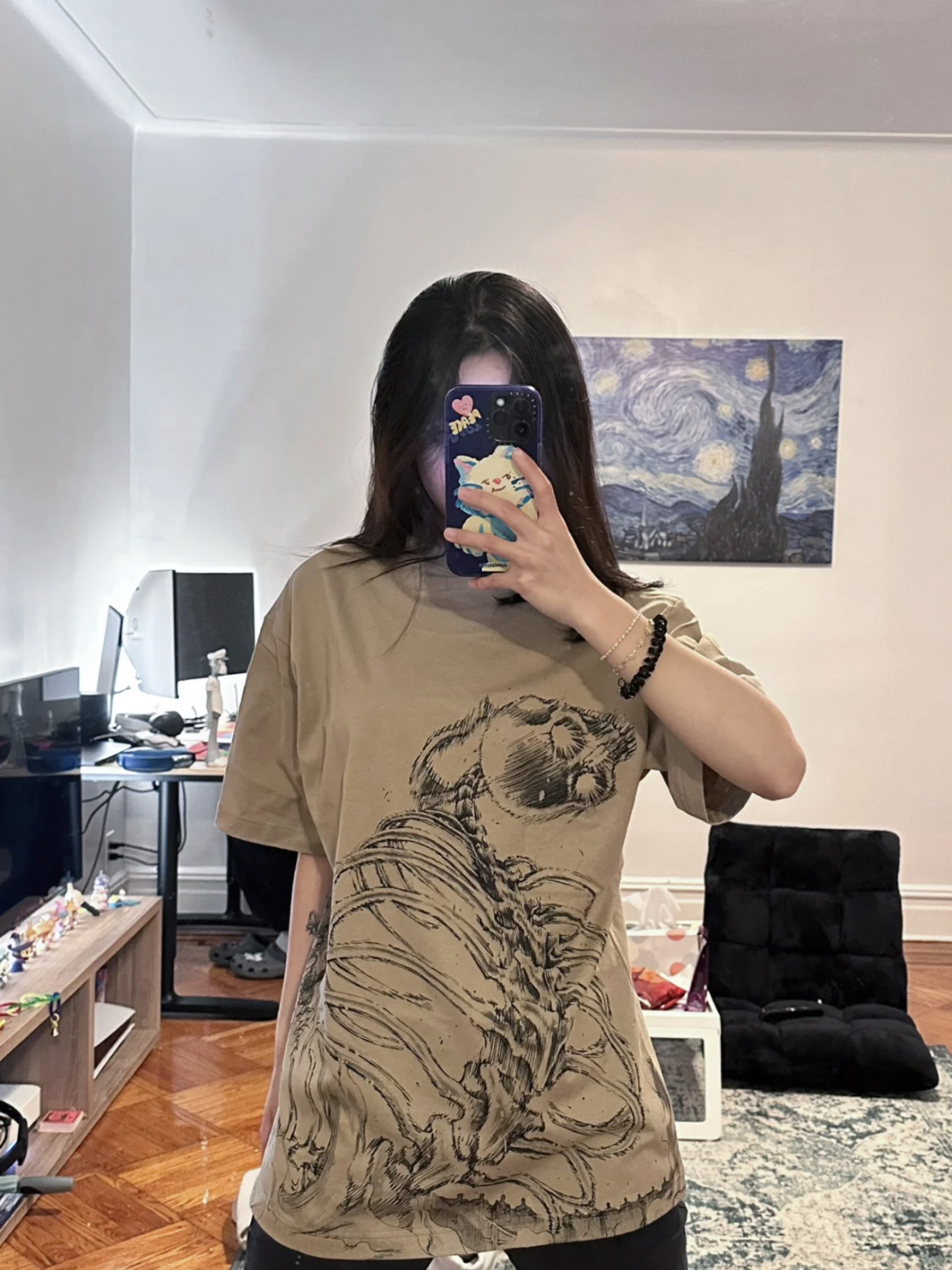 👏这款权志龙和Nike联名的T恤一共抽中了两件,白色接盘了一件,白色看网上图片会有点透就没买了! - ✅首先大家关心的尺码问题,我手头一共有S码和M码,本人170身高,两个码试穿了下,还是S码比较适合我这个身高的,M码得175及以上会比较合适! - 👋其次这款的厚度是有点薄的,适合春夏季节,领口收的比较小,不会很松垮,这点我蛮喜欢的😁,袖子略长而且是收口的设计,也挺好的,还有就是腰围是真的宽松偏大...
