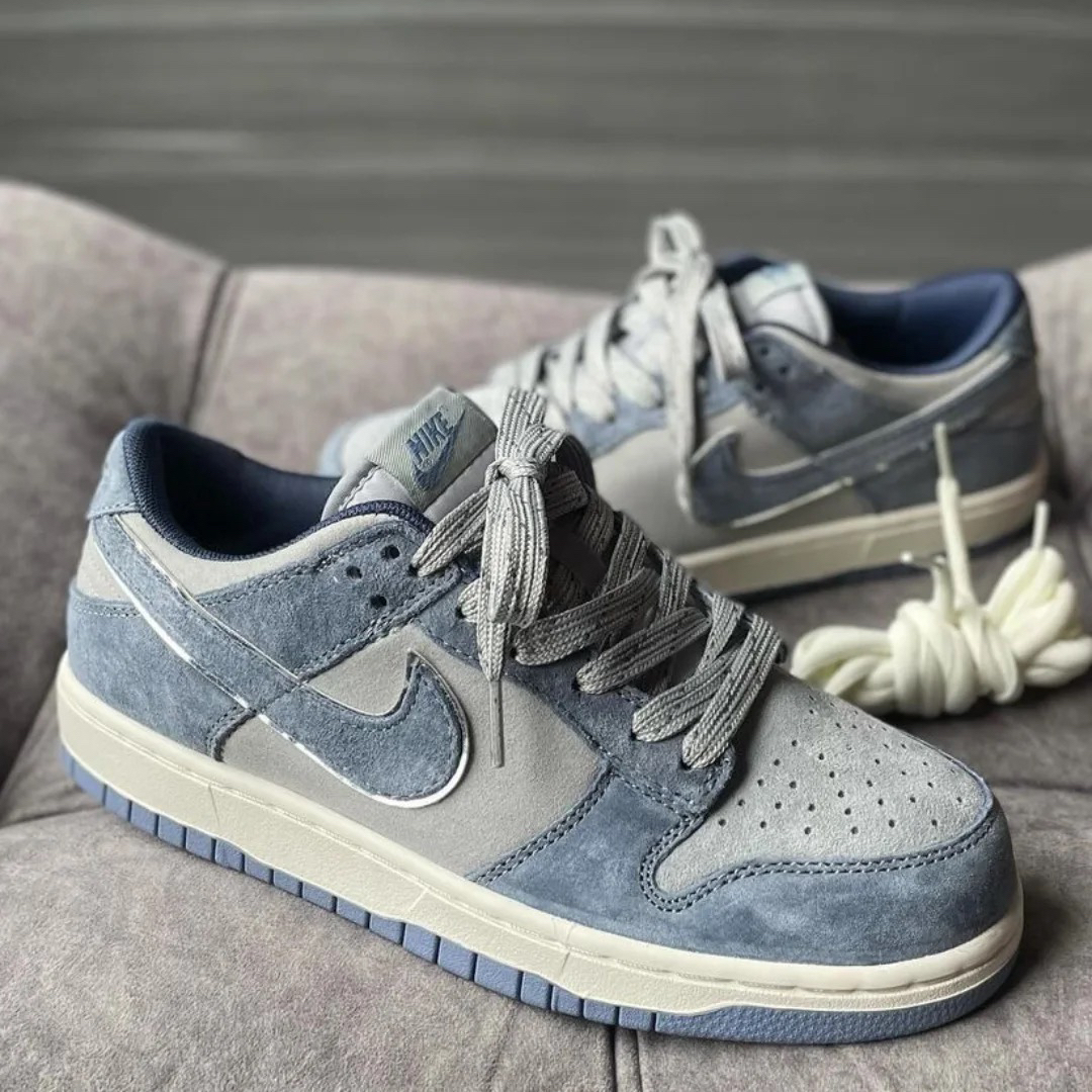 这双Nike Dunk Low鞋款以低调而高级的灰蓝色调呈现,鞋面采用细腻的麂皮材质,质感出众。鞋舌上的经典Swoosh标志和鞋跟处的蓝色点缀,为整体增添了一抹亮色。鞋底采用白色中底搭配灰色外底,既耐脏又时尚。整体设计简约而不简单,无论是日常穿搭还是街头潮流都能轻松驾驭。