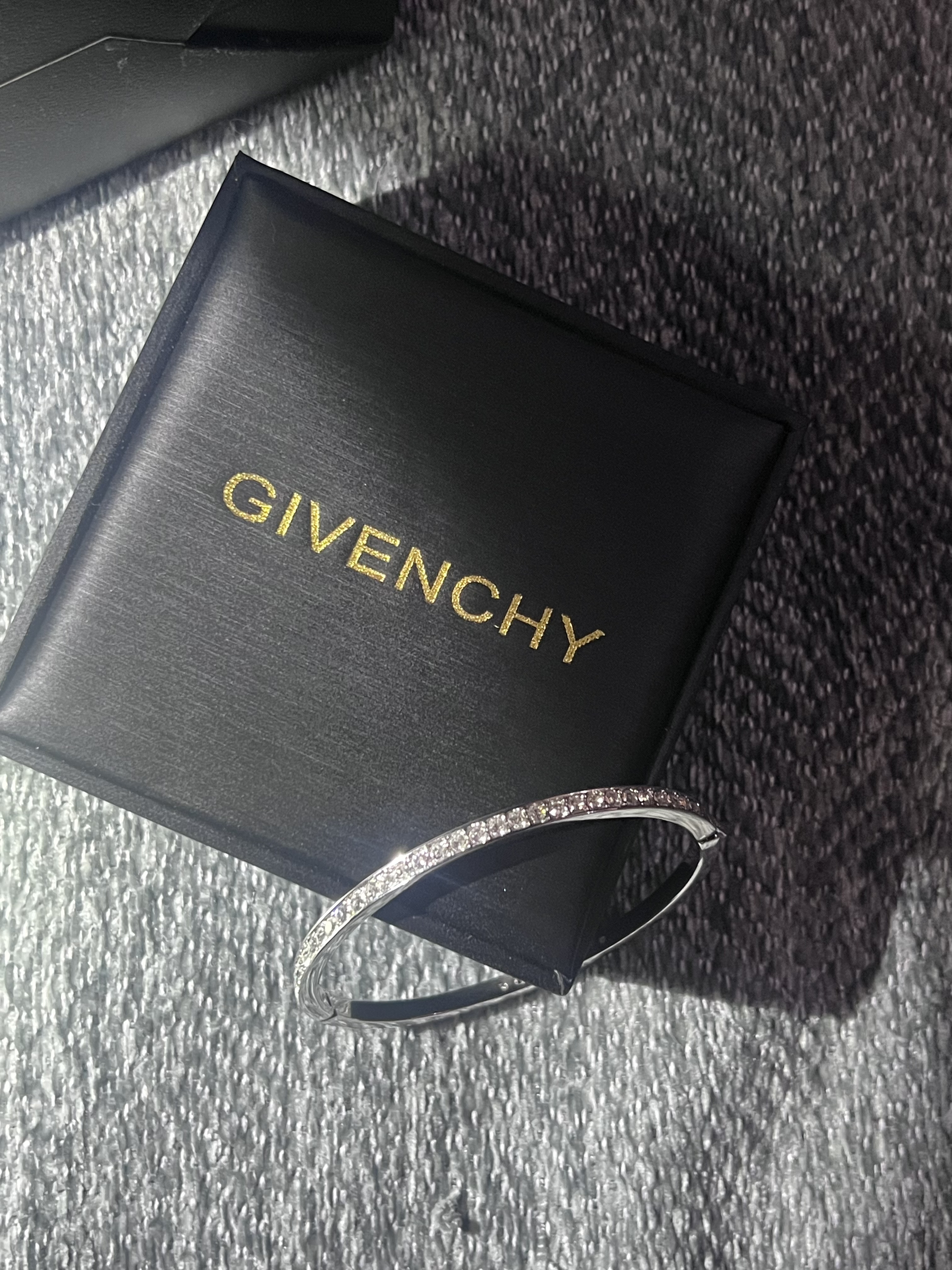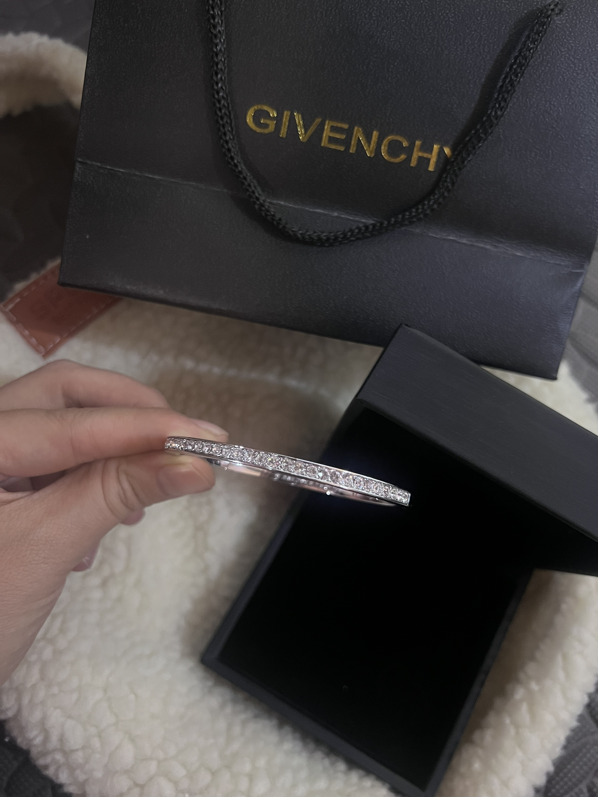 纪梵希单排小碎钻手镯,尺寸6.5cm,0.4镯面宽。 纪梵希饰品对于旗下其他品类来说,相较比较冷门小重,但也是普通人入手大牌饰品不错的选择,性价比蛮高。 我购入的这款是银色,很百搭,很日常。 整体款式简约大方,不会过时也不会太抢眼,上手很显白,拍照拍不出它的质感,实物真的很美,做工也很不错,几百块就可以得到的大牌手镯,日常通勤佩戴也很ok。 #分享高级感宝藏手镯 #纪梵希Givenchy #大牌...