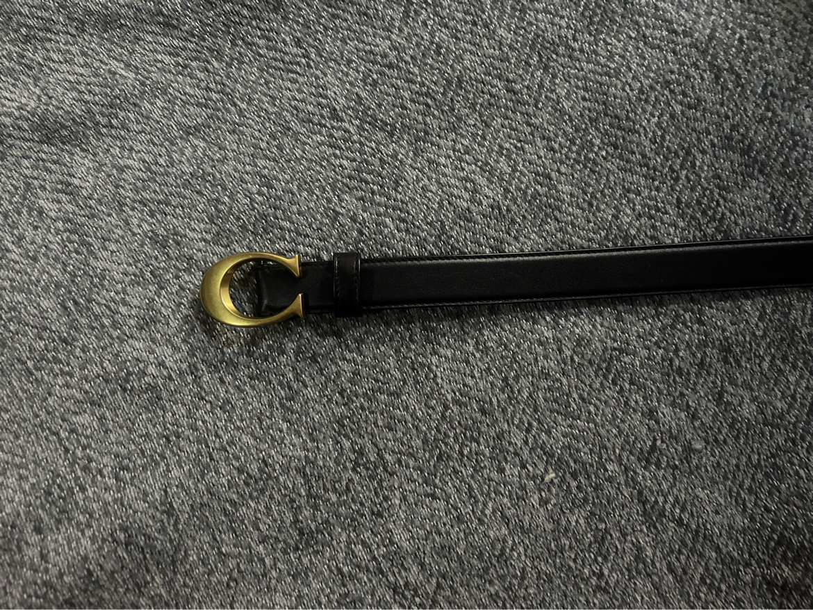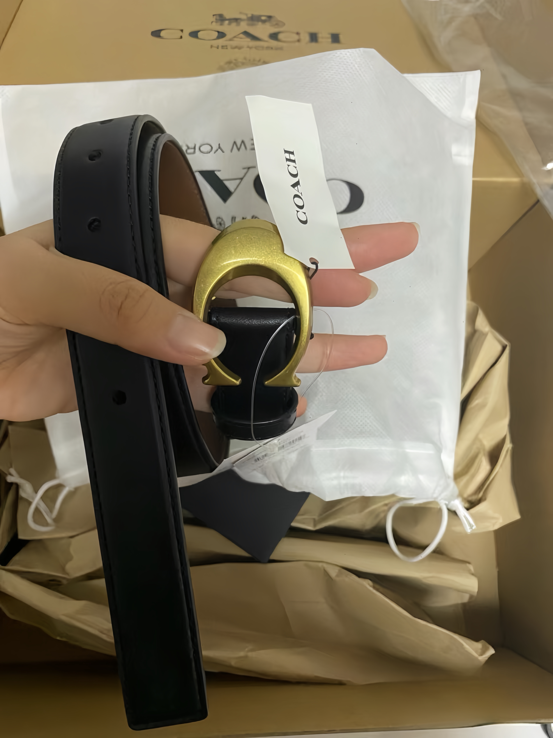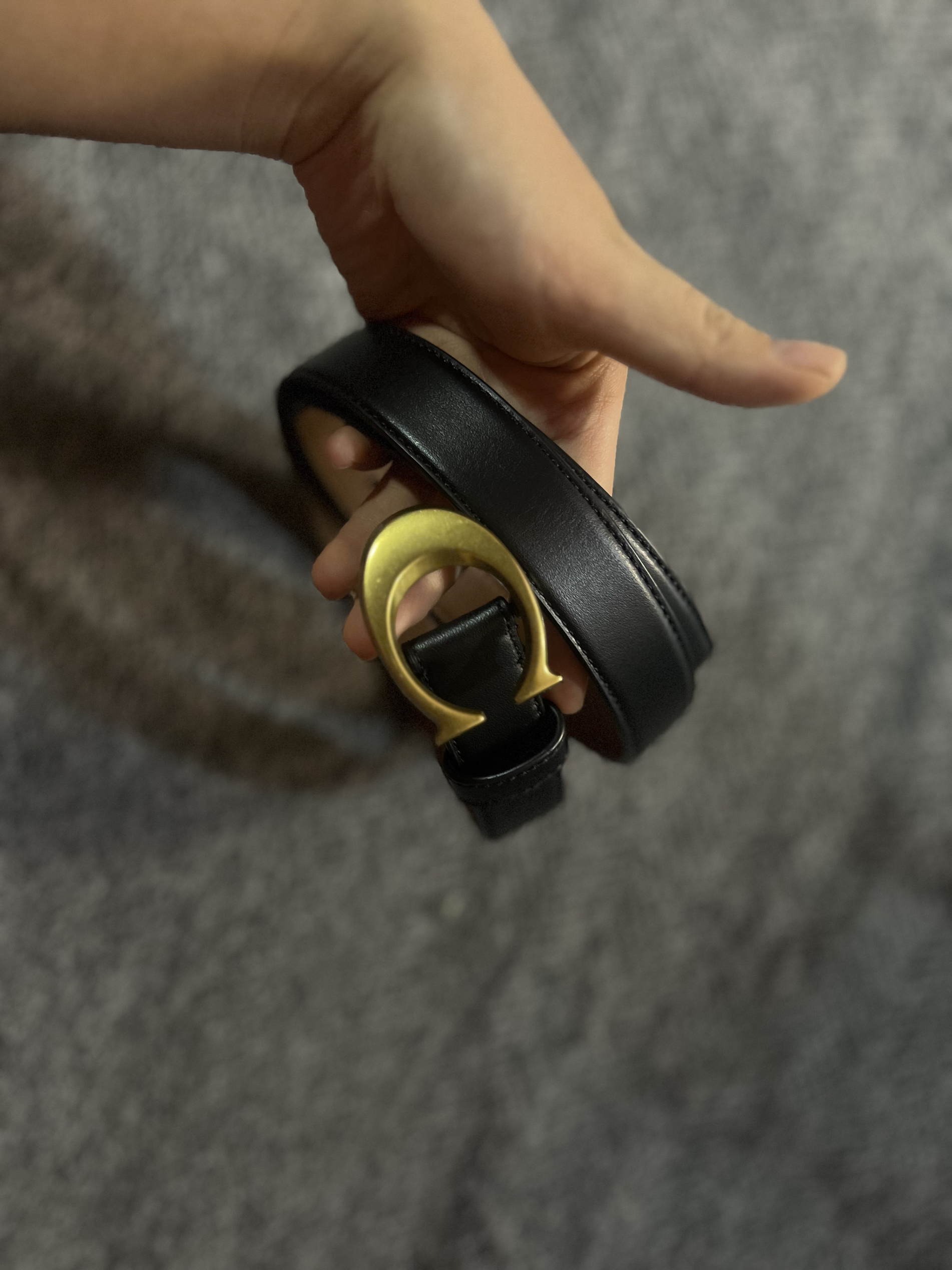 蔻驰经典腰带,非常百搭,裤子、裙子啥都可以搭配,经典永不过时~ 材质是头层牛皮,耐磨不怕划伤,复古做旧古铜金色皮带扣真的很好看,我日常使用率非常高哦! 本人小个子一枚,选择的是2.5CM,S码,还比较合适,穿牛仔裤或者裙子的时候系,尺寸长度都比较合适。肚子肉肉比较多的可以考虑M码,稍微长一点。 关于打孔,本身的孔位不太够,我又单独拿去打了两个孔,打完后就非常合适,想把它半永久在我腰上,哈哈。 #...