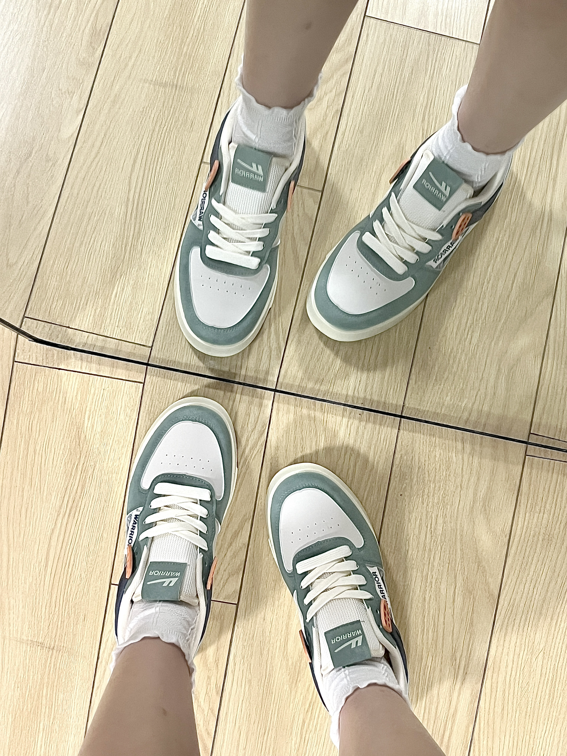 这双板鞋的配色真的很戳我! 实物很小清新的奶绿色 版型很正 正面侧面都好看 日常通勤搭配小白裙可好看咯~