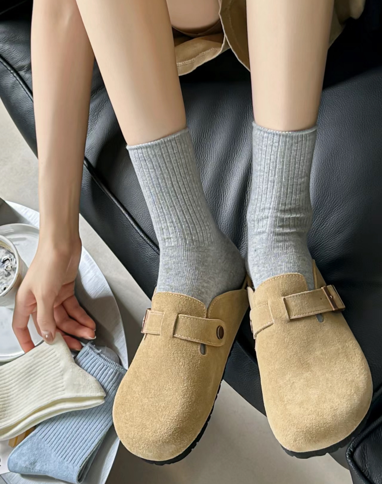 简简单单的色系 奶油袜真的YYDS 一袜两穿 堆叠起来穿真的满满的松弛感搭配勃肯鞋 慵懒的感觉! 新疆棉柔软又舒适 透气不闷脚是非常好穿的袜子推荐!
