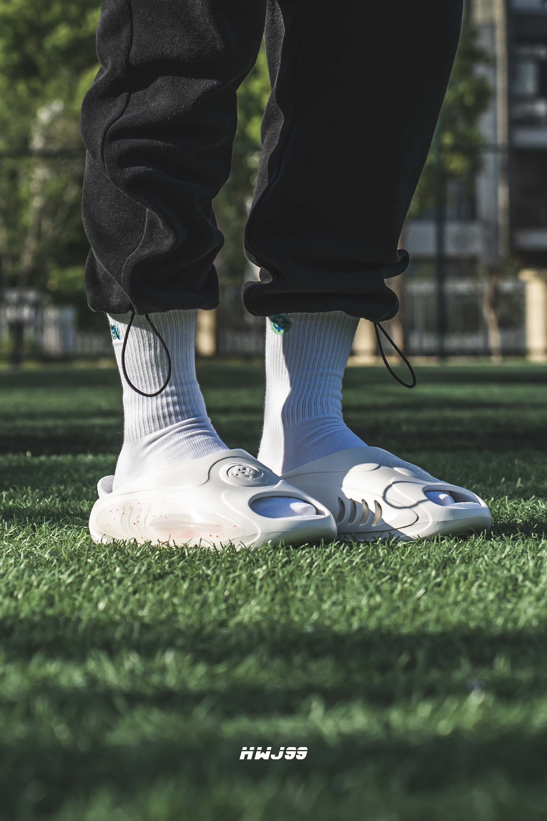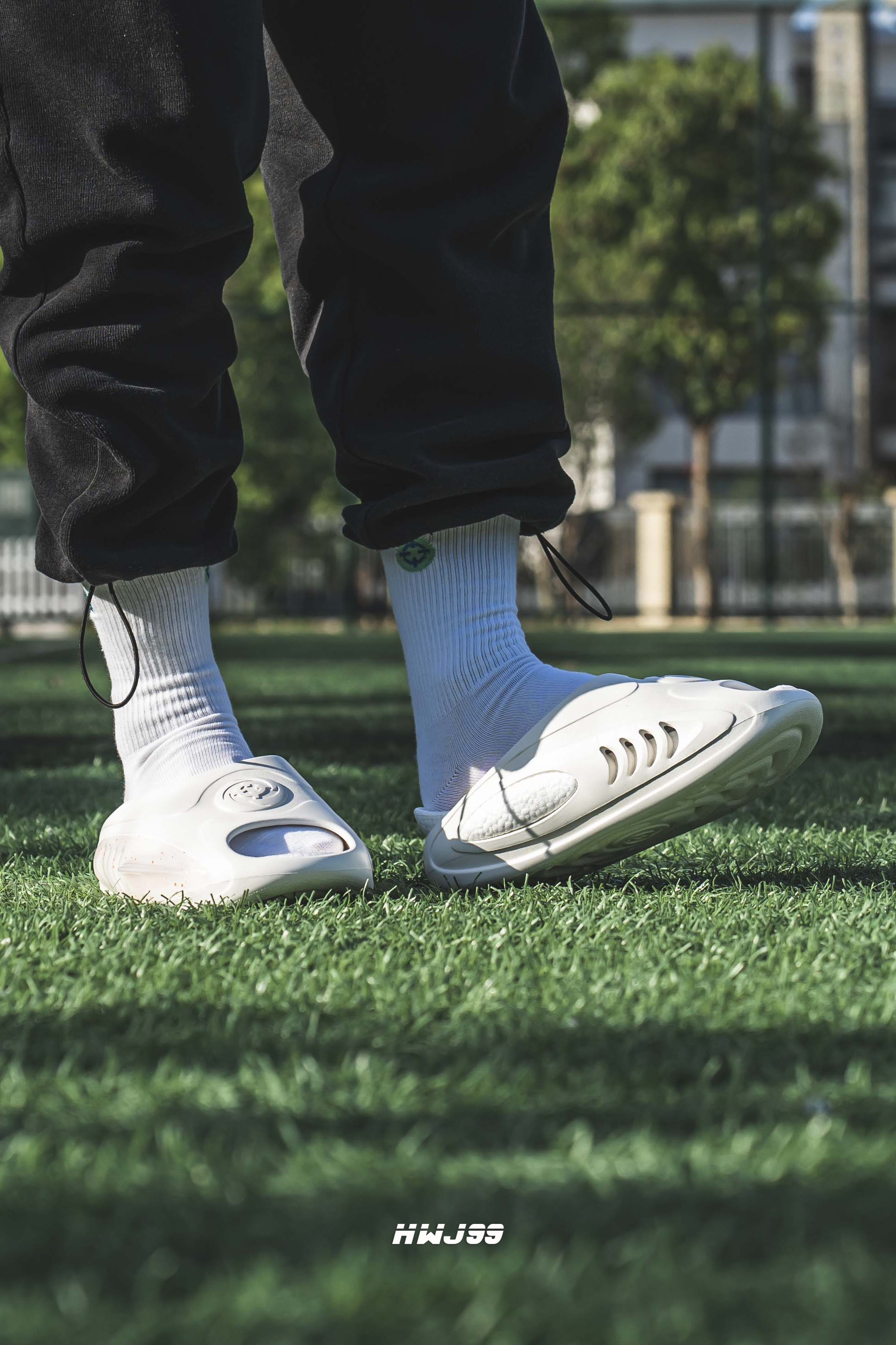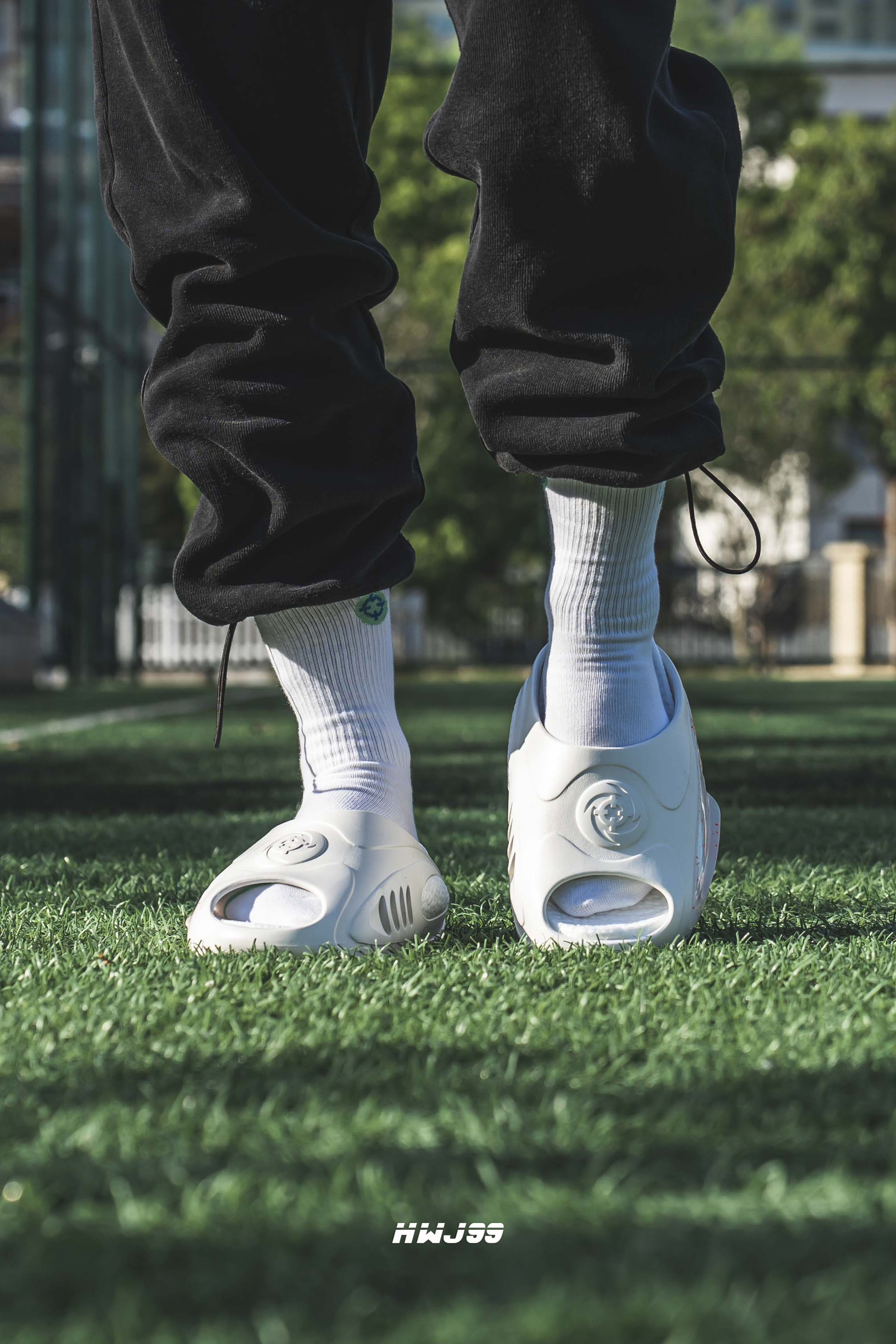 哈喽👋大家好 我是99 去年的鲨鱼拖可以说让人印象深刻 今年准者已经来到第二代鲨鱼拖 上脚的好感确实也是没有让人失望 这款也是采用了可拆卸鞋床 我觉得这次鞋床的厚度有增加 很适合运动后 放松双脚穿拖 当然日常休闲穿搭也是没问题的 因为上脚还是很帅滴~