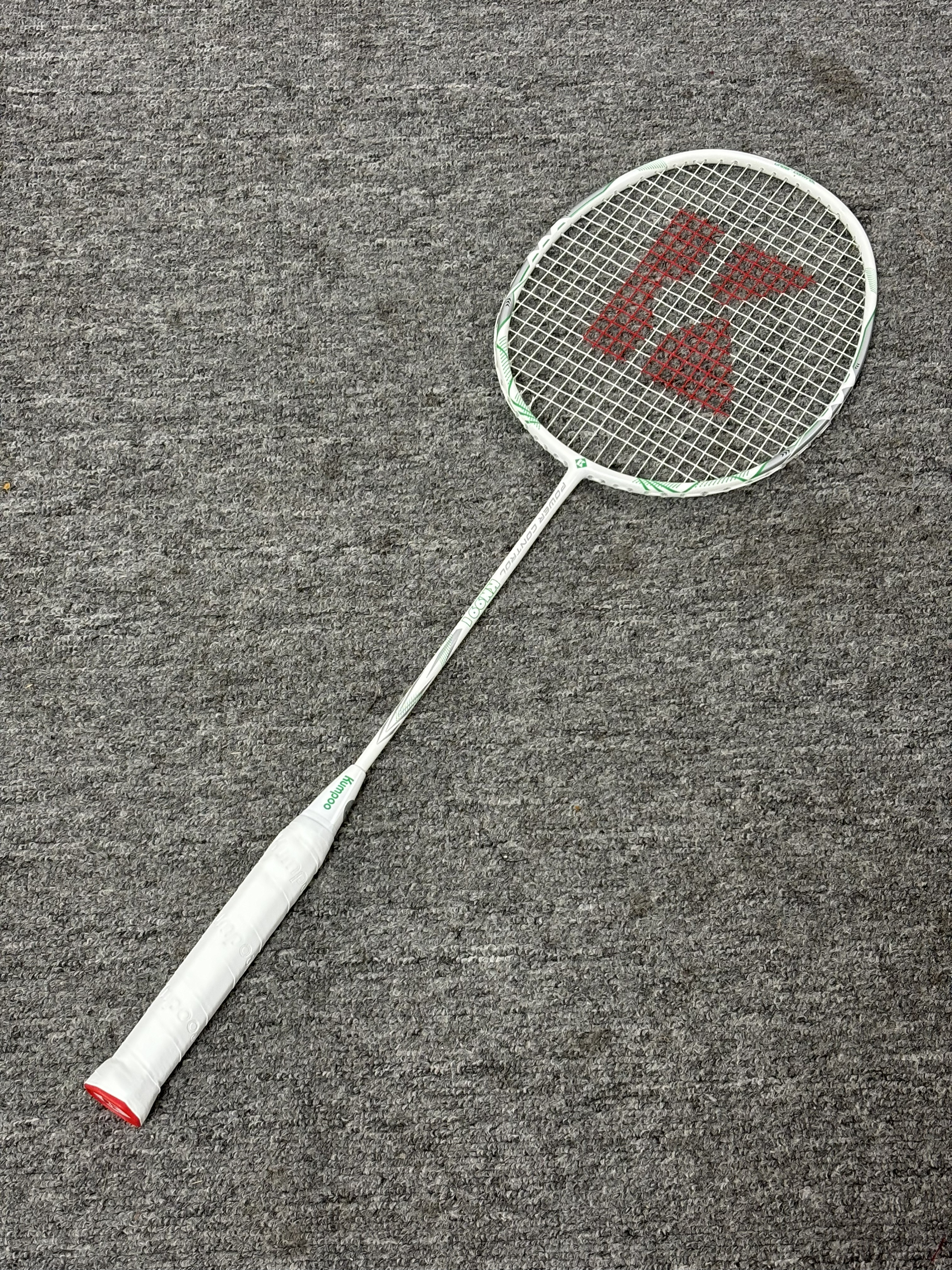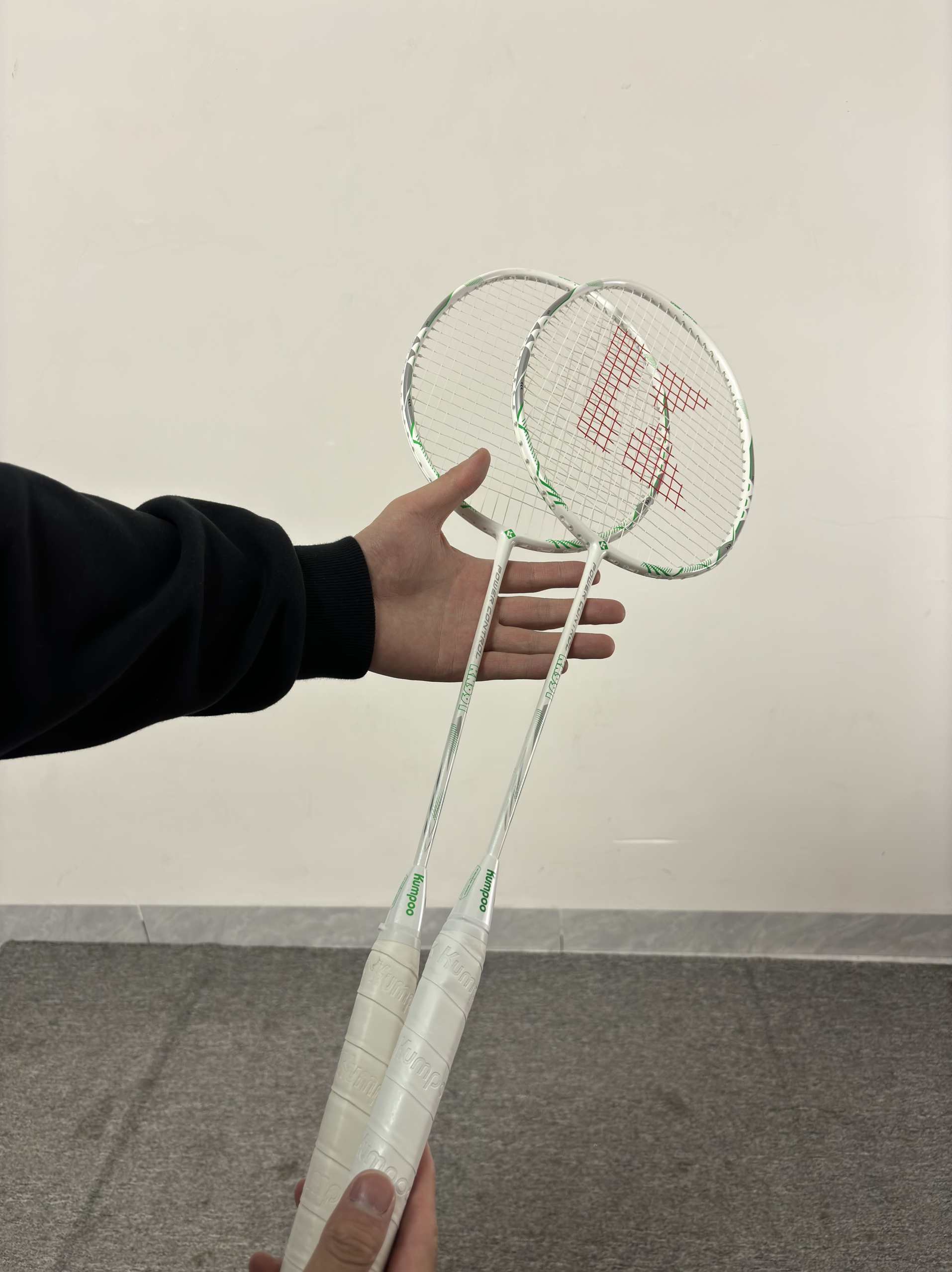 今天给大家推荐的是熏风这款羽毛球拍 它的配色青色加白色感觉挺青春活力, 他的手感相对来说对于入门级选手也是非常实用的 价格也很亲民