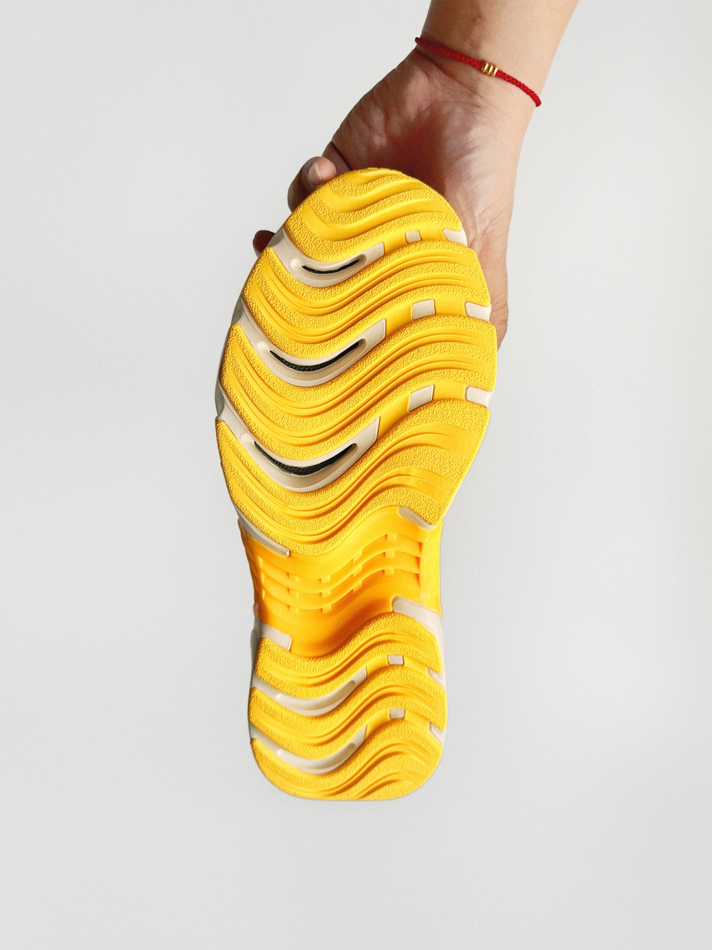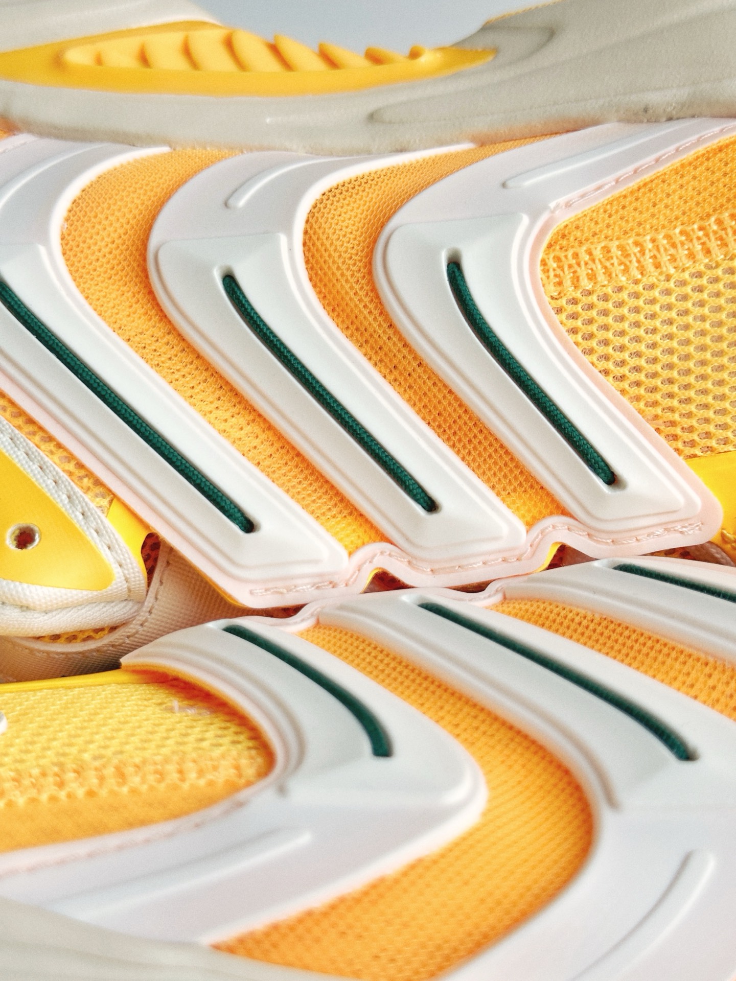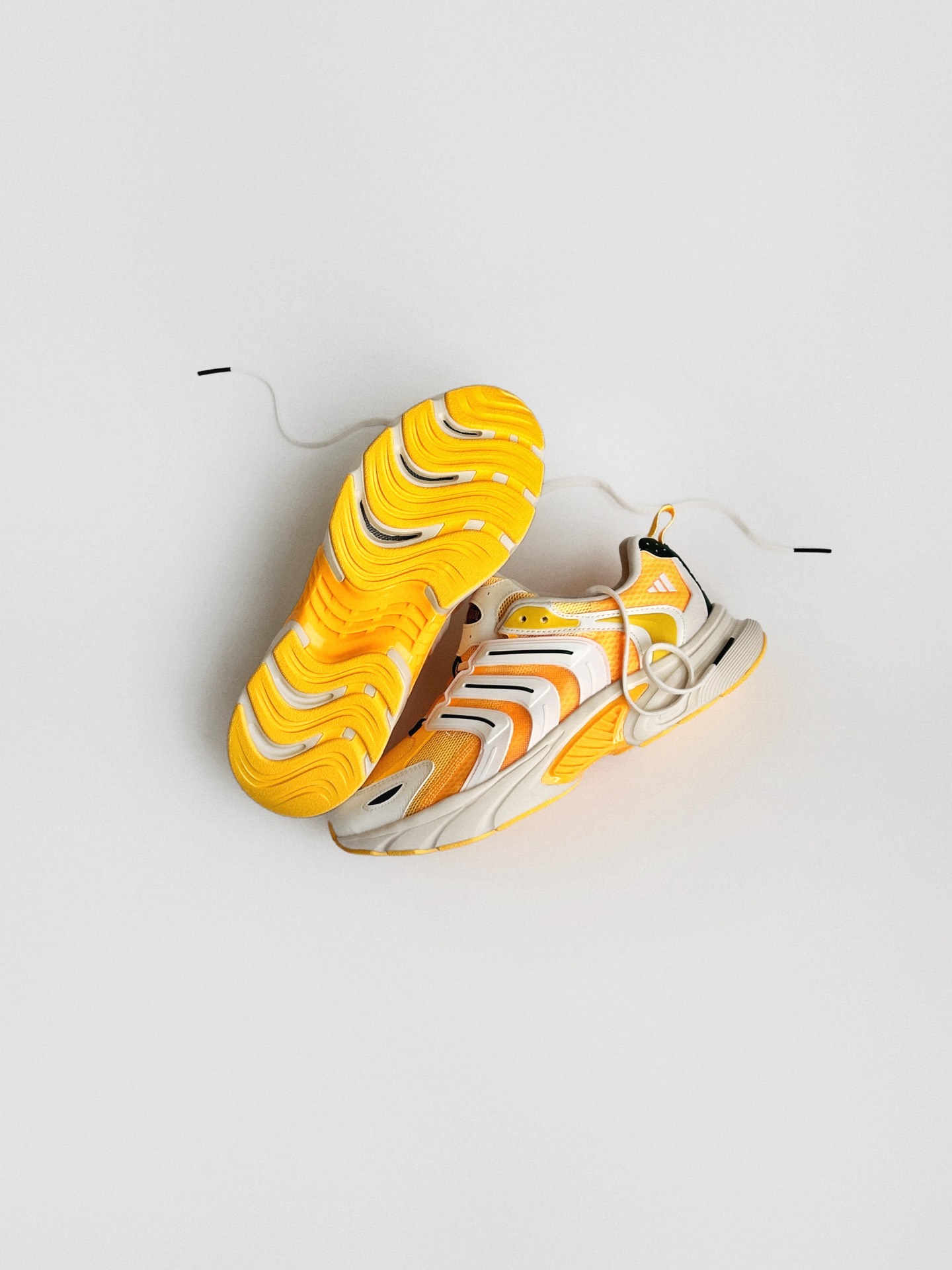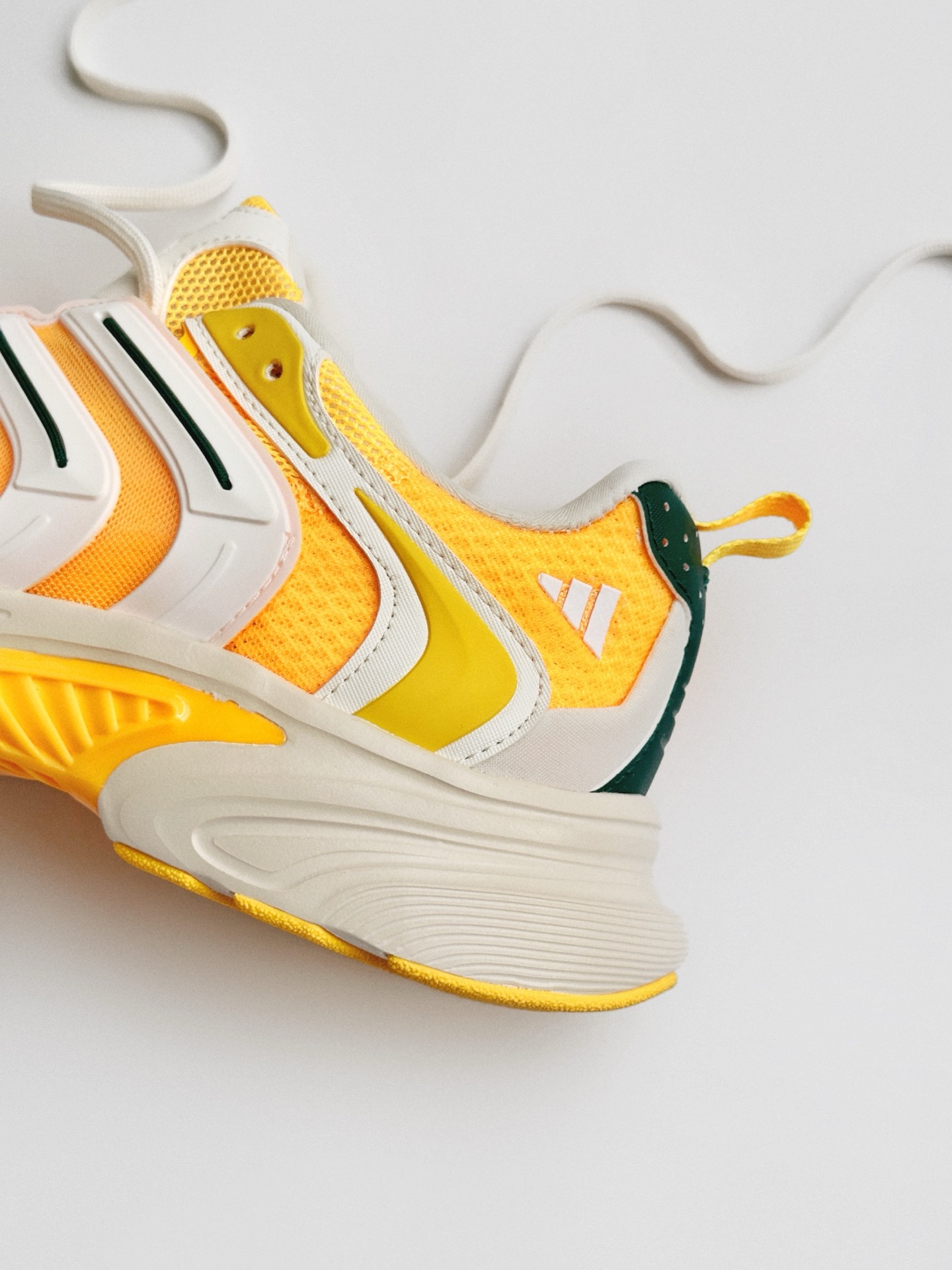 🤳🏼 今天再拍一双 CLIMACOOL 🍃 依然是 24 年新一季清风系列的新鞋型 —— CLIMACOOL VENTANIA 很喜欢这次的配色,橙黄色的渐变过渡加上一点米白和墨绿的点缀,看起来就很阳光很夏天。☀️🌱 两侧的 TPU 有点类似鲨鱼鳃的造型,相当的帅!中间穿过三根线绳,把“三道杠”突出,这设计的很巧。 鞋底的透气开槽和以前的 CLIMACOOL 不太一样,这双只在前掌有三...