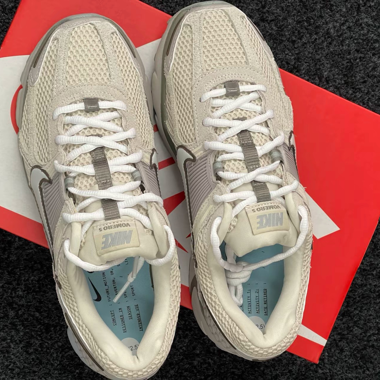 Nike Air Zoom Vomero 5 跑步鞋真的太棒了!当我第一次穿上它们时,就能感受到它的轻盈和舒适。 米灰色的设计非常时尚,而且很容易搭配衣服。
