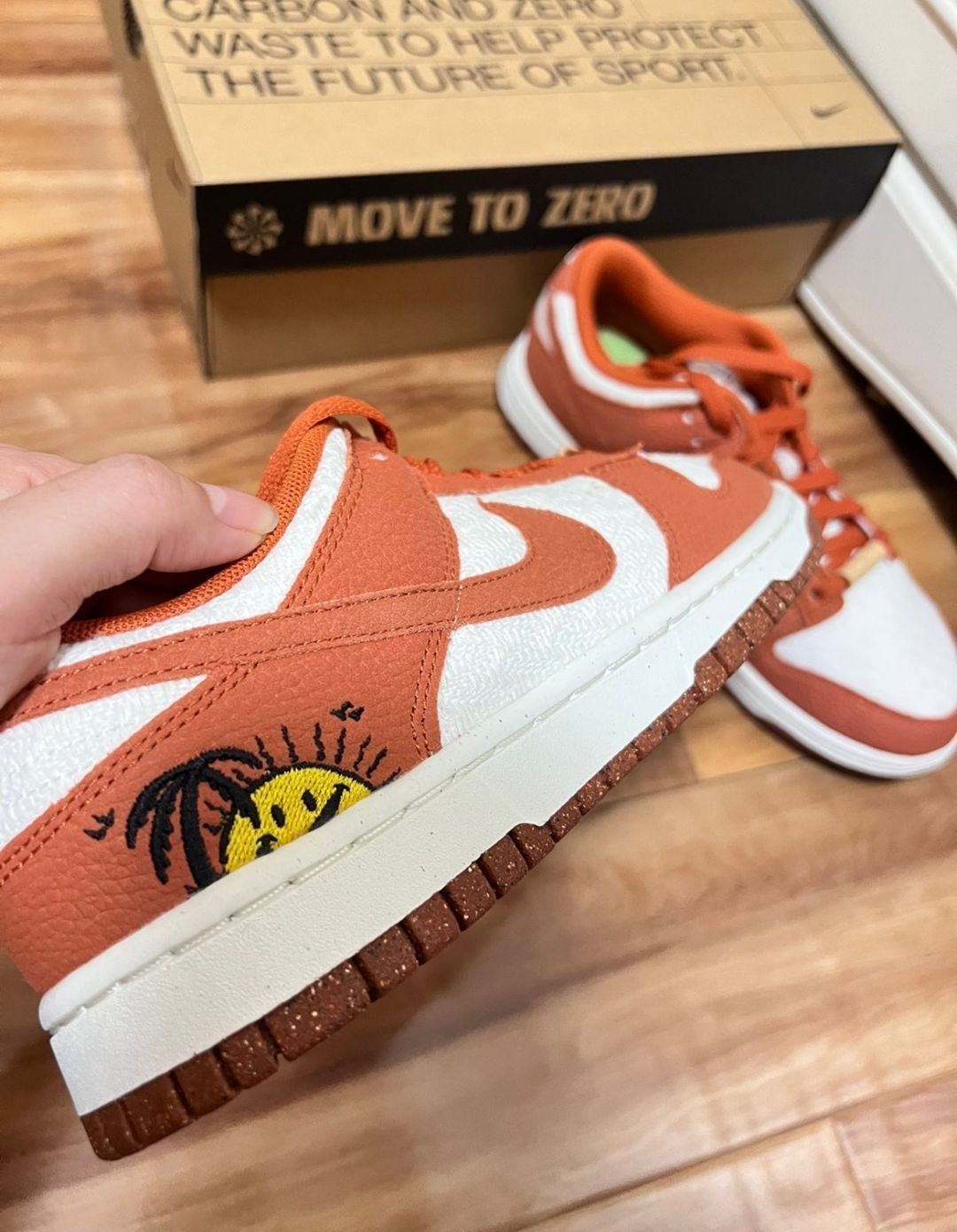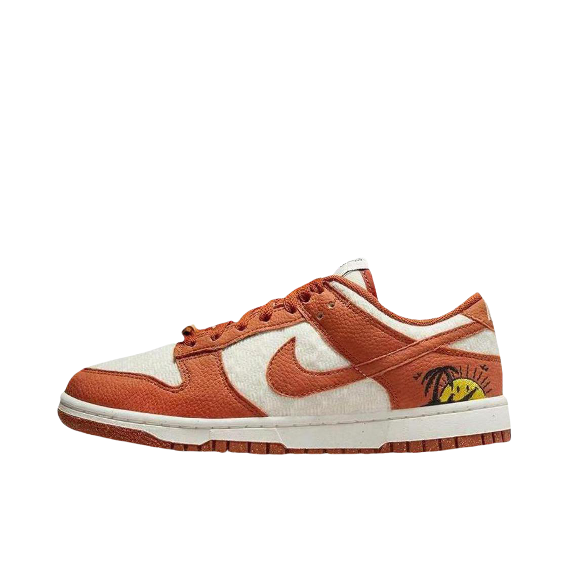 这双可回收材质的Nike Dunk Low Retro SE“Sun Club”配色以落日为灵感呈现夏日气息。鞋面采用白、橙两种色彩打造,充满活力的颜色相结合,并辅以白色织物及荔枝纹皮革打造,整体鞋款质感十足。鞋后跟处还有落日笑脸设计,活力满满。上脚非常好看!非常适合夏天的日常搭配!