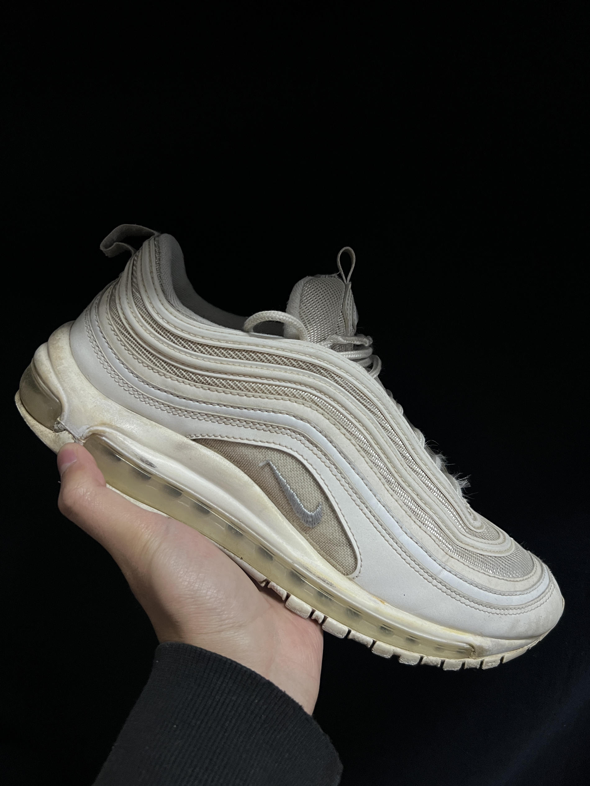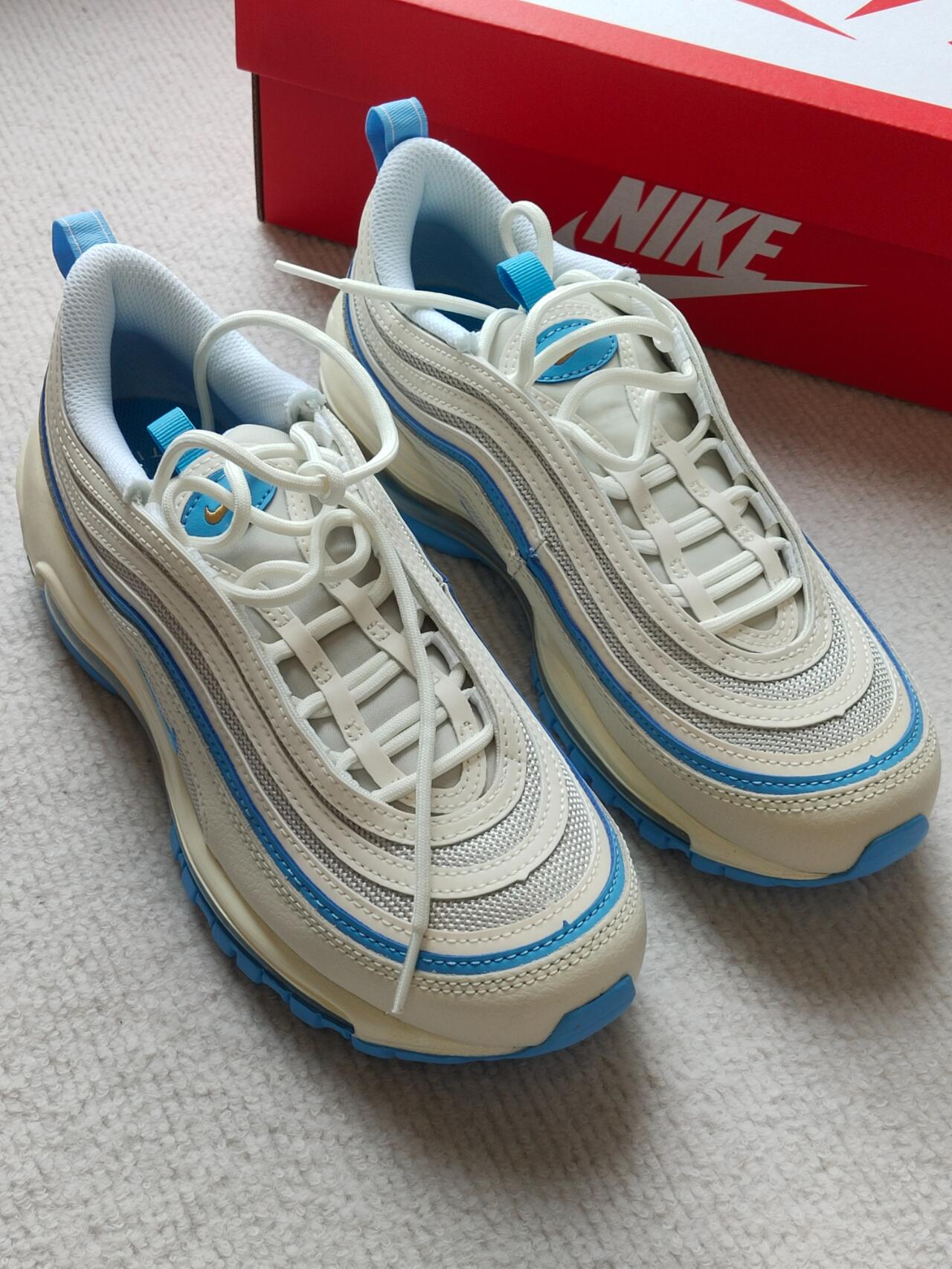 妈耶!这个鞋子好春天呐!!! 最近刚入手了Nike Air Max 97 妈耶!貌美如花说的就是她吧!又低调又漂亮~ 而且!!淡白真的超百搭!! 没有女孩子 能抵抗住这个配色吧,真的一眼爱住啦~~ 因为是全脚掌气垫,所以刚穿上会有点硬,需要磨合磨合哦~属于越穿越好穿的那种~ 这个子弹头尊滴好美好美好春天哦~