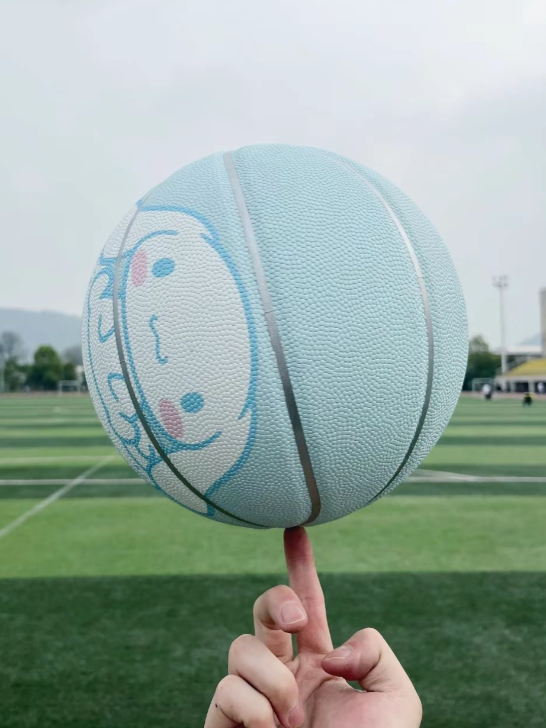 哈喽,兄弟们今天再次抓住了一只银耳朵,他的整体配色是浅蓝色,有很可爱的图案,各位是童心满满这种篮球我真的有点舍不得放在家里好好摆放吧