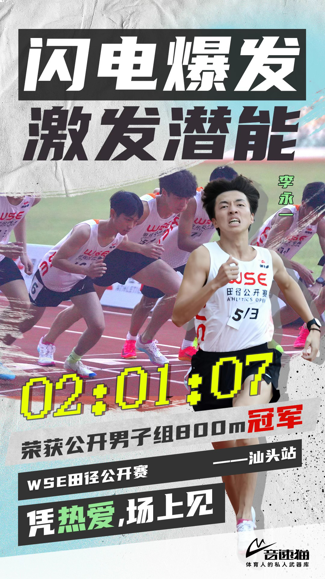 音速猫传来捷报:wse田径公开赛汕头站——选手脚踏爆发S1夺得桂冠,男子100m/800m双冠加冕!
