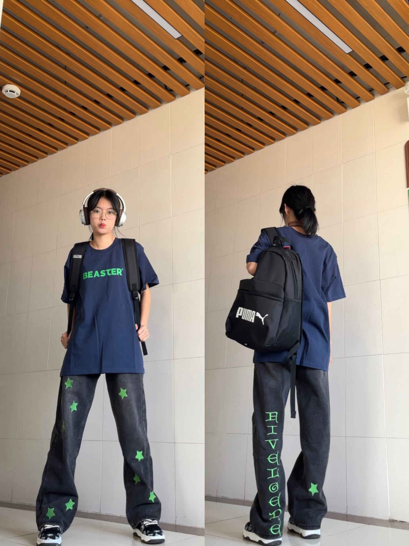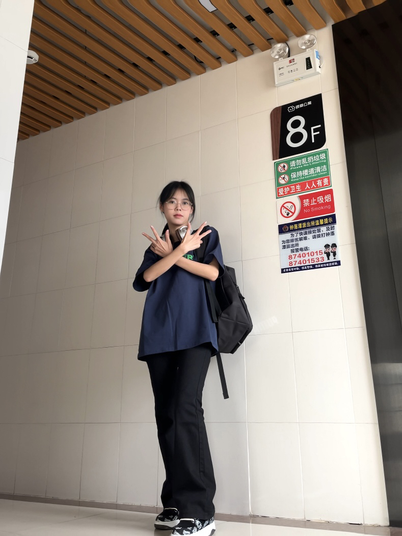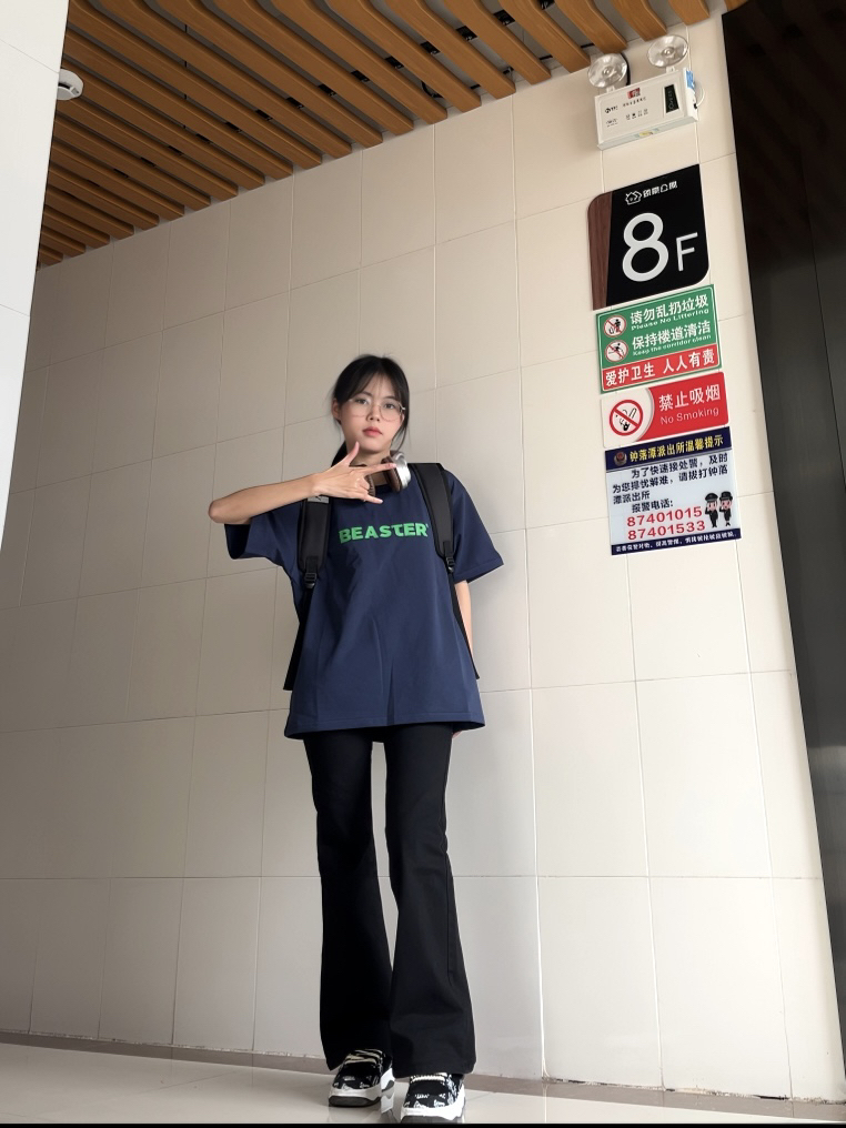 好看我只说一遍! 有种挖到宝的感觉谁懂 蓝色T恤👕百搭又好看 穿上去是修身的效果 搭配黑色裤子 轻松搞定