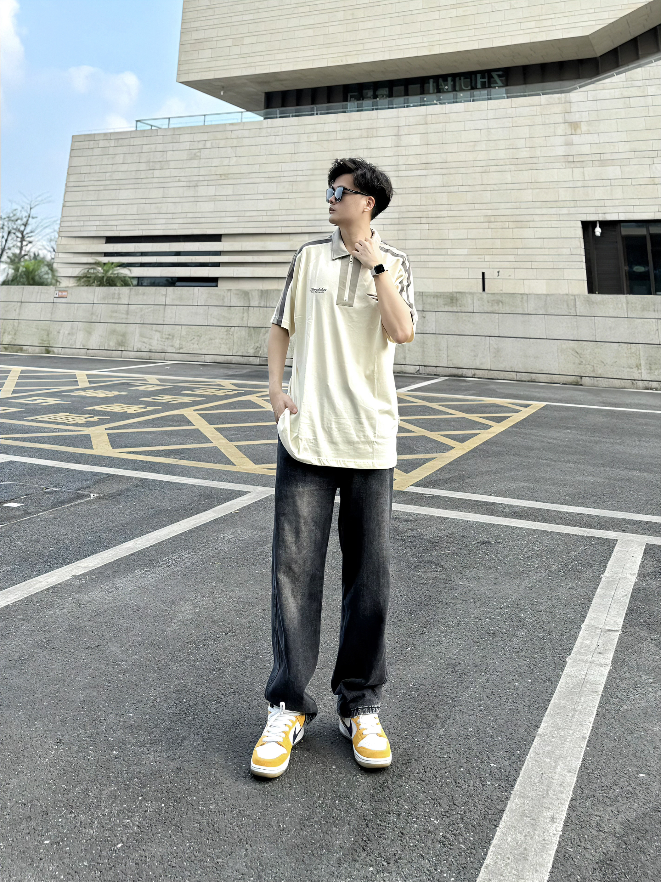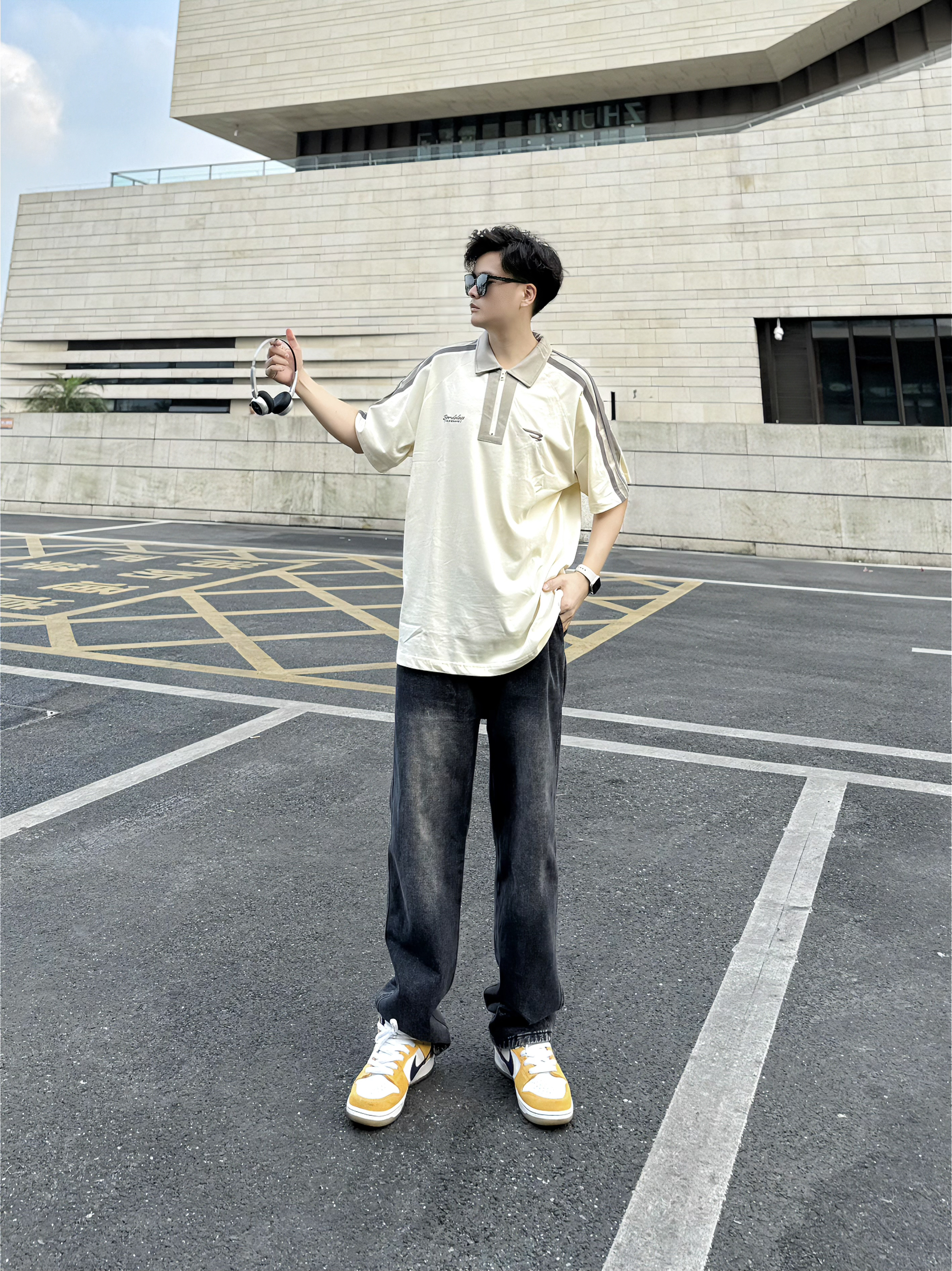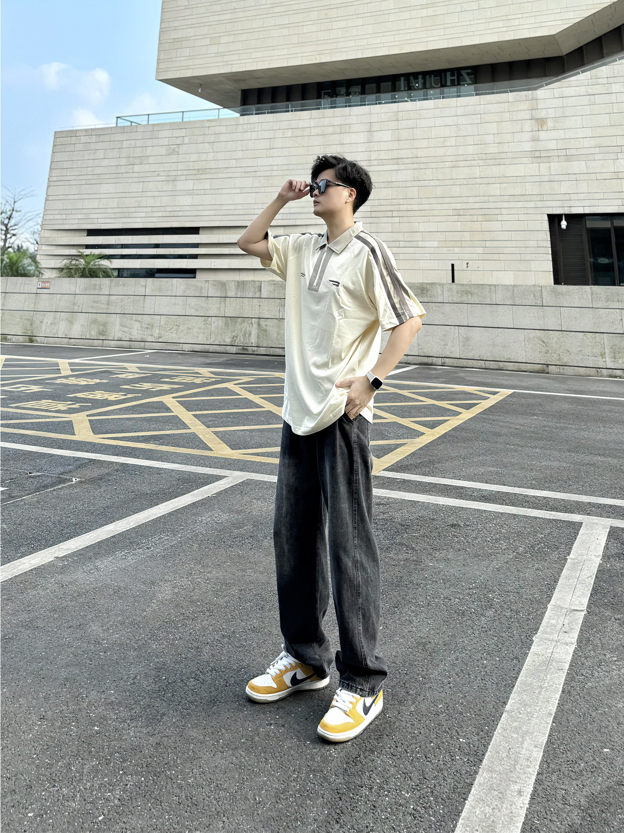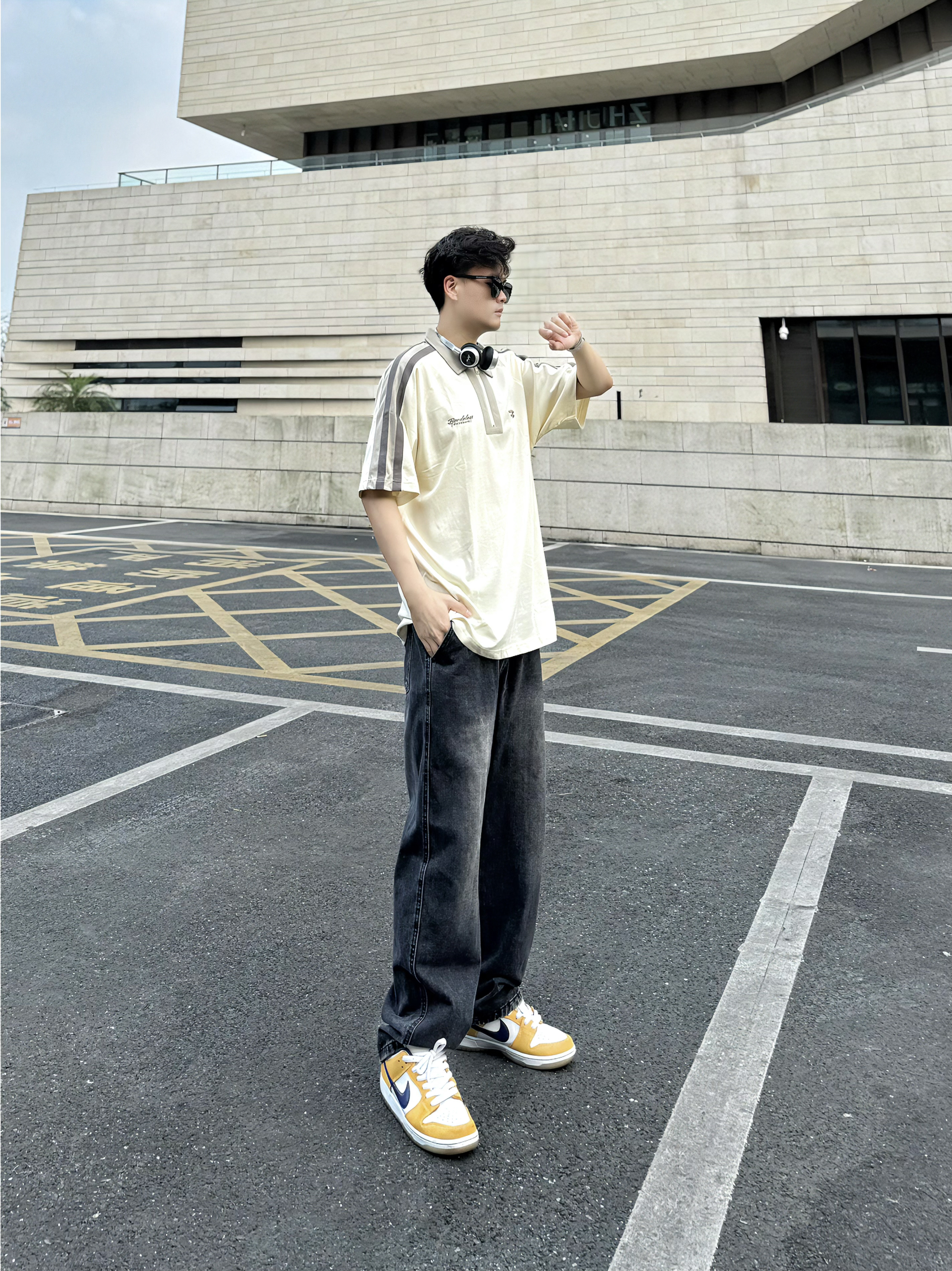 哈喽哈喽呀,我是阿b仔 Today陪女友逛街吃饭看电影 那简单分享一下我的约会穿搭ootd 👕上身先穿一件米杏色polo衫 撞色外观颜值很高,穿起来潮流帅气 oversize穿着舒服,质感也还不错很nice 👖下身搭了一条黑色牛仔裤 搭我的polo衫可还行?休闲feel我爱住了 👟鞋子穿了一双黄色dunk 米杏+黑+黄,整体穿搭亮色吸睛挺好看的咧 - 尺码参考丨180cm/72kg 上身XL