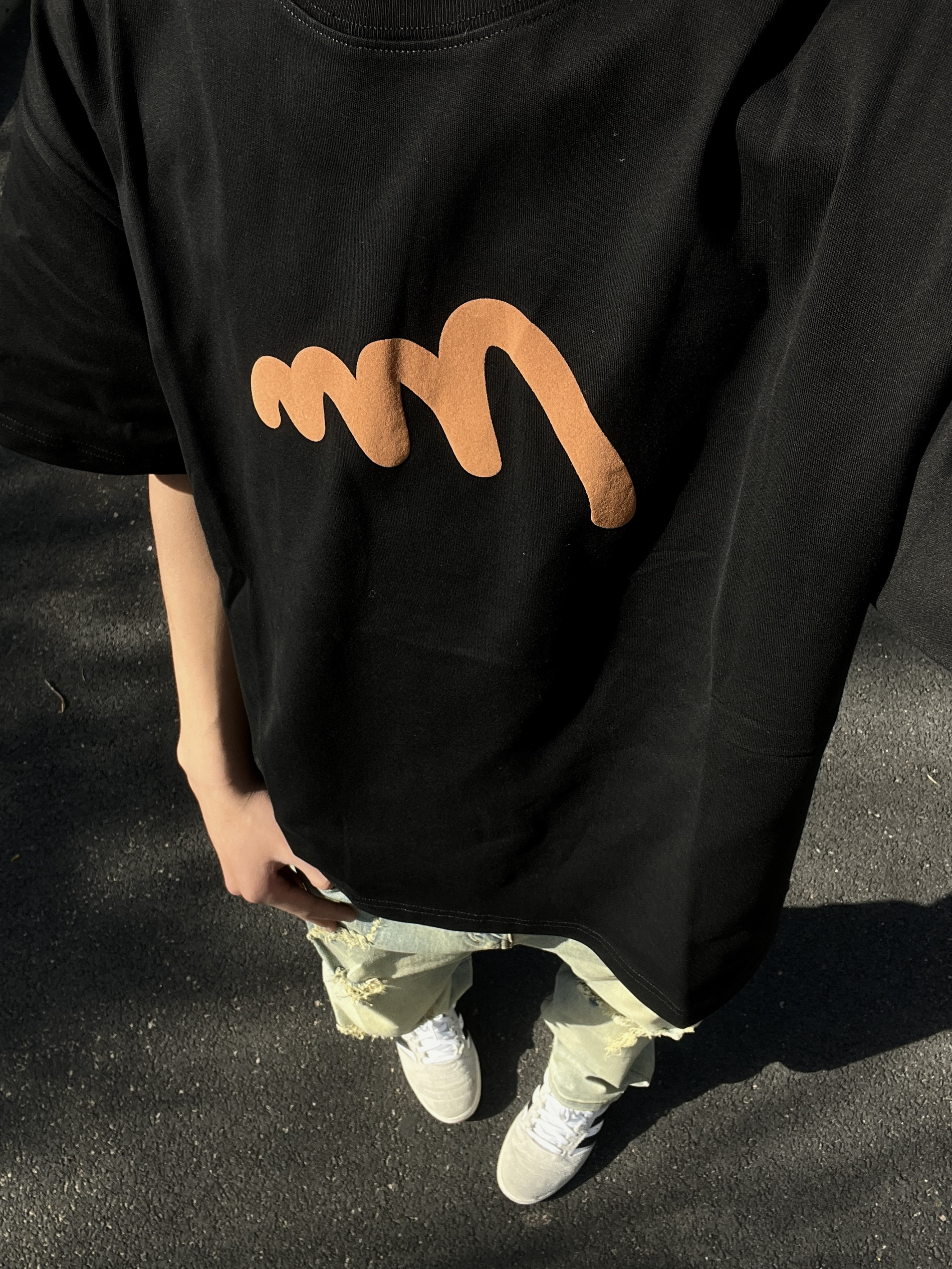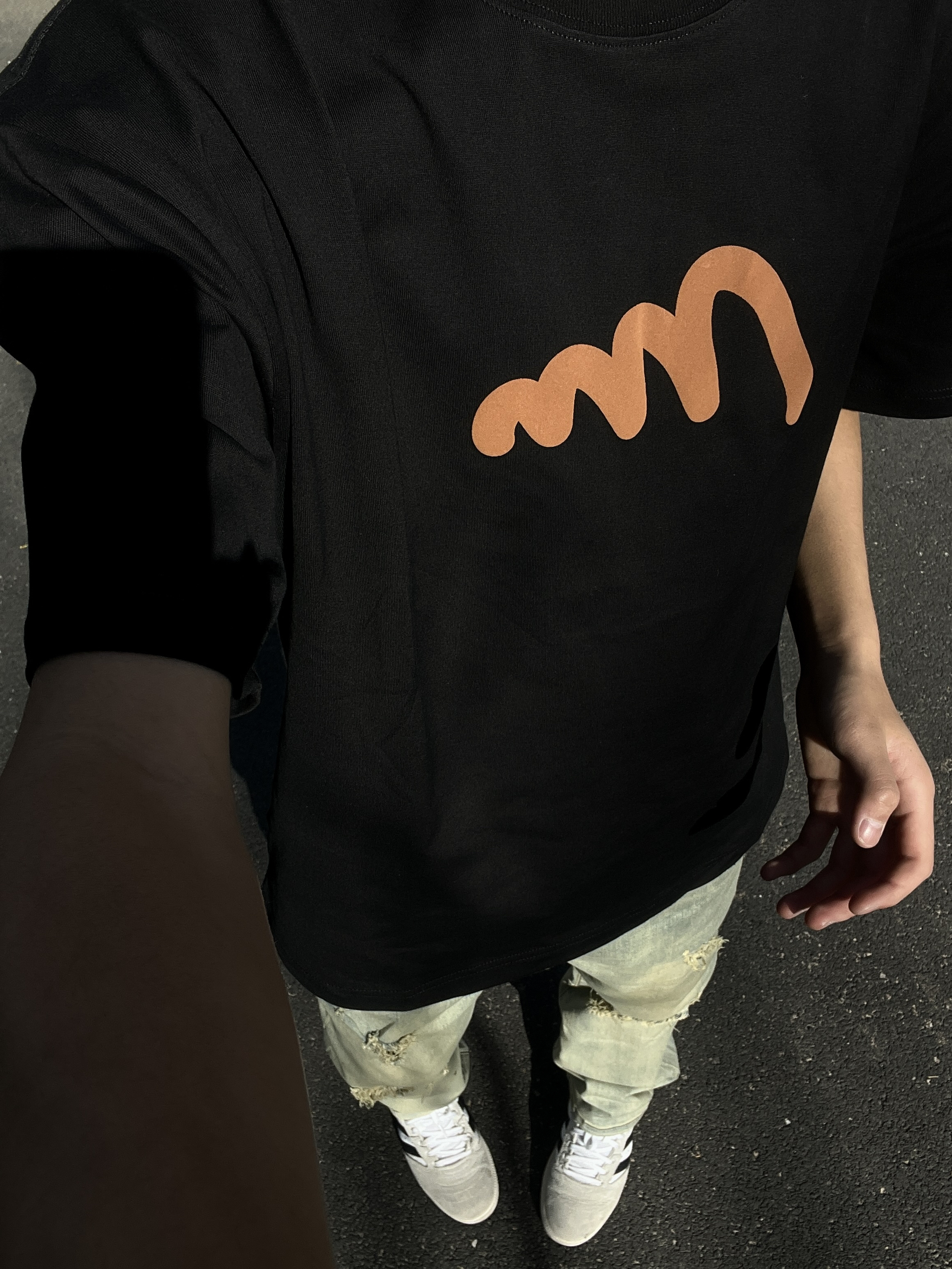 一件橙色印花短袖搭配一条破洞牛仔裤👖真的很简易很好看!在搭配这双adidsa板鞋真的很不错啊!