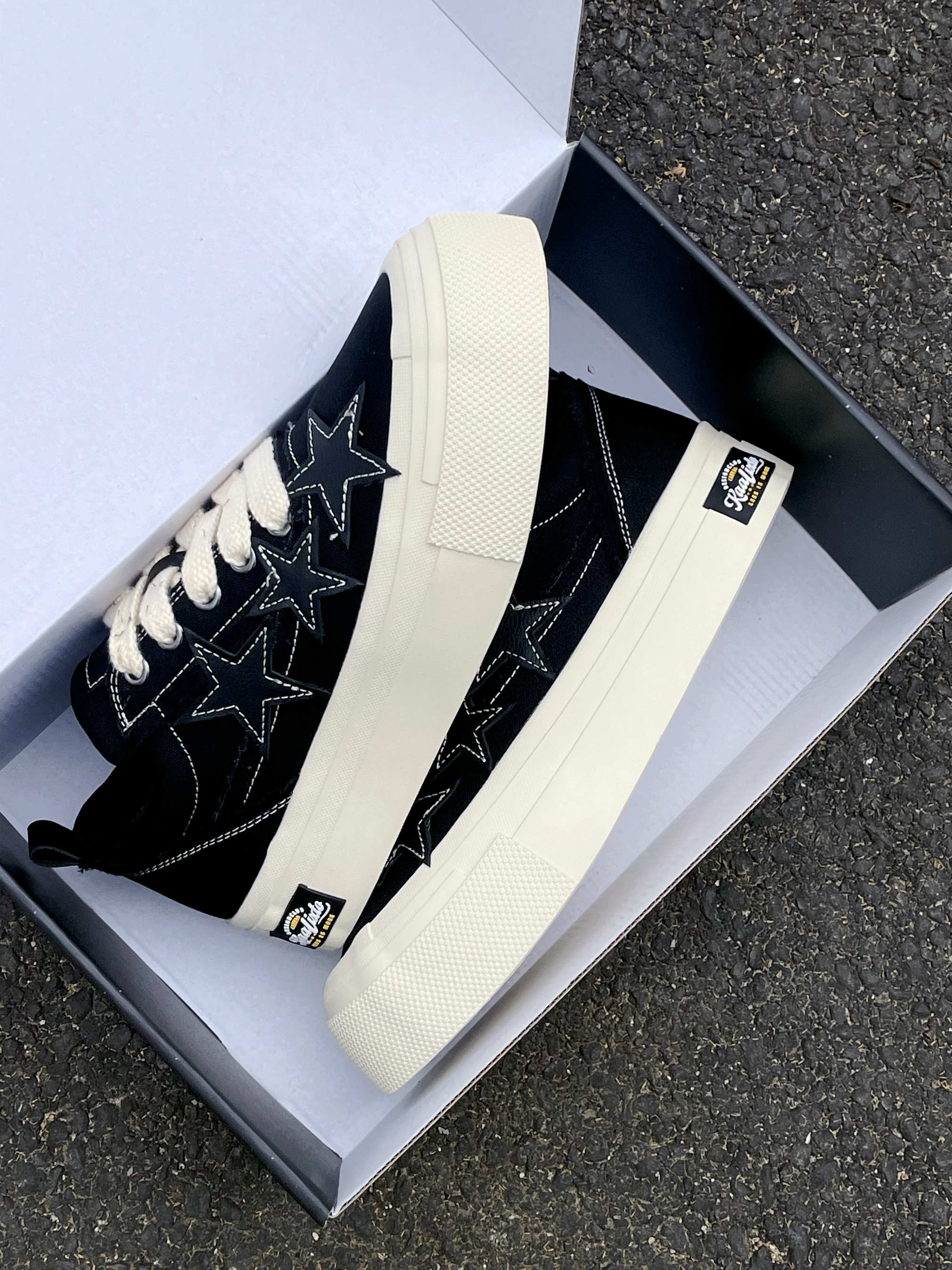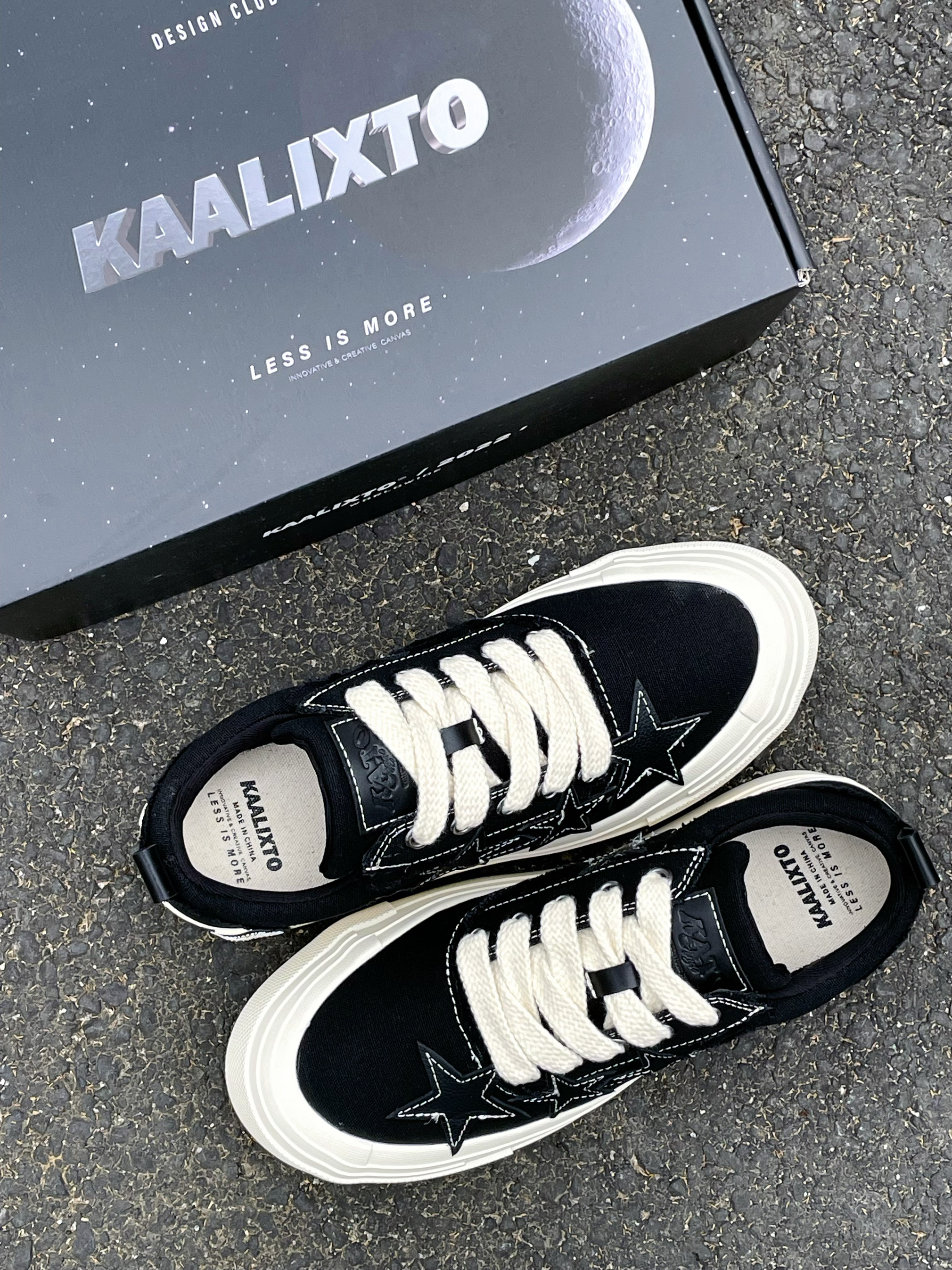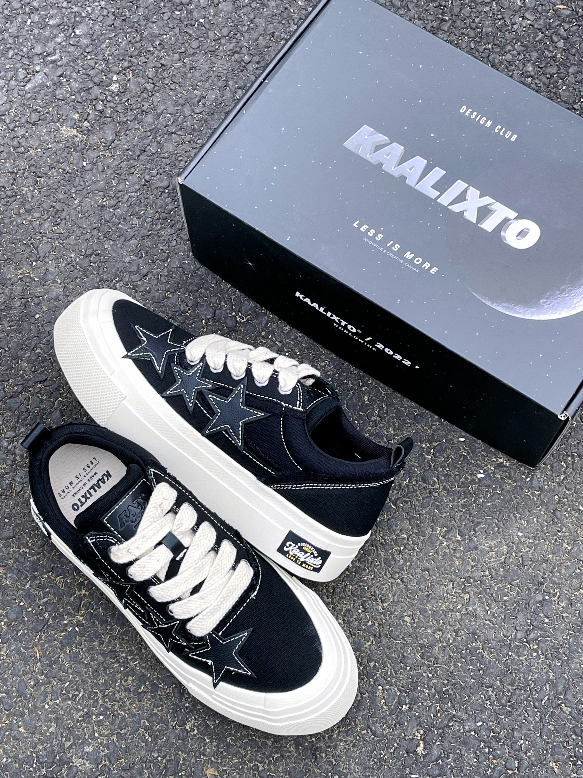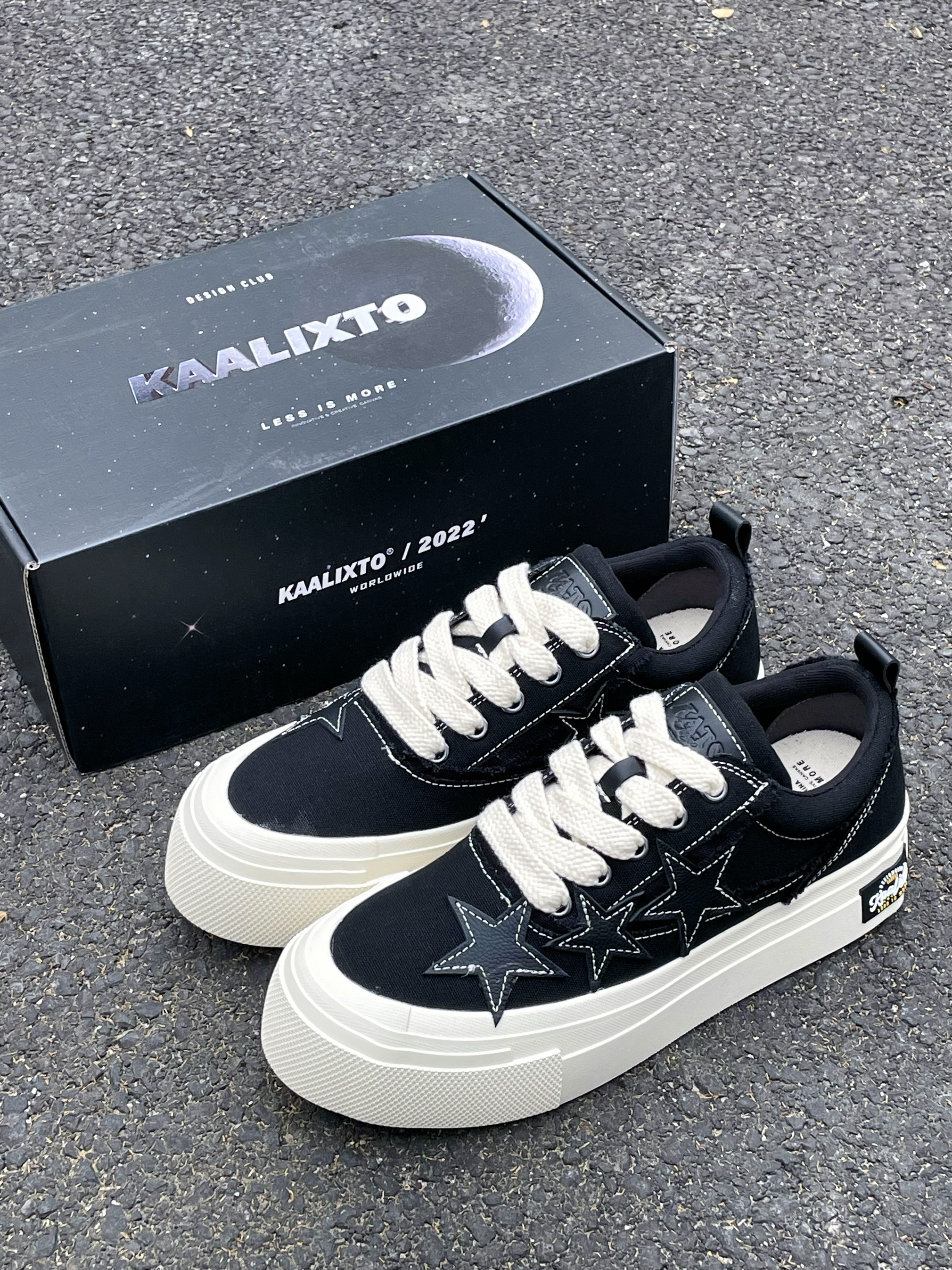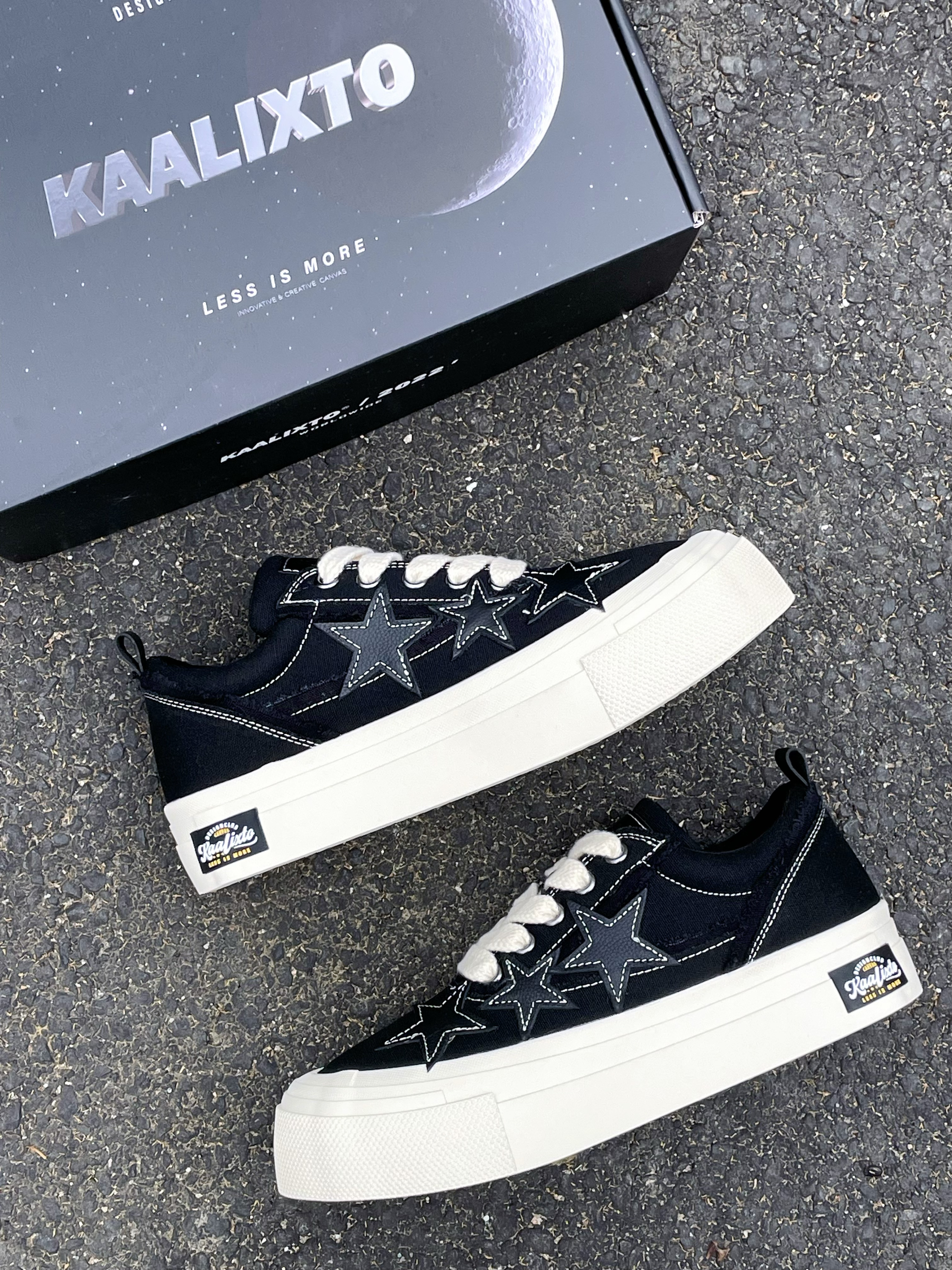 今天给大家分享这双 KAALIXTO S.L.U.lows『黑白』帆布鞋👟 鞋款由的黑色和白色为主色调 鞋面选用了帆布材质 鞋身外侧的3️⃣颗『星星⭐️』颇为亮眼吸睛 中底5️⃣公分的增高可以修饰腿型 整体来说这是一双兼具颜值/设计的帆布鞋👟 经典百搭 时尚潮流 适合日常休闲通勤 ⚠️尺码方面建议按尺码表内长选择 目前2️⃣0️⃣0️⃣➕的价格还是蛮有性价比的 喜欢的小伙伴们可以考虑入手哦‼️