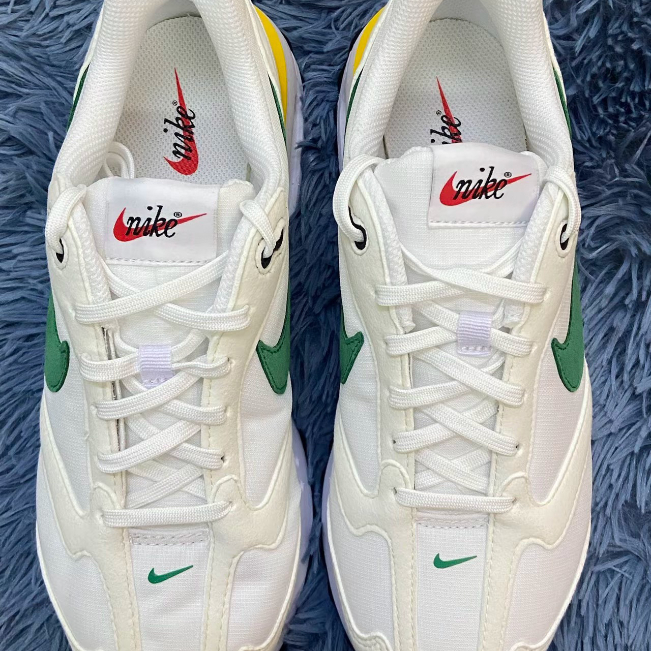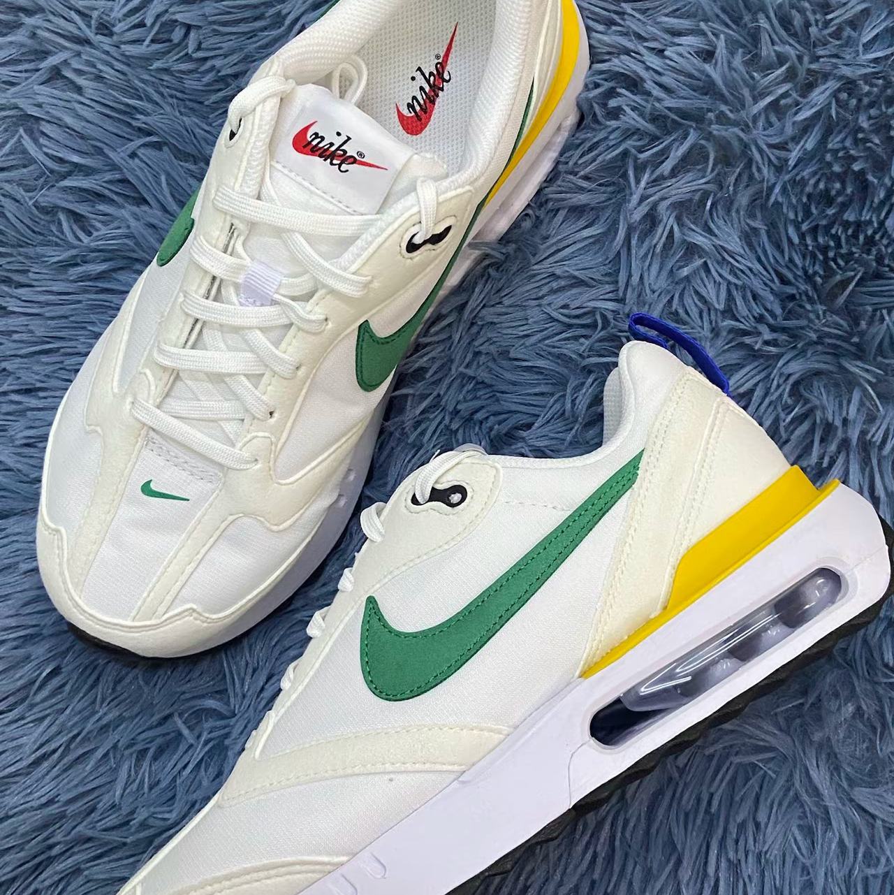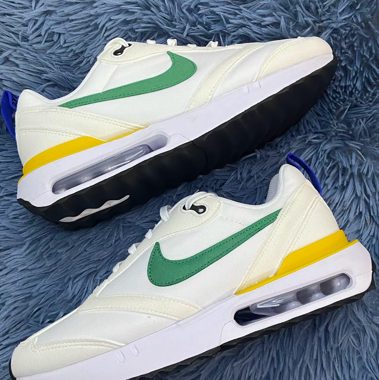 休闲鞋:Nike Air Max Dawn 白黄绿配色这双气垫鞋Max Dawn脚感还是挺舒适的中底的泡棉很软不像其他的Max系列偏硬白黄绿这个配色通勤穿也是比较百搭的大底方面不是很防滑需要注意瓷砖地人尺码方面正常选择即🉑