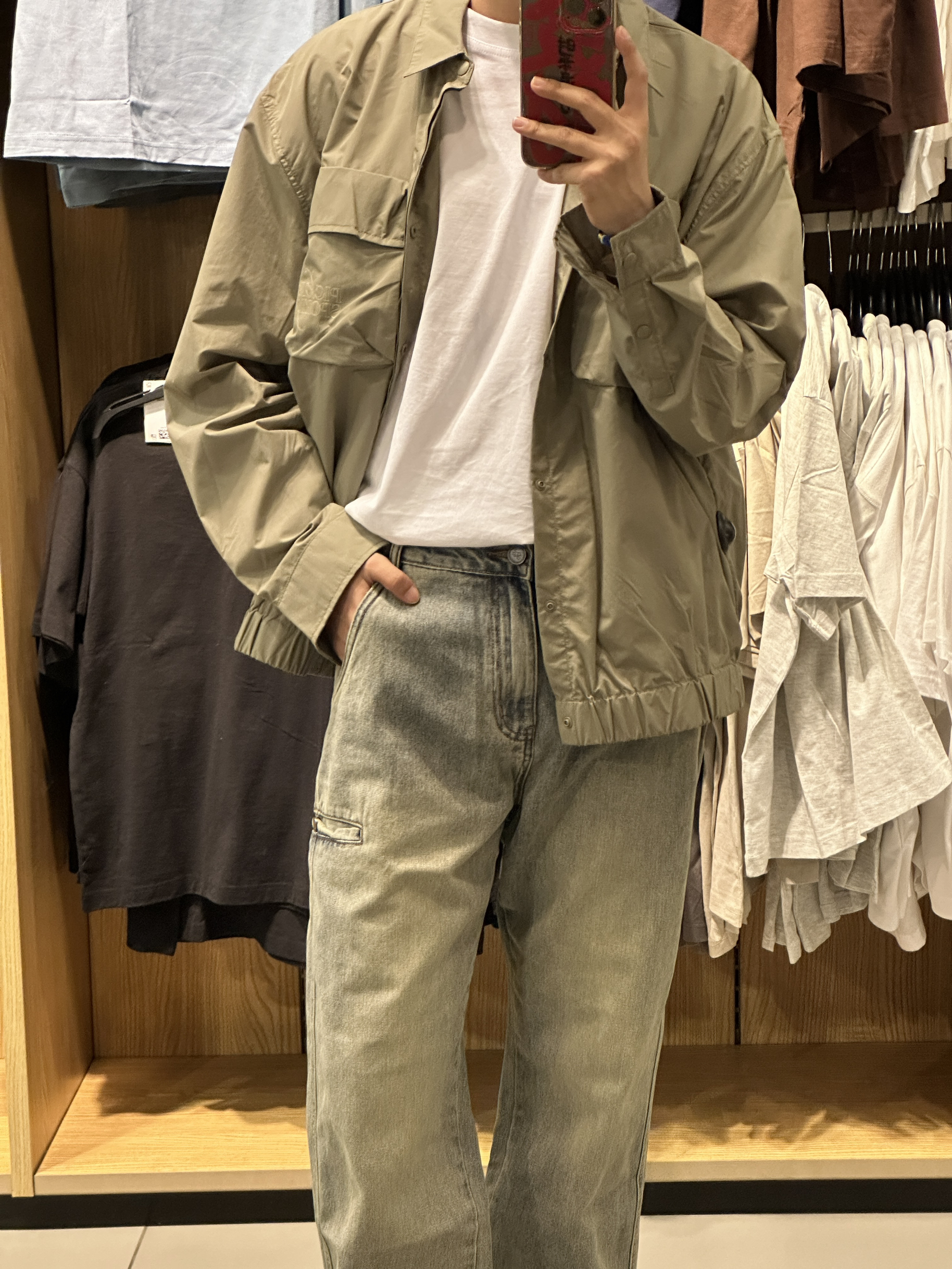 近期超爱的一条直筒牛仔裤 版型超正 巨修饰身形👍 材质也很舒适 软硬适中 再搭配一件尼龙外套式衬衫 日常穿搭✅ 上衣👕HM 裤子👖KGK