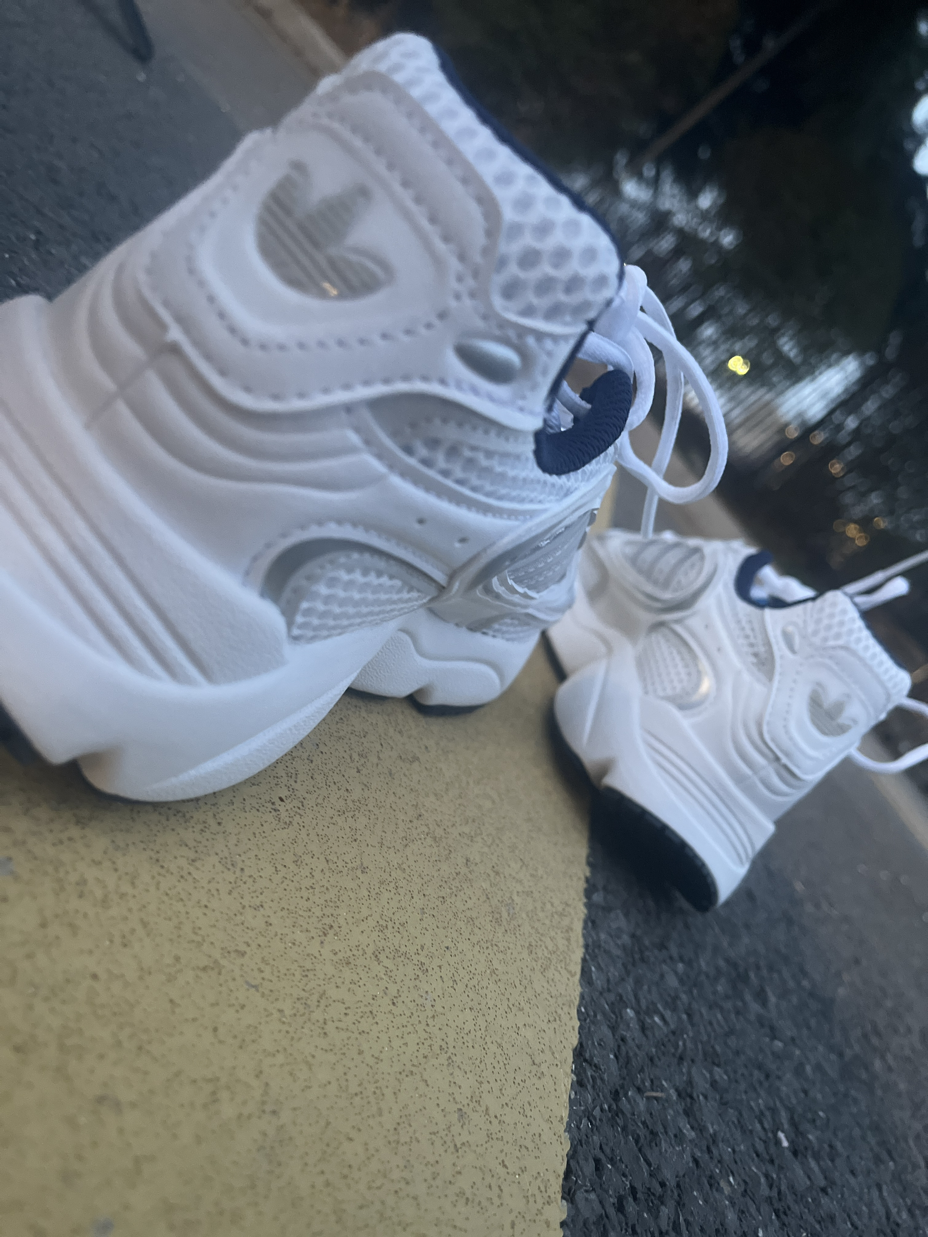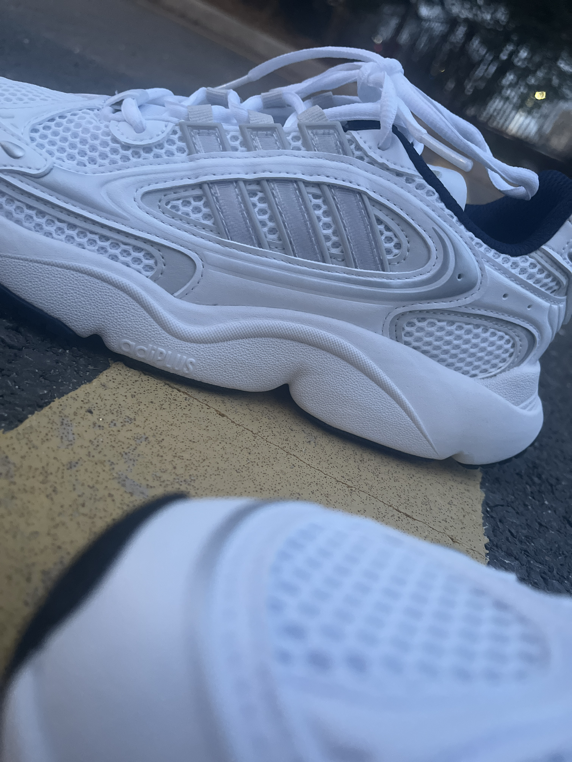 这款阿迪三叶草☘️老爹鞋我是真的喜欢,白灰配色,通勤百搭。 走路舒服,这一周基本上班户外基本都穿它‼️ 大牌价格合适,带有网眼的鞋面春天穿着不闷脚,三道杠的logo有一定的支撑。外底也不错,挺耐磨的,一周下来没有明显磨损,是我的梦中情鞋👟啦‼️‼️‼️