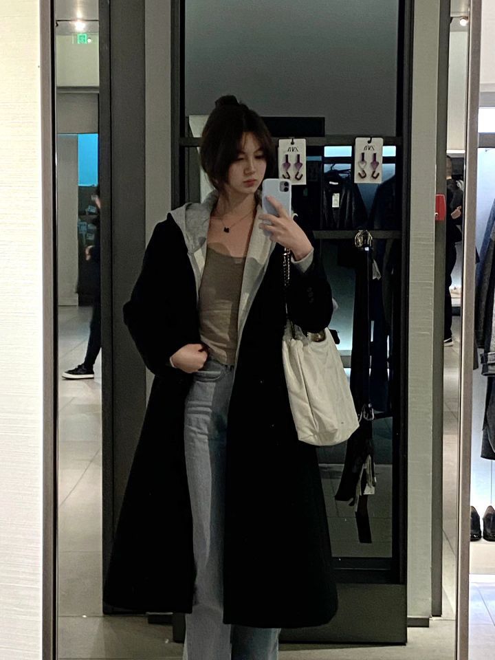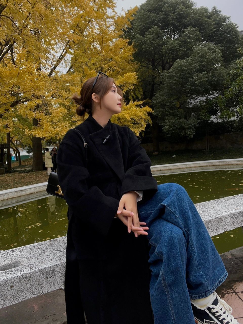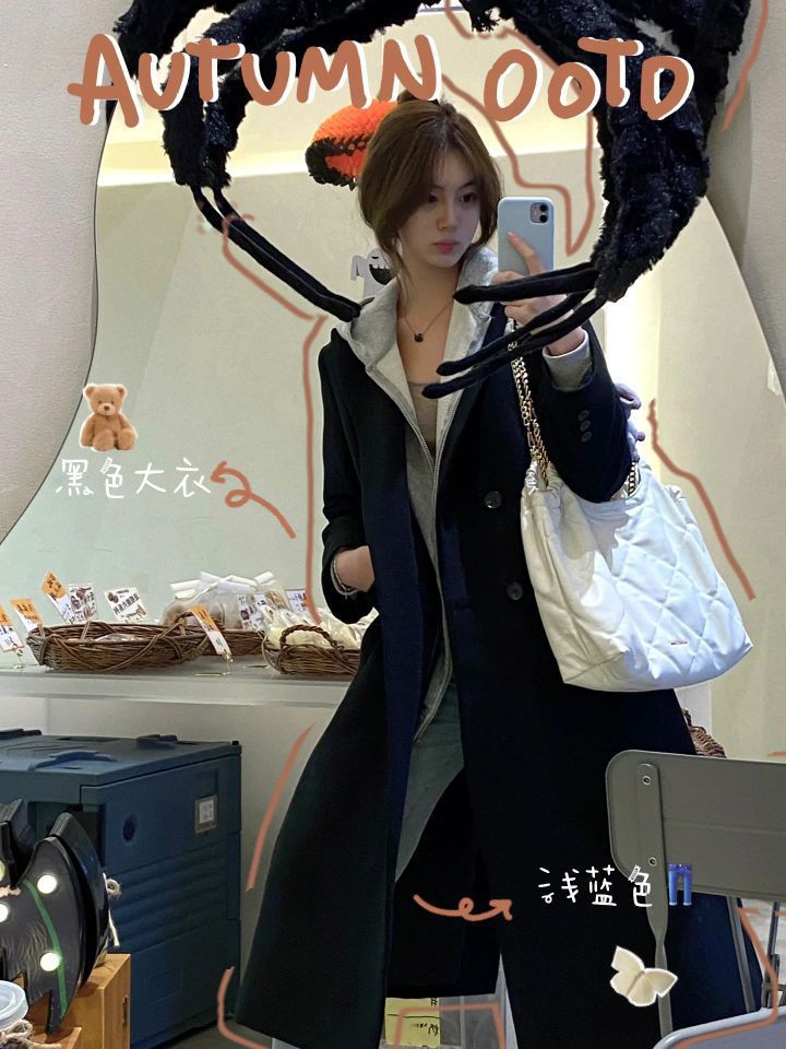 ootd:大衣配灰色卫衣 ➕浅色牛仔裤 万圣节🎃当早八素颜累死鬼