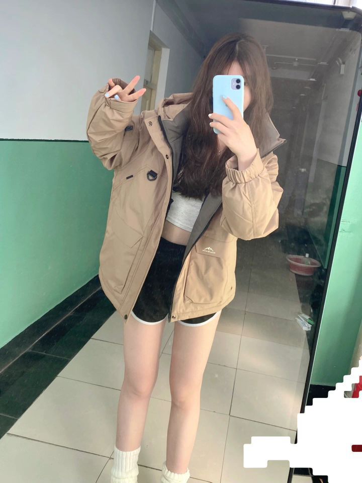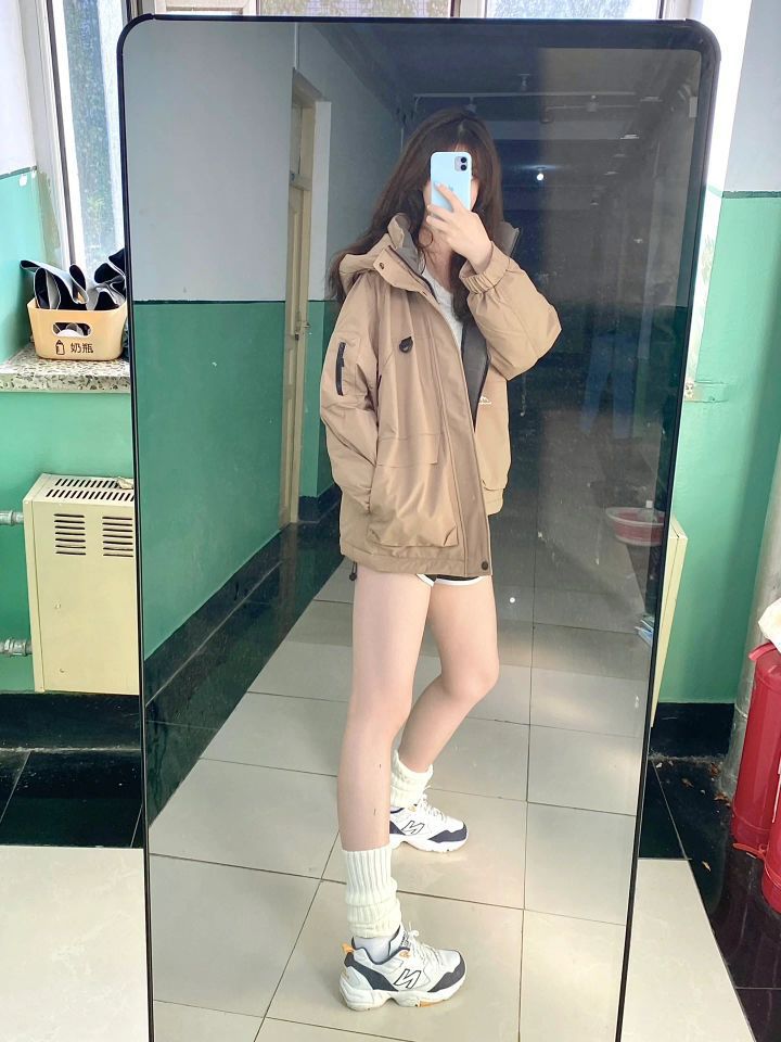 棕色真的好显白呀,这件棕色的工装棉服比黑色看起来更特别一些,而且还和黑色一样耐脏,已经准备好了过冬棉服,这个冬天也不用怕啦!很厚实呢