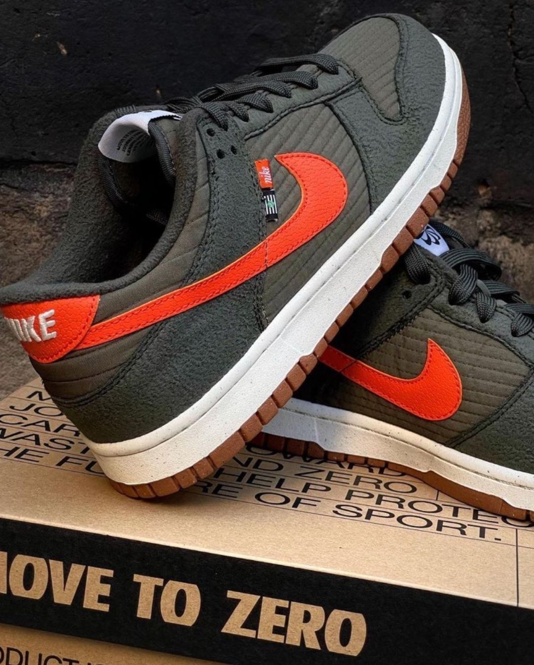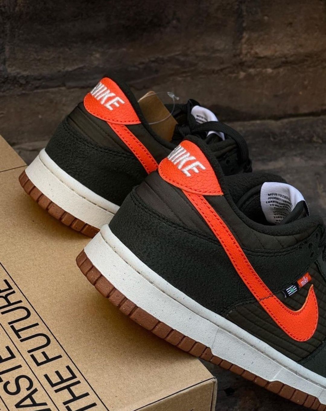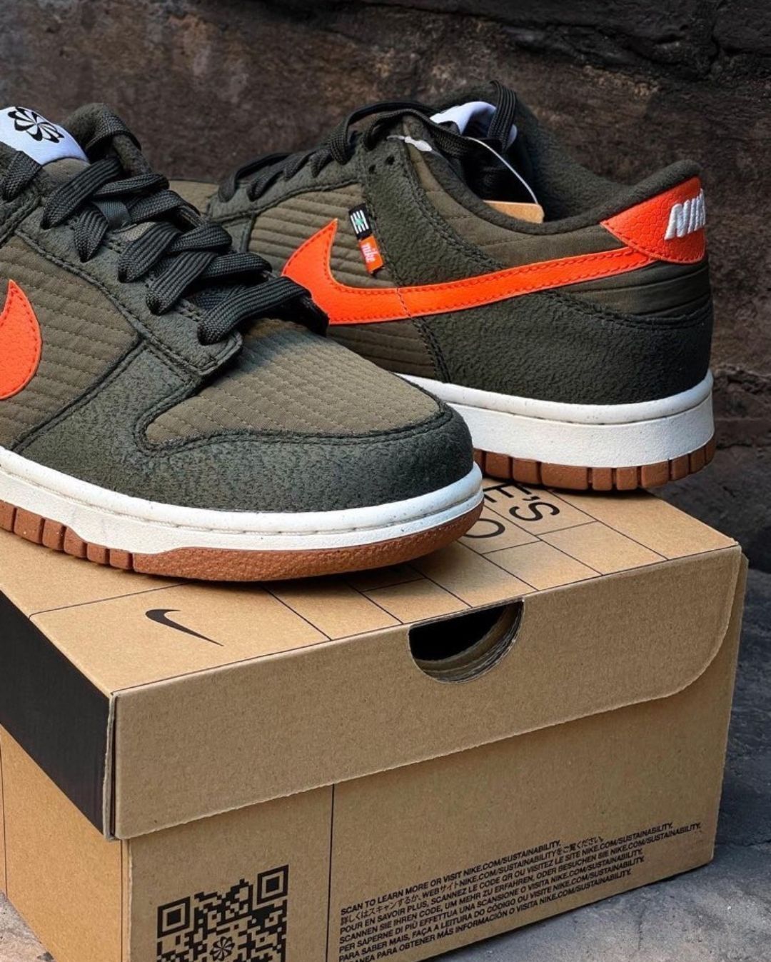 基于经典鞋款Dunk进行设计,使用了全新环保材料制作鞋面,透气性和耐穿性都还不错,军绿色和鲜亮橙都撞色效果杠杠的,开春来双低帮环保Dunk踏青去~
