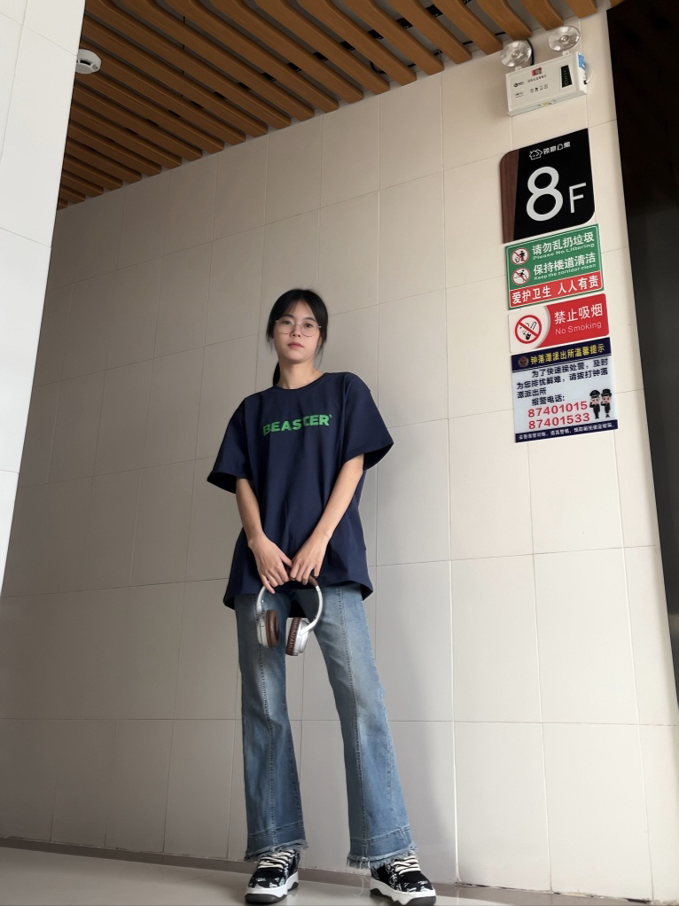一起来看下今天的穿搭吧~ 👕我贼喜欢的一件潮T! 这个颜色太爱啦! 上身穿着也很舒服,拍照出片! 👖修身百搭!对我来说刚好