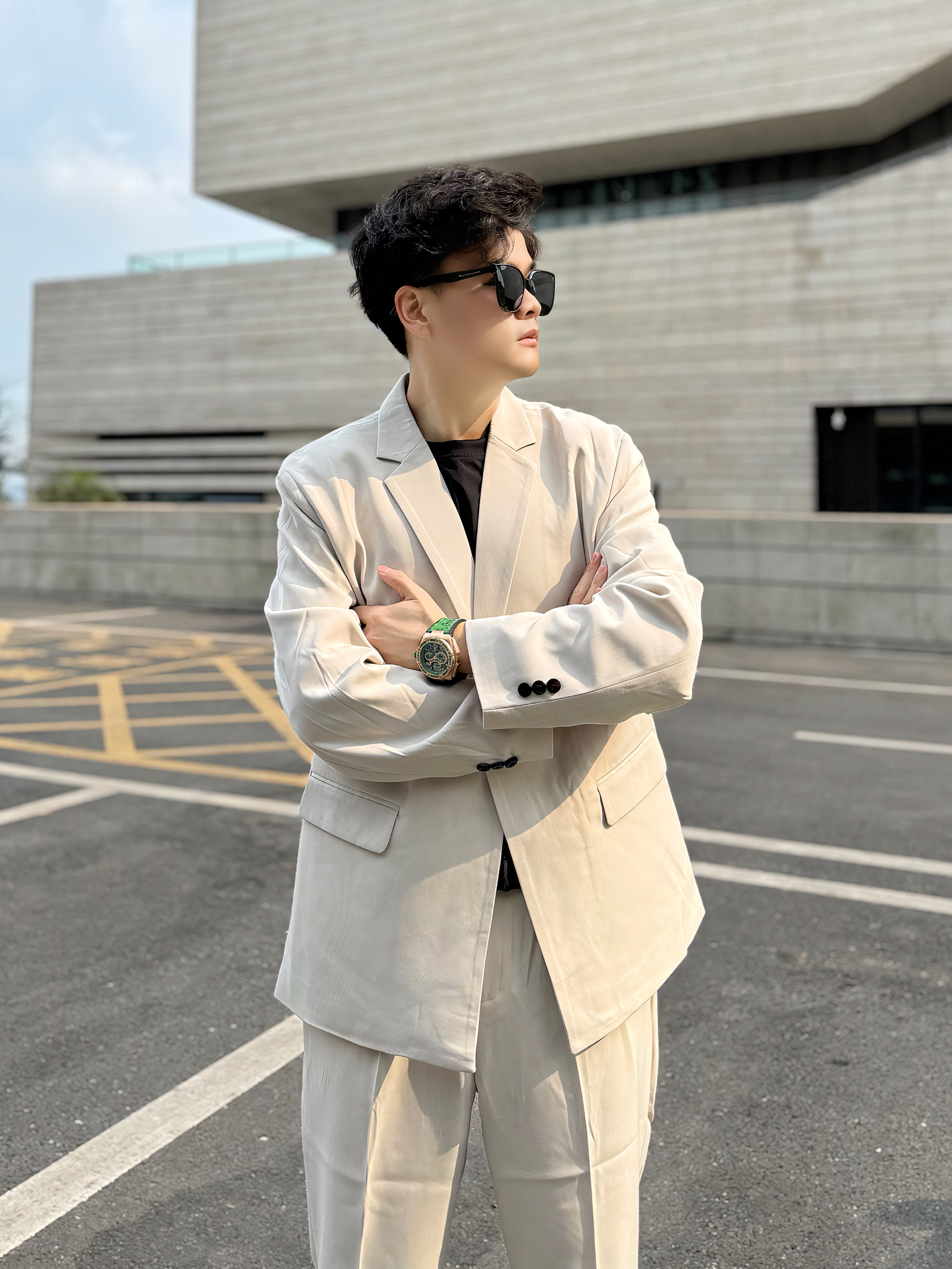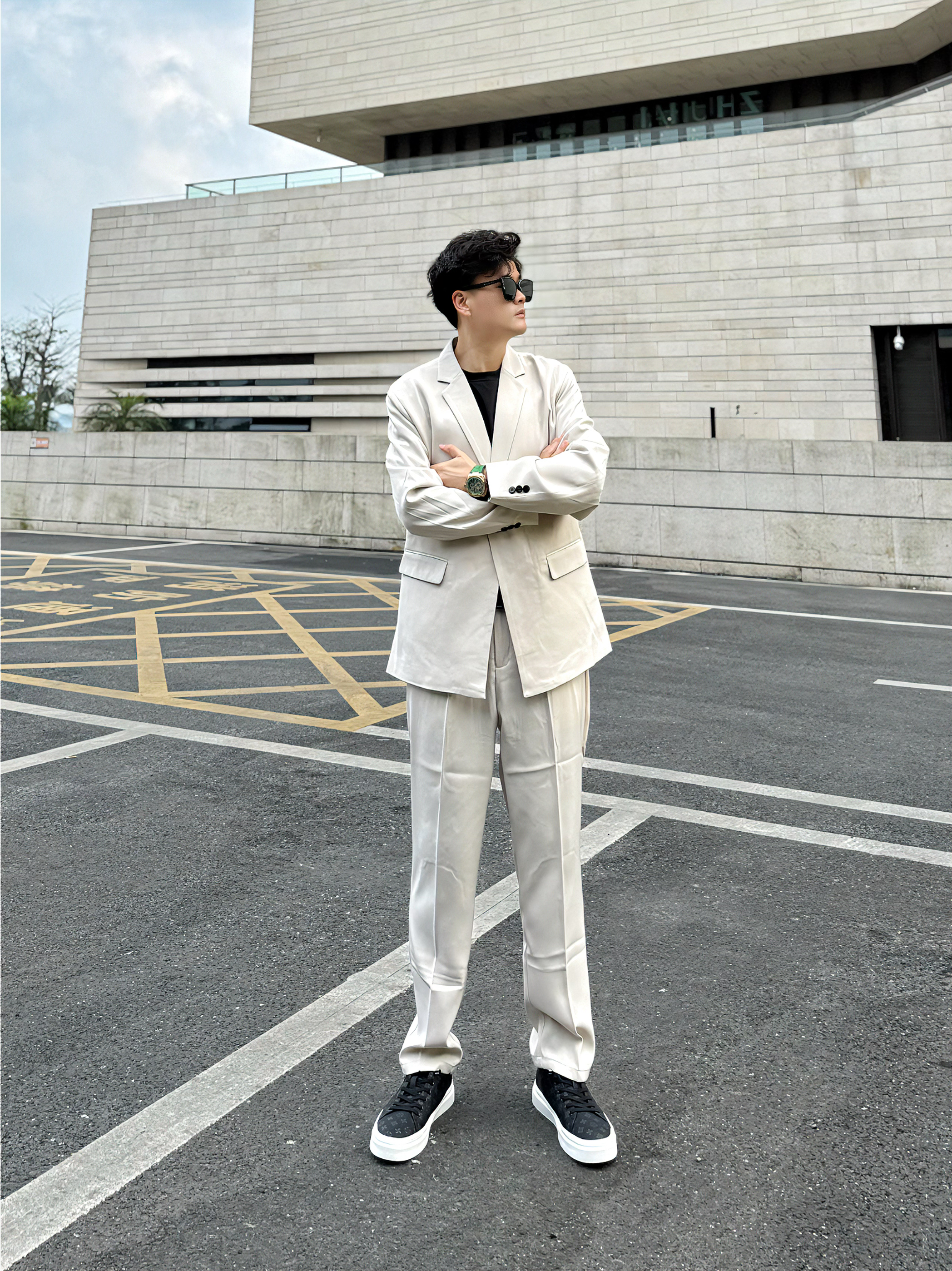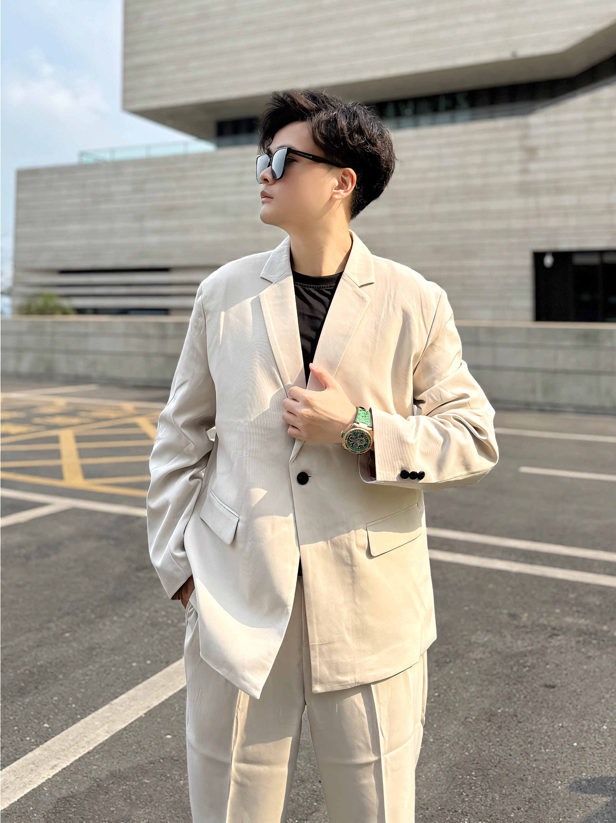哈喽哈喽呀,我是阿b仔 分享我近期很喜欢的打工穿搭ootd 👕上身先来一件黑色打底 🥼然后外穿一件米色西装外套 看着嘎嘎帅气,潮男feel轻松拿捏了 👖下身再来一条米白色西装长裤 跟外套素一套哒hh,该说不说这正装风我爱了 👟鞋子穿了一双黑白板鞋 米白黑+米白+白黑,整体穿搭颜色看着顺眼 ⌚️穿搭配饰戴了一块绿色机械表 外观颜值高,佩戴起来潮酷好看 戴着挺舒服,质感也还不错很nice - 尺码参考...