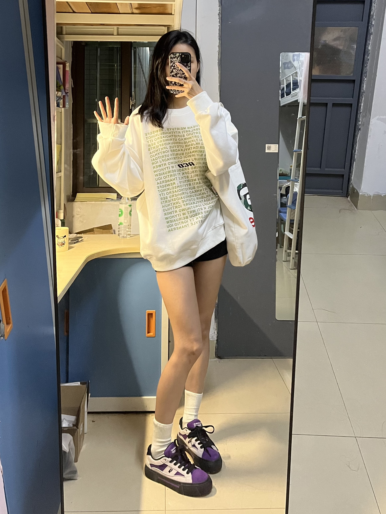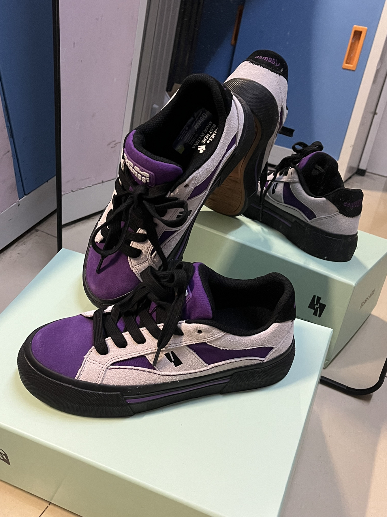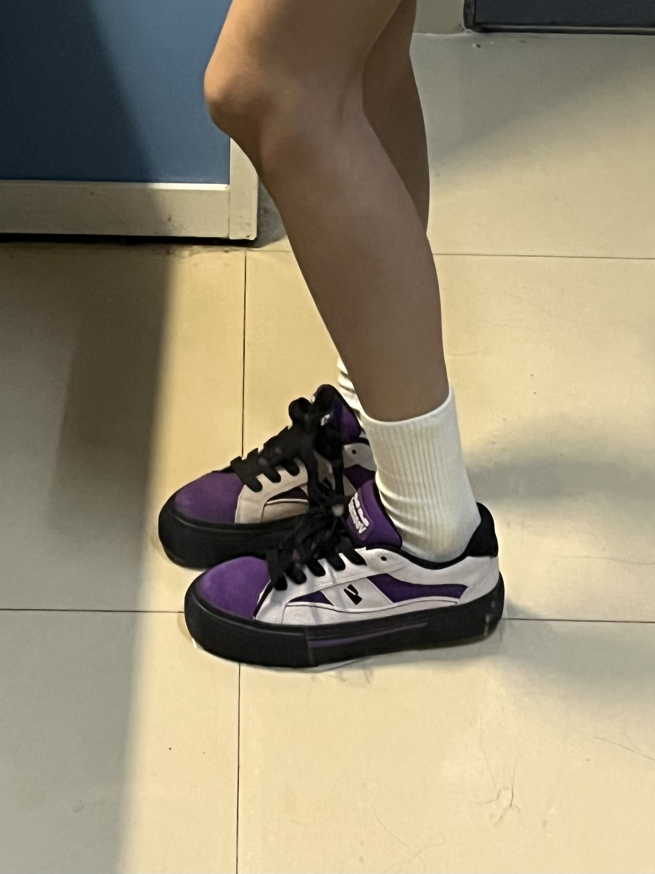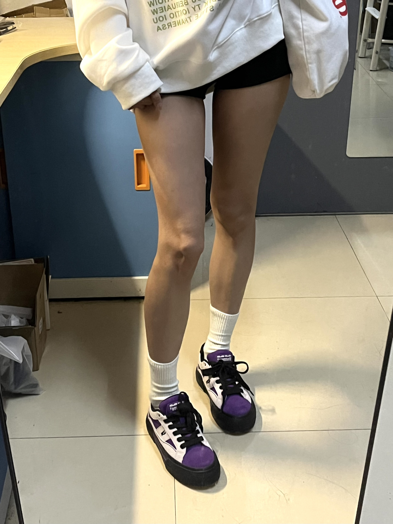 天天都在被板鞋支配的日常 因为太好搭配了 短裤长裤都没问题 这个颜色还有点特别 紫和黑的碰撞 🆒感马上有!鞋底也是足够软滴 完全不用担心🦶累的问题