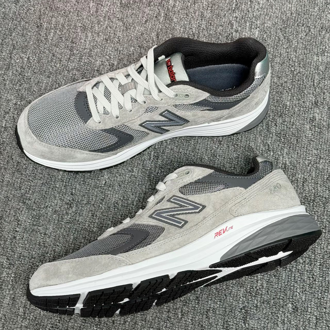 先说一下脚感,这鞋子穿起来很轻便,大底是那种韧弹的感觉,没有那么软,但是很舒服。 鞋面是网面的,透气性很不错,灰色也很耐脏,尤其是内衬设计成黑色,这点很喜欢。 缺点就是麂皮不好打理,网面不适合雨天穿。性价比挺高,而且非常百搭,穿起来很好看。