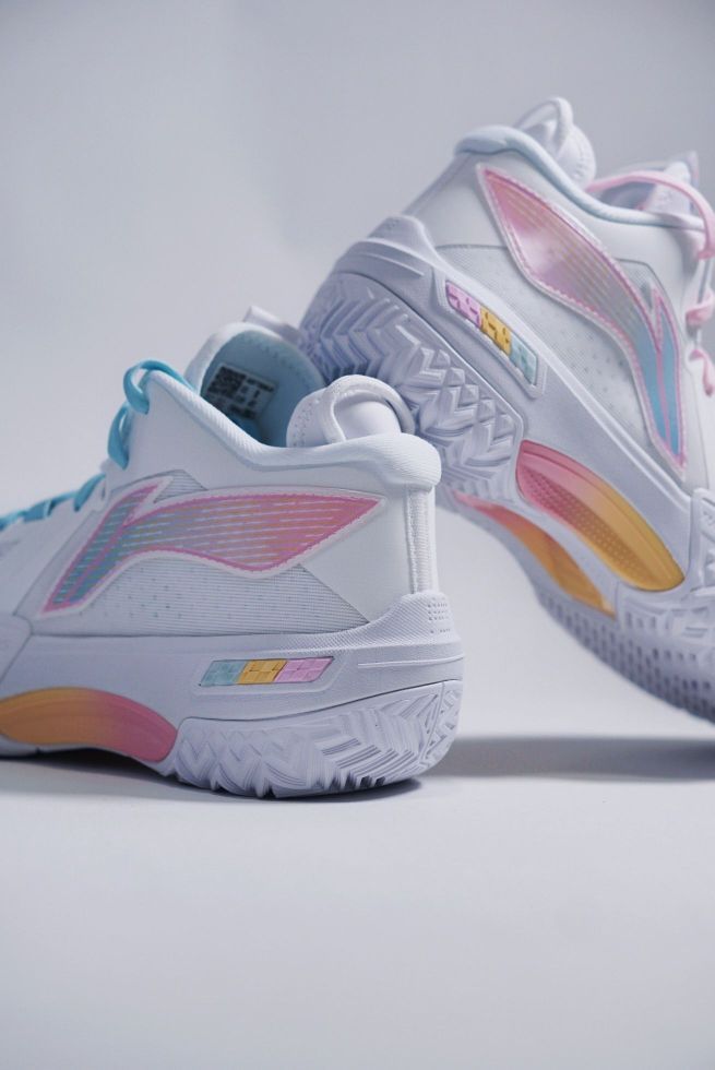 李宁全新的外场鞋桀骜来袭,从外形到名字都是粗犷风格,外场党们继反伍系列之后又有了新选择。 不过这双天使配色却与外形的风格截然相反,粉蓝鸳鸯的小设计点缀在纯白色的鞋身上,十分温柔。李宁logo则是渐变色的闪卡,仿佛天使降临,真的好看。
