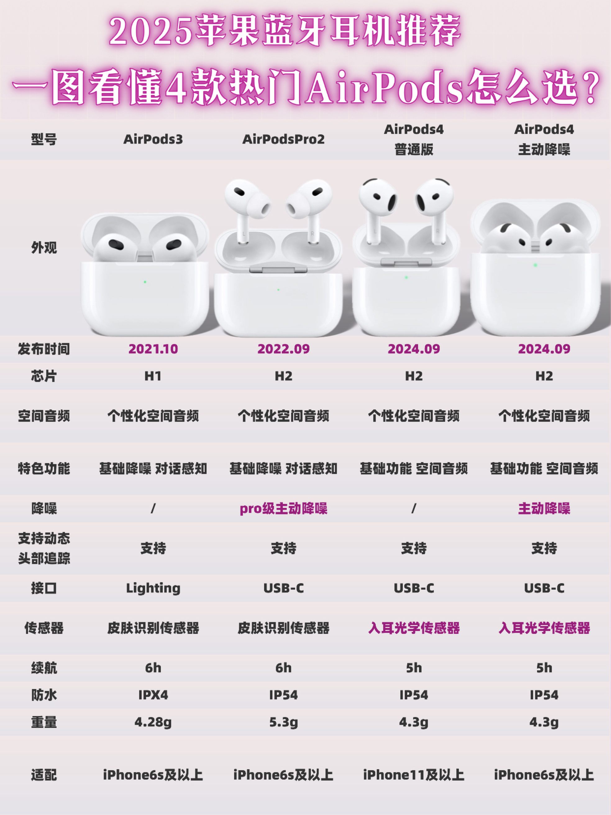AirPods由苹果公司推出,搭配其不错的生态、功能,有着出色的体验。今天给大家对比一下4款常见的AirPods耳机❗️ - ✅选购小知识: 1⃣️AirPods分为基础版本、Pro版本,其中Pro版本拥有降噪和丰富的功能 2⃣️AirPods基础款为半入耳式设计、AirPods Pro为入耳式设计 3⃣️目前AirPods 1代、AirPods Pro 1代已经停售 - ✅算法芯片 AirPod...