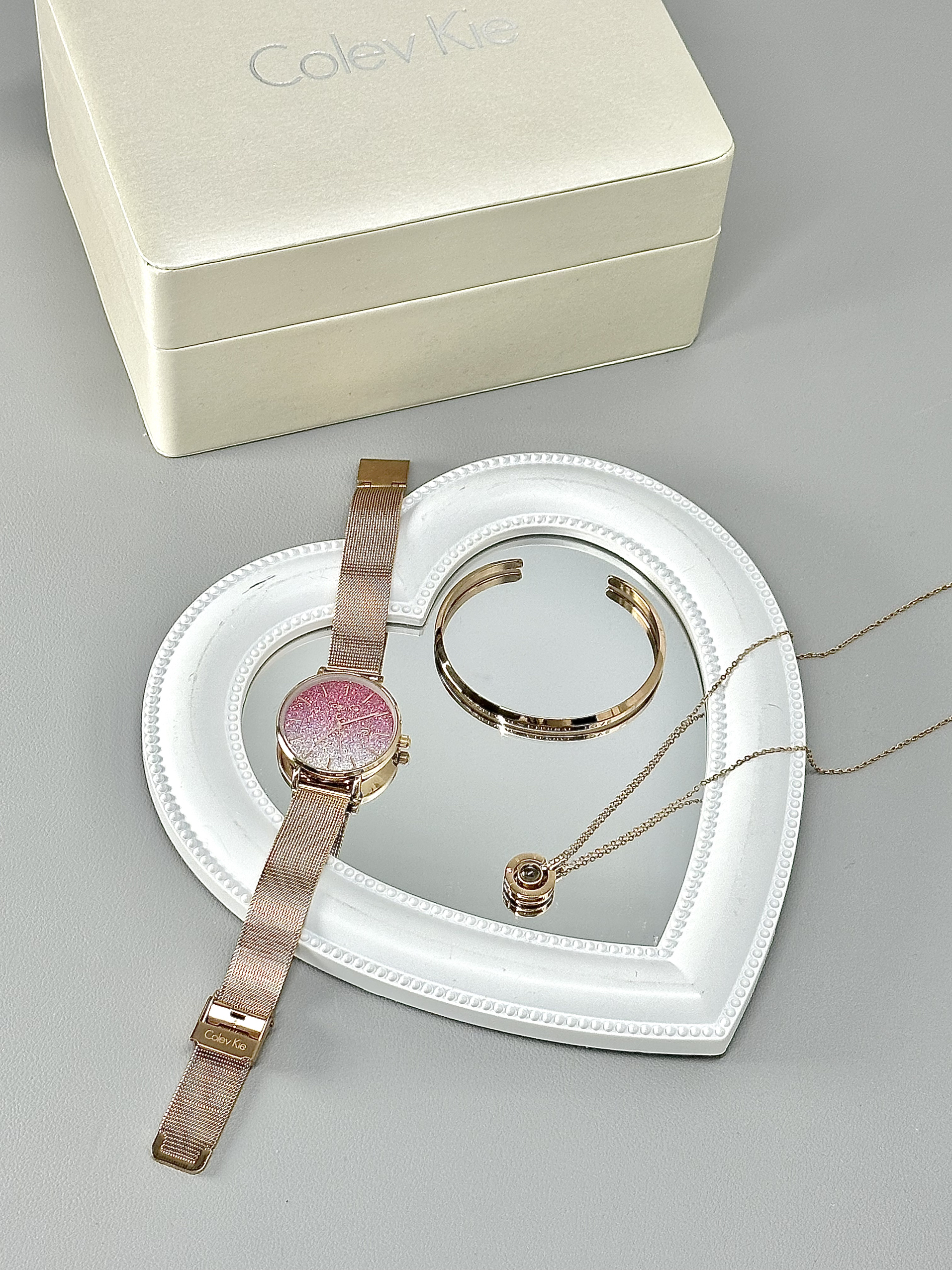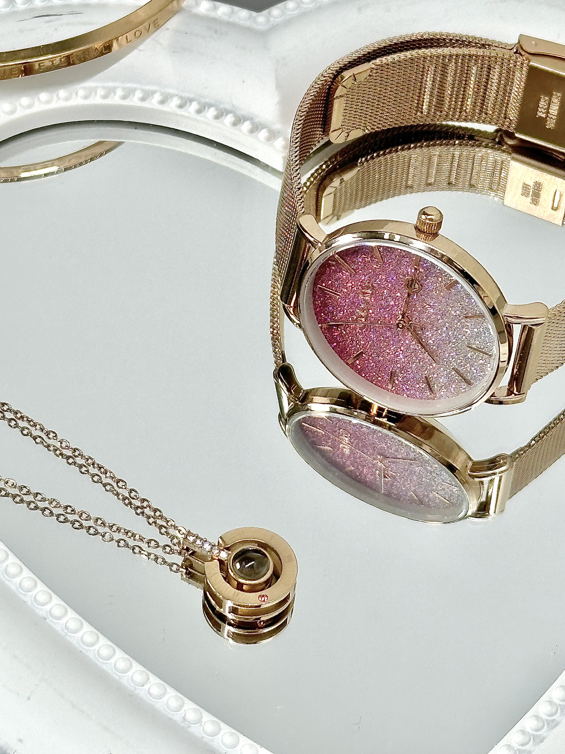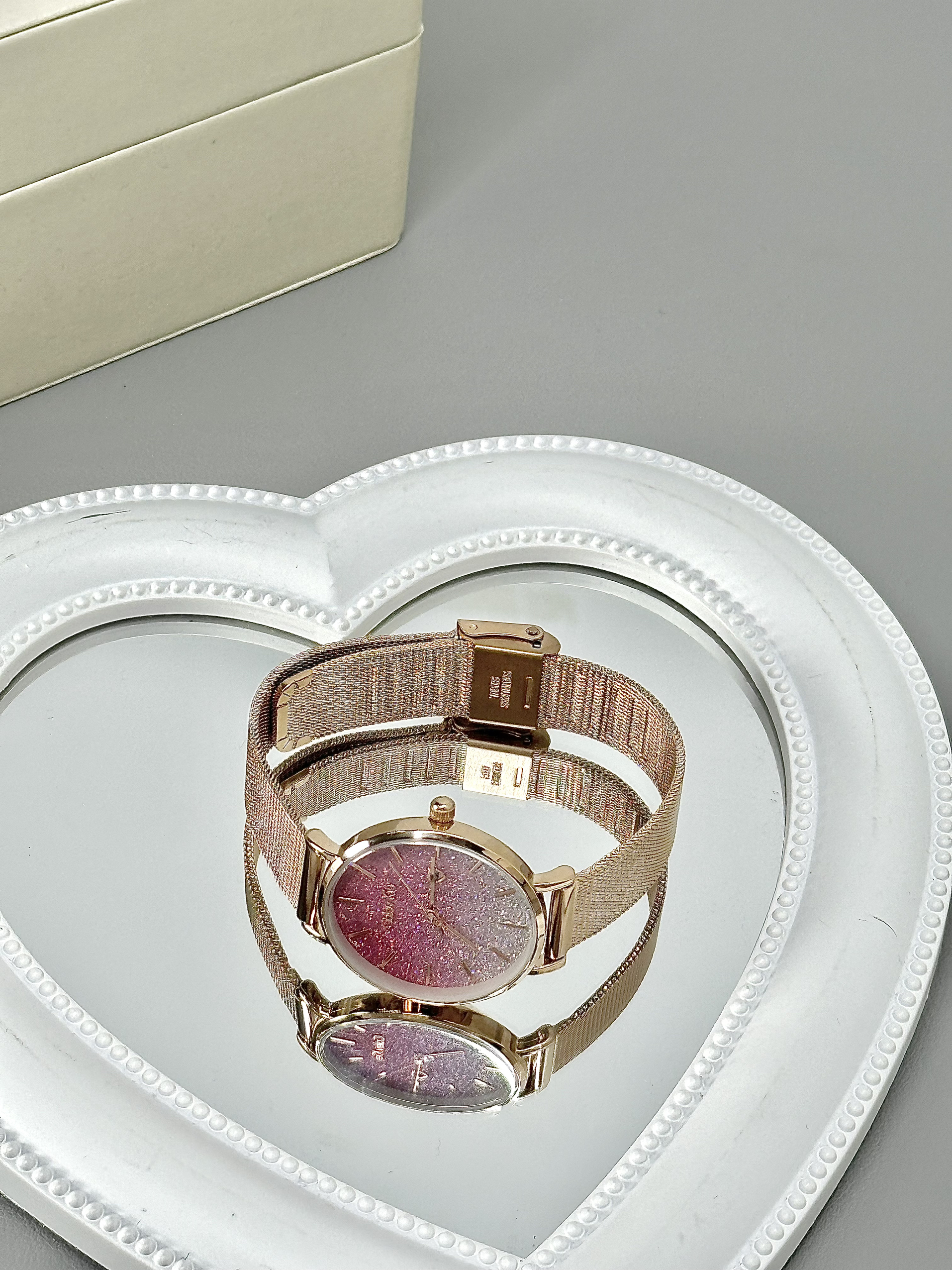 这款渐变粉满天星手表真的吼美 玫瑰金嘎嘎显高级又温柔 戴在手上还显手腕细 还送了手镯和项链 泰精致了😭