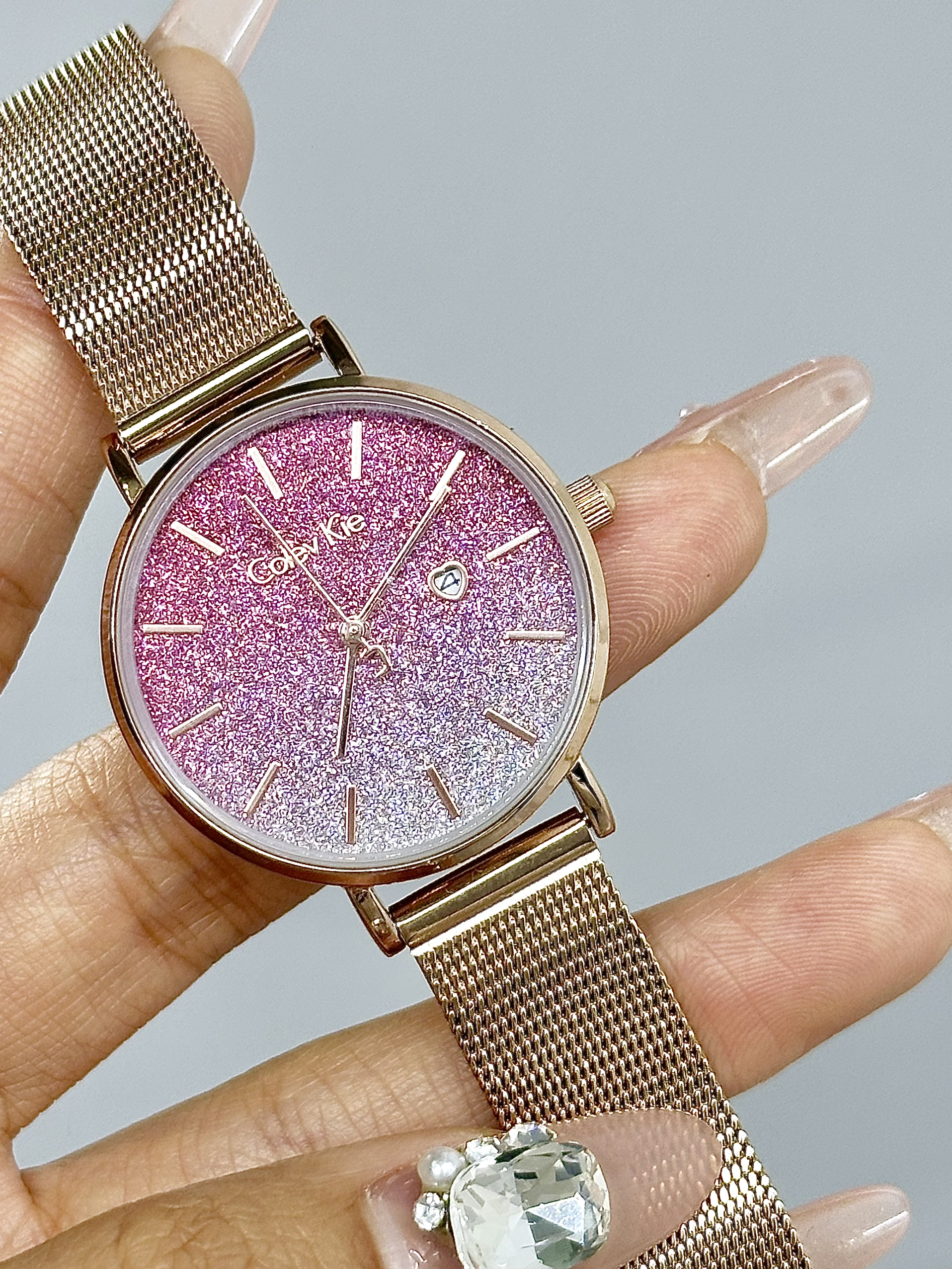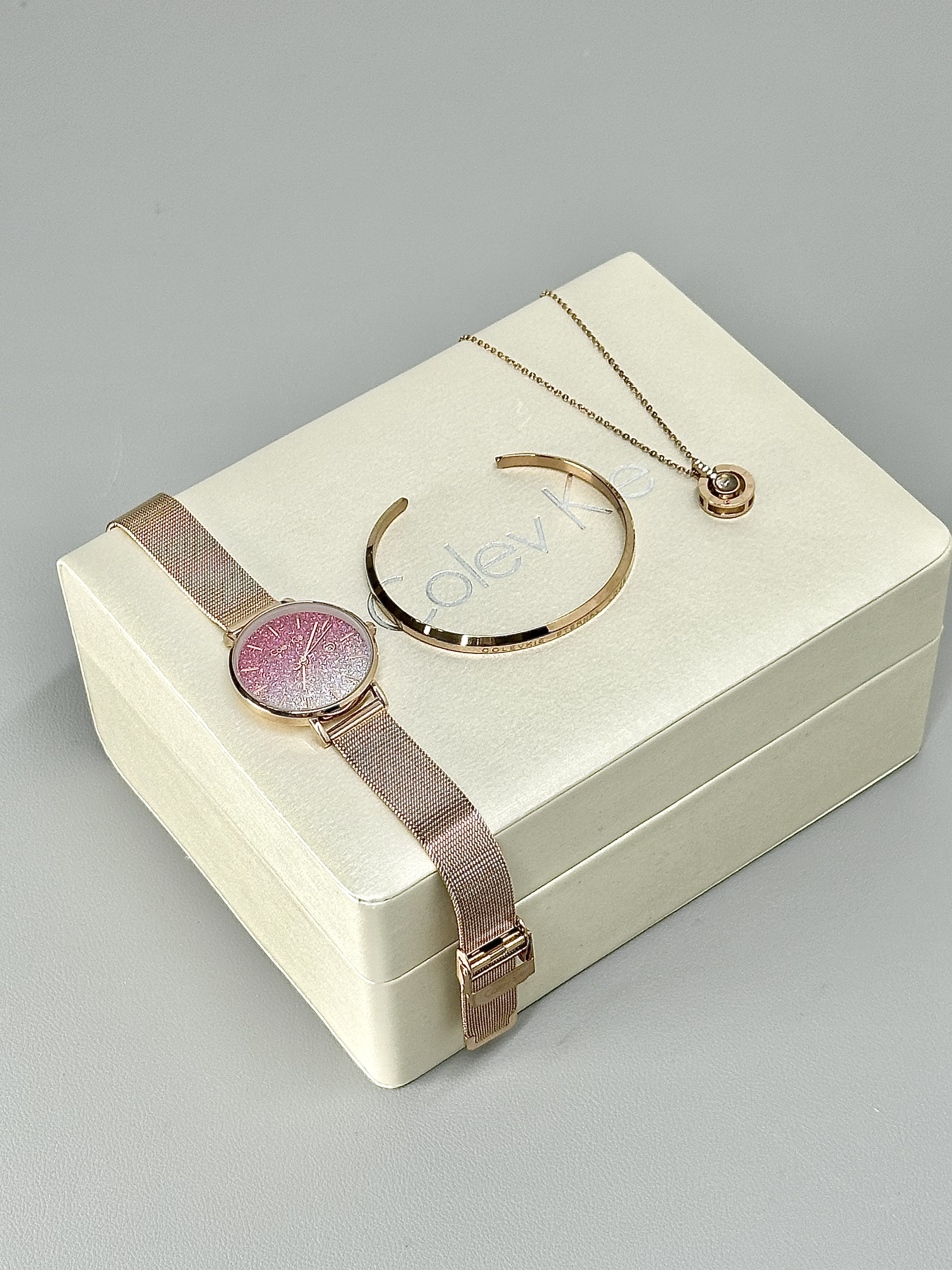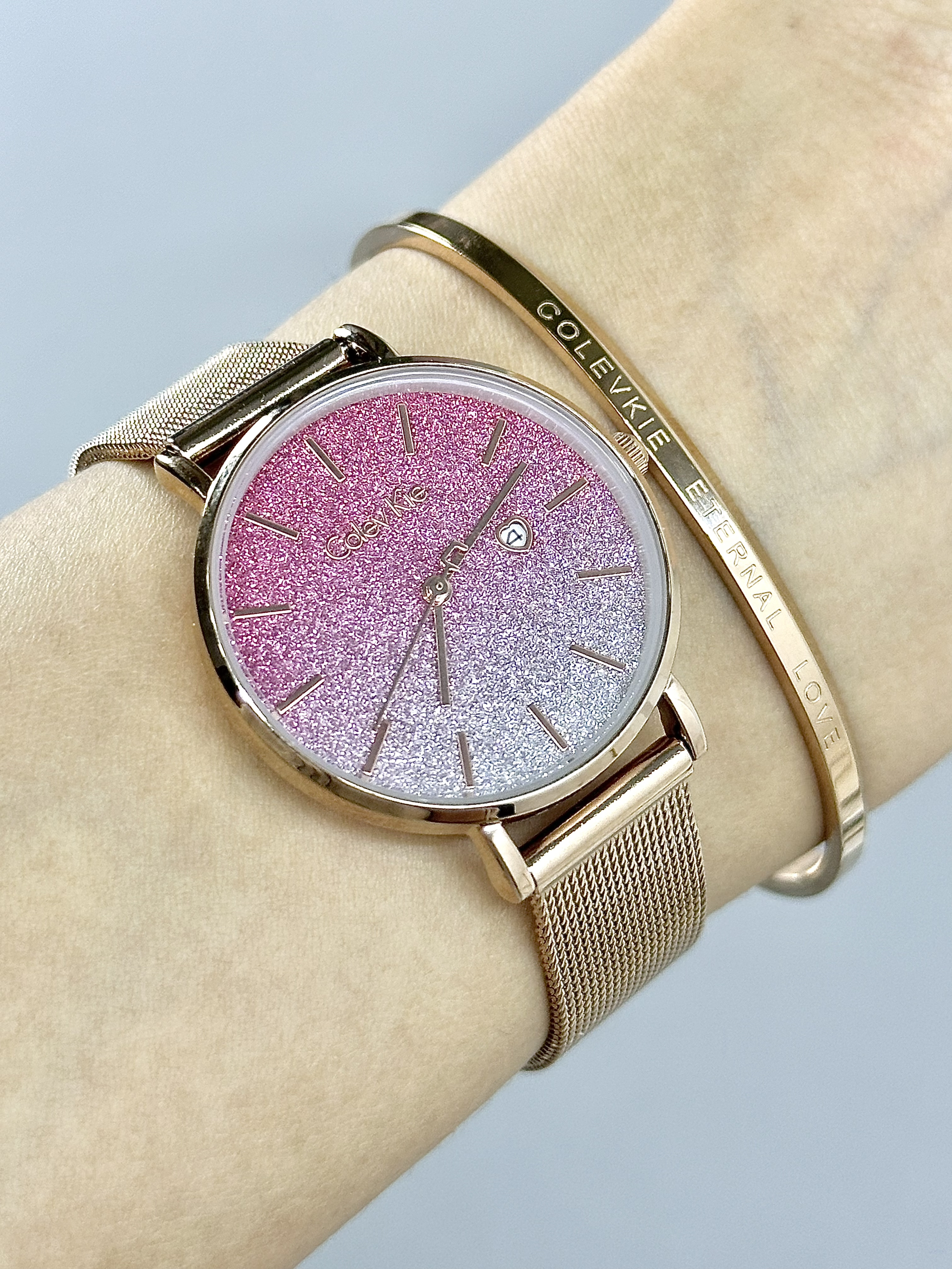 这款渐变粉满天星手表真的吼美 玫瑰金嘎嘎显高级又温柔 戴在手上还显手腕细 还送了手镯和项链 泰精致了😭