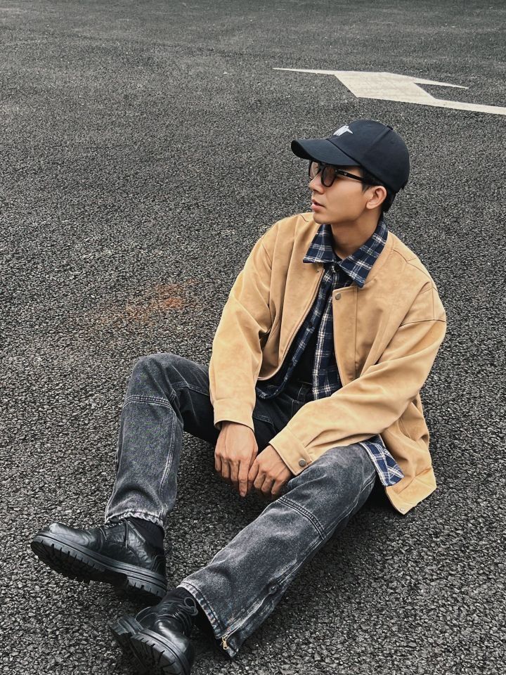 开春怎么穿才🆒呢? 男生当然是夹克穿搭啦‼️ 衬衫打底,叠穿效果增加层次感 棕色🏾复古夹克可有范啦 扎染拼接效果潮酷又有质感! 简单的打底配合牛仔裤工装裤都🉑️