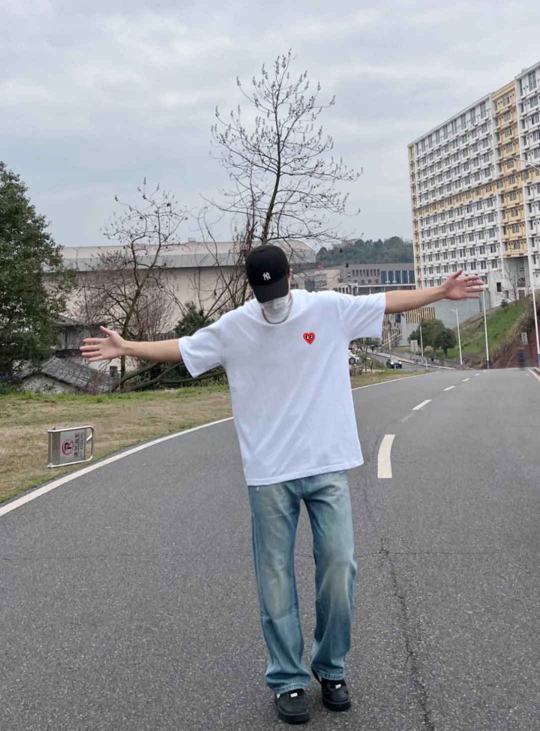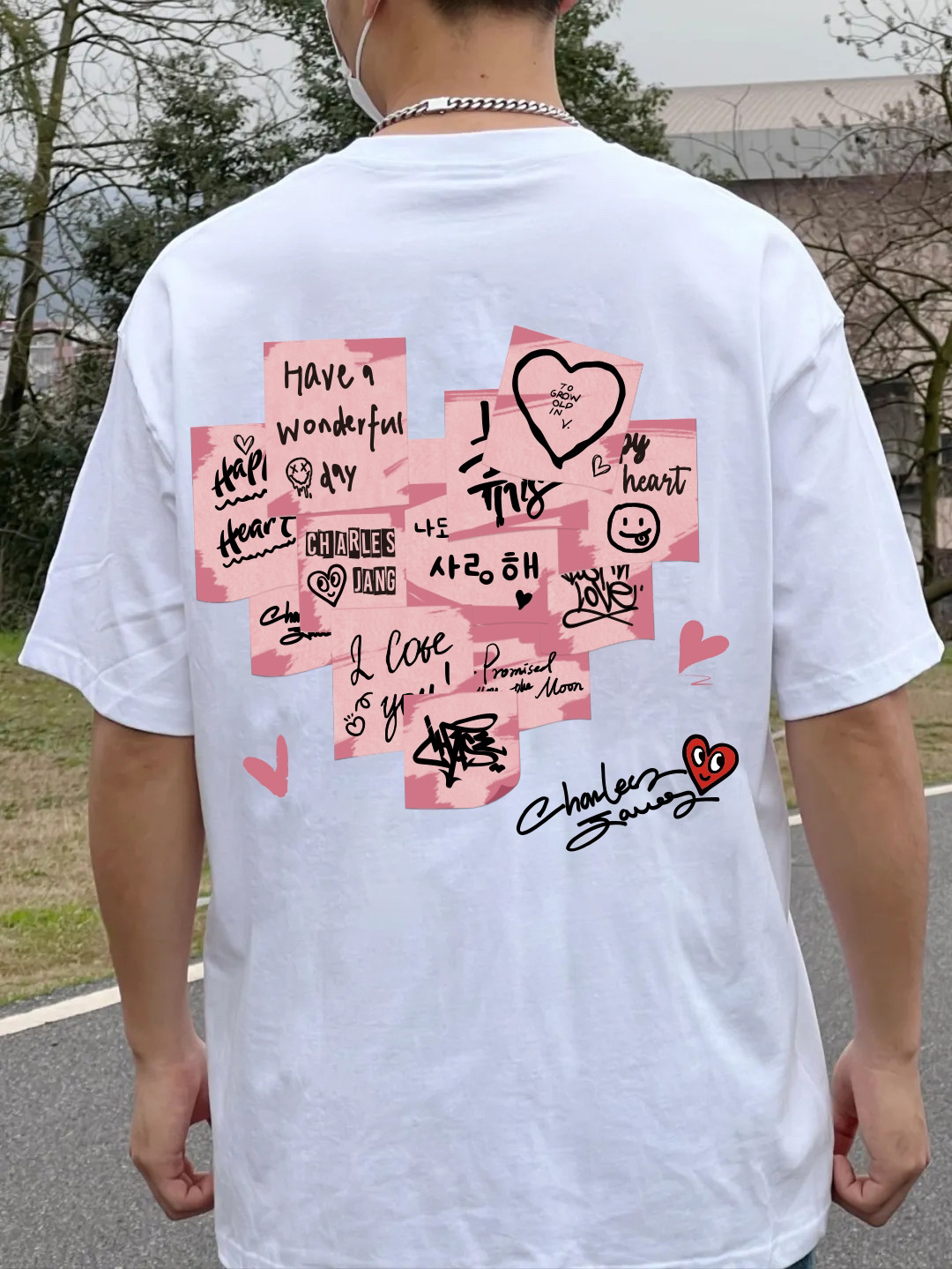 真的是谁穿谁好看的一件爱心印花短袖了,背后的印花做工精细又特别,款式百搭又简约,搭配牛仔裤,轻松就能get的街头感